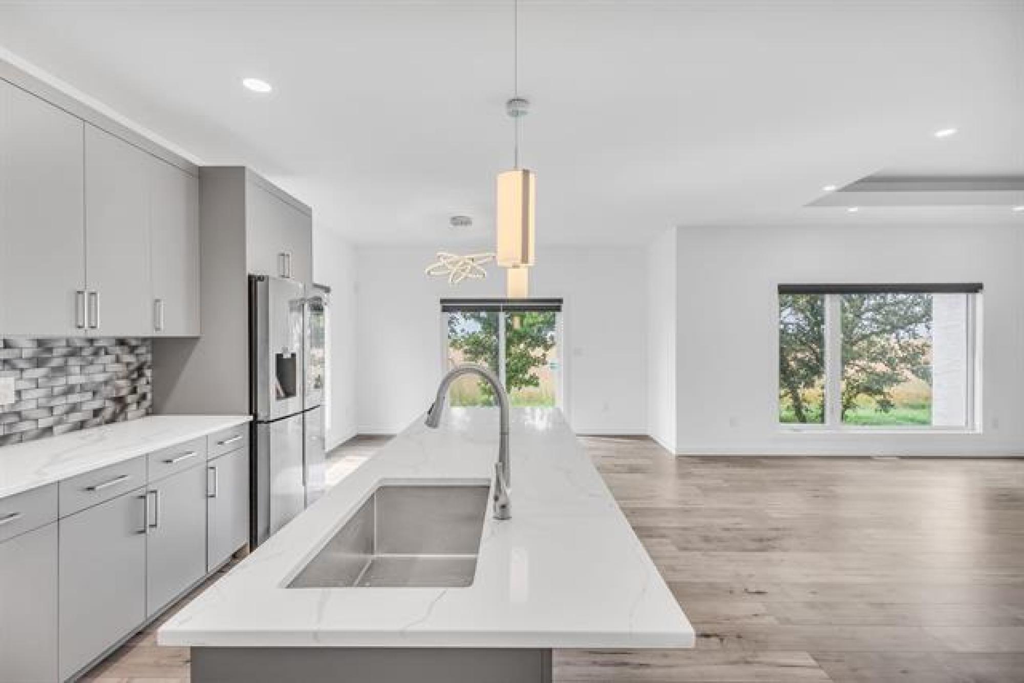 Discover unmatched value and serene country living with this stunning 1,904 sq ft custom bungalow, ideally located on a premium lot backing onto open fields in desirable Kingswood South, La Salle. A grand front entrance opens to a bright, open-concept great room with laminate flooring, large windows, and a formal dining area. The chef’s kitchen offers abundant cabinetry, gas Range, a massive island, quartz counters, stainless steel appliances, and a stylish backsplash. The adjoining family room is the heart of the home with vaulted ceilings, a built-in entertainment centre, electric fireplace, and sweeping green space views. The main floor hosts three bedrooms, including a spacious primary retreat with room for a king bed, deluxe ensuite, and walk-in closet. The insulated basement features big windows, steel beam construction, and awaits your development. Outside, enjoy a long driveway and oversized triple garage with 8’ doors. Loaded with custom features, this home offers space, style, and a setting that cannot be rebuilt for this price!