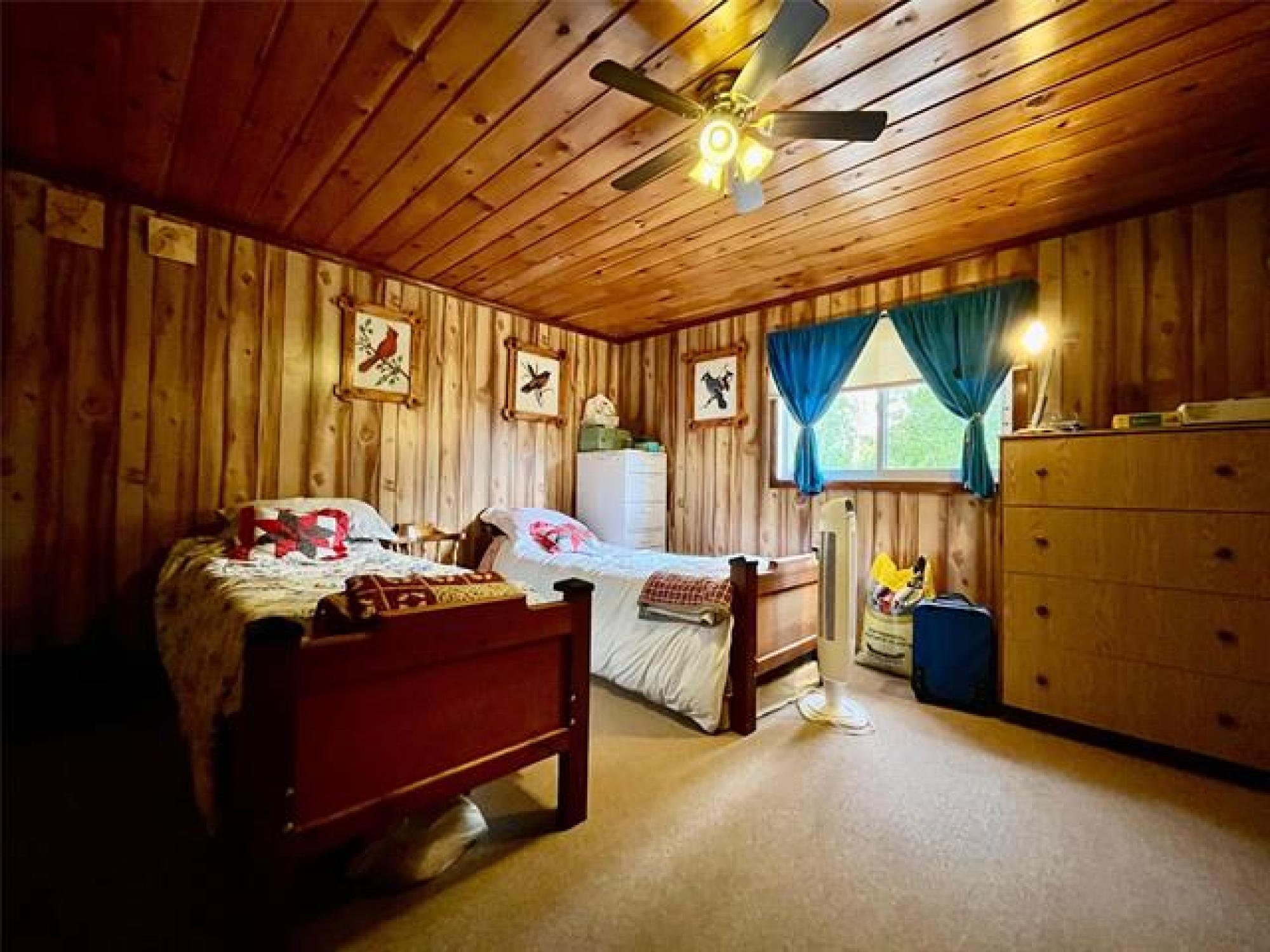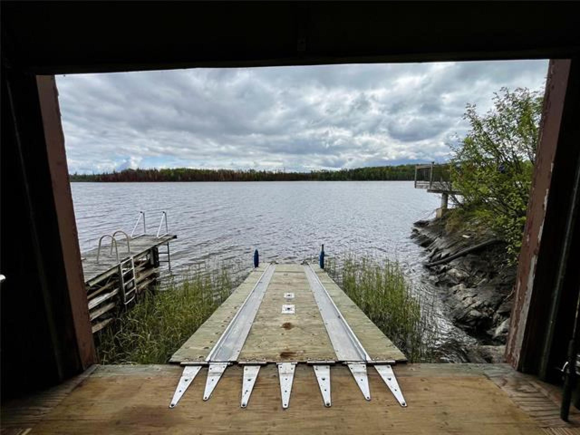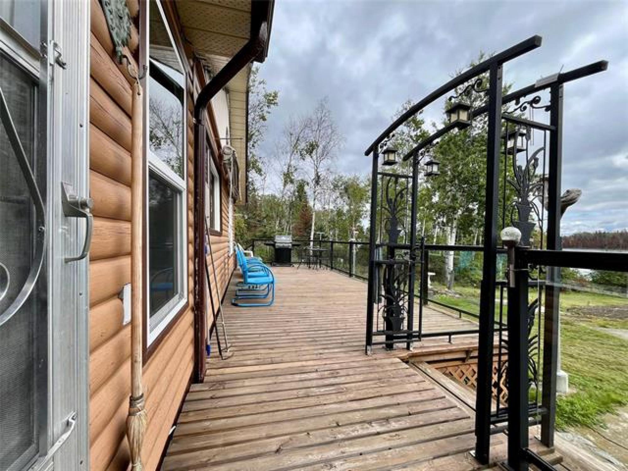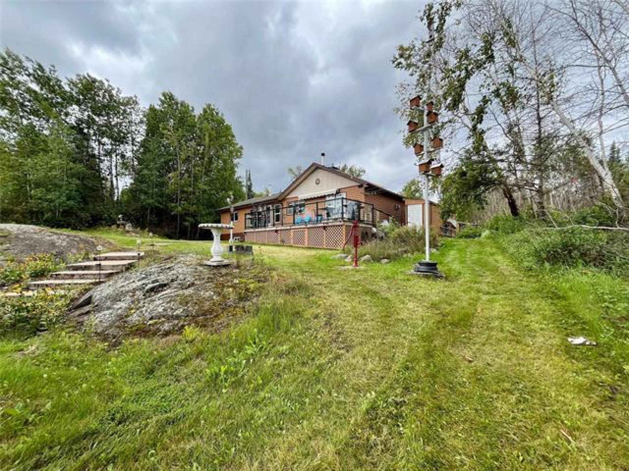 Original owners of 46 years (27 years permanent residence). Sellers have meticulously cared for & enjoyed this 4 season property. Offering approx. 1500’ of living space w/ 3 beds(4th bed is laundry/office). As you enter the private treed drive, you are welcomed by a circular driveway, a single detached insulated garage, outbuildings, & a woodshed. The west facing deck (20’x11’) opens into the main great rm w/ vaulted pine ceilings. Private entrance into an eat in kitchen w/ views of the water, open concept living rm, Office/laundry rm, 4pc bath & primary bed. The two other beds are off great room w/ a family door access between both rms. Propane corner stove, cooking woodstove, & propane, & electric appliances throughout. East facing deck(37’x12’) w/ views of the famous wildlife rock, 3 season gazebo, raised garden boxes, pump house, boat house w/ boat ramp & winch. Loft sleeping quarters, 27’ dock, Lakeside deck 32’x13’ complete the backyard. Property includes most items, solar panels & all year access. Private well('15), lake water is not potable. Two holding tanks (350 & 750 G). It is also close to a public boat launch, Beresford Campground, Long Lake, Bissett, & approx 1 hour from Lac Du Bonnet.