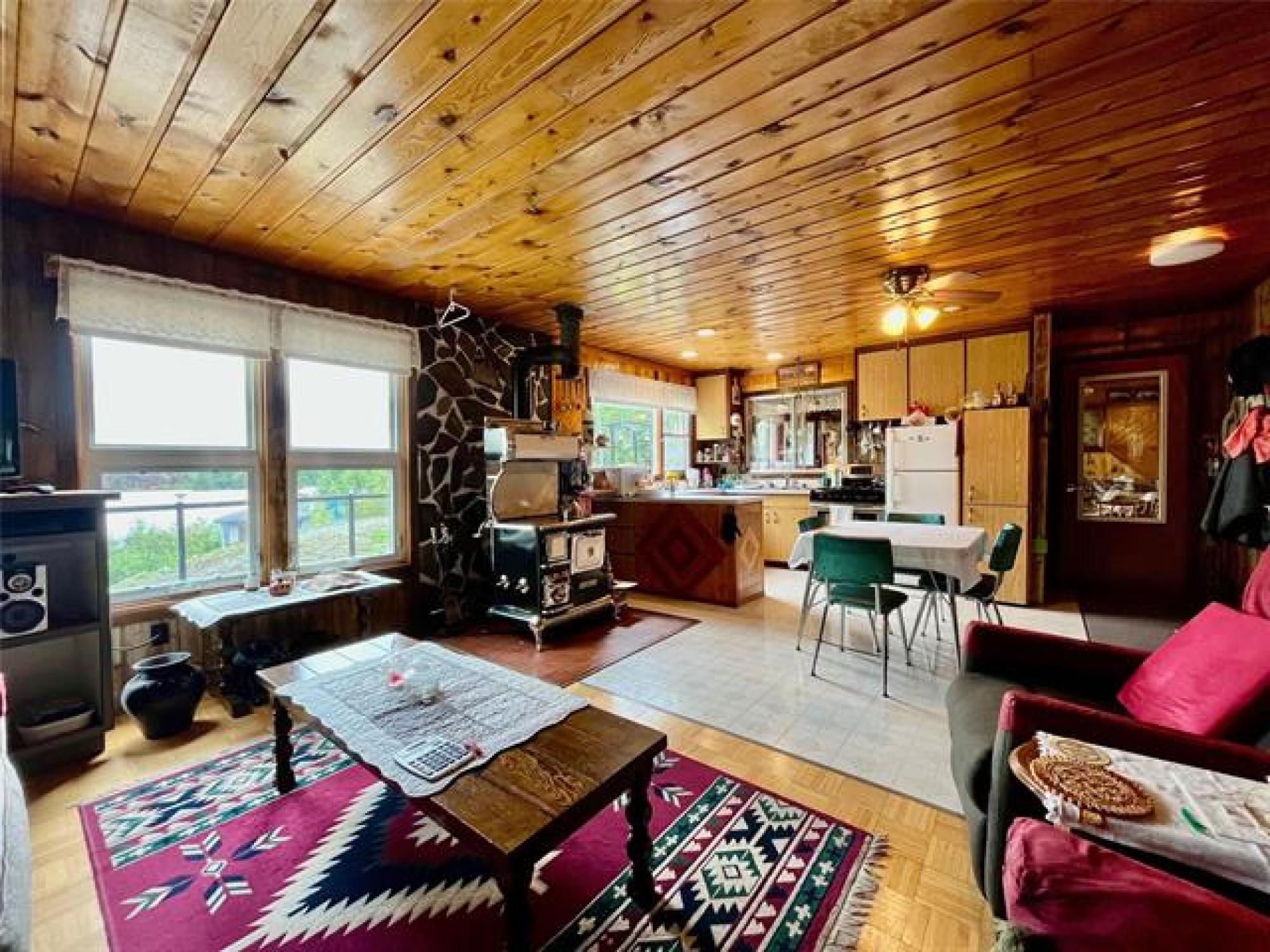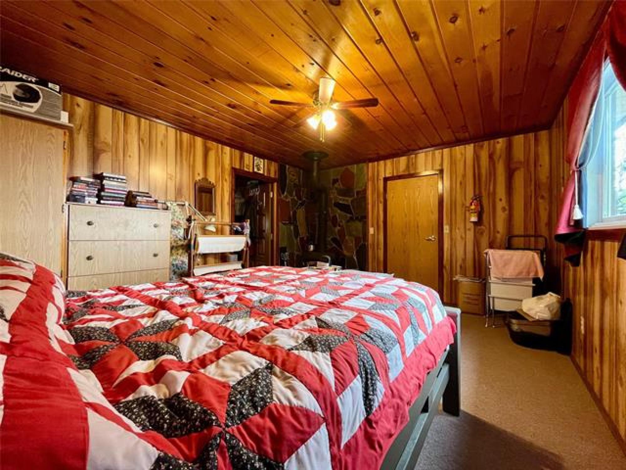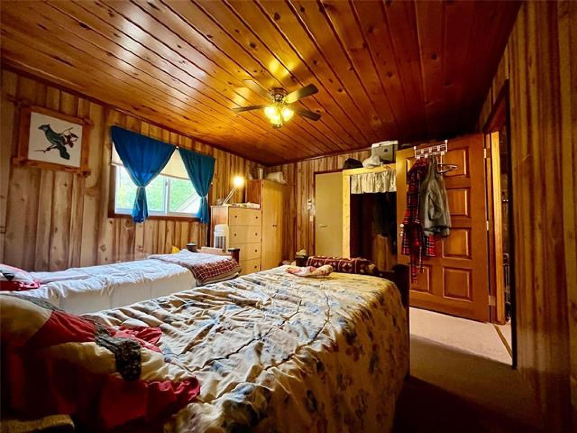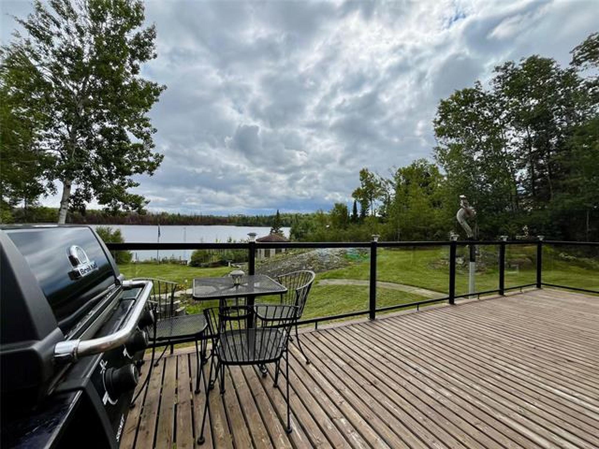 Original owners of 46 years (27 years permanent residence). Sellers have meticulously cared for & enjoyed this 4 season property. Offering approx. 1500’ of living space w/ 3 beds(4th bed is laundry/office). As you enter the private treed drive, you are welcomed by a circular driveway, a single detached insulated garage, outbuildings, & a woodshed. The west facing deck (20’x11’) opens into the main great rm w/ vaulted pine ceilings. Private entrance into an eat in kitchen w/ views of the water, open concept living rm, Office/laundry rm, 4pc bath & primary bed. The two other beds are off great room w/ a family door access between both rms. Propane corner stove, cooking woodstove, & propane, & electric appliances throughout. East facing deck(37’x12’) w/ views of the famous wildlife rock, 3 season gazebo, raised garden boxes, pump house, boat house w/ boat ramp & winch. Loft sleeping quarters, 27’ dock, Lakeside deck 32’x13’ complete the backyard. Property includes most items, solar panels & all year access. Private well('15), lake water is not potable. Two holding tanks (350 & 750 G). It is also close to a public boat launch, Beresford Campground, Long Lake, Bissett, & approx 1 hour from Lac Du Bonnet.