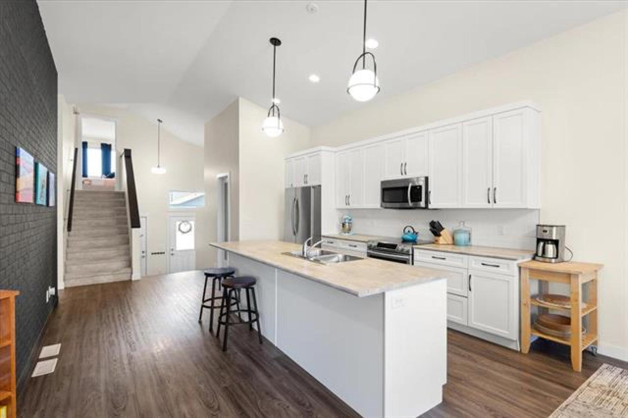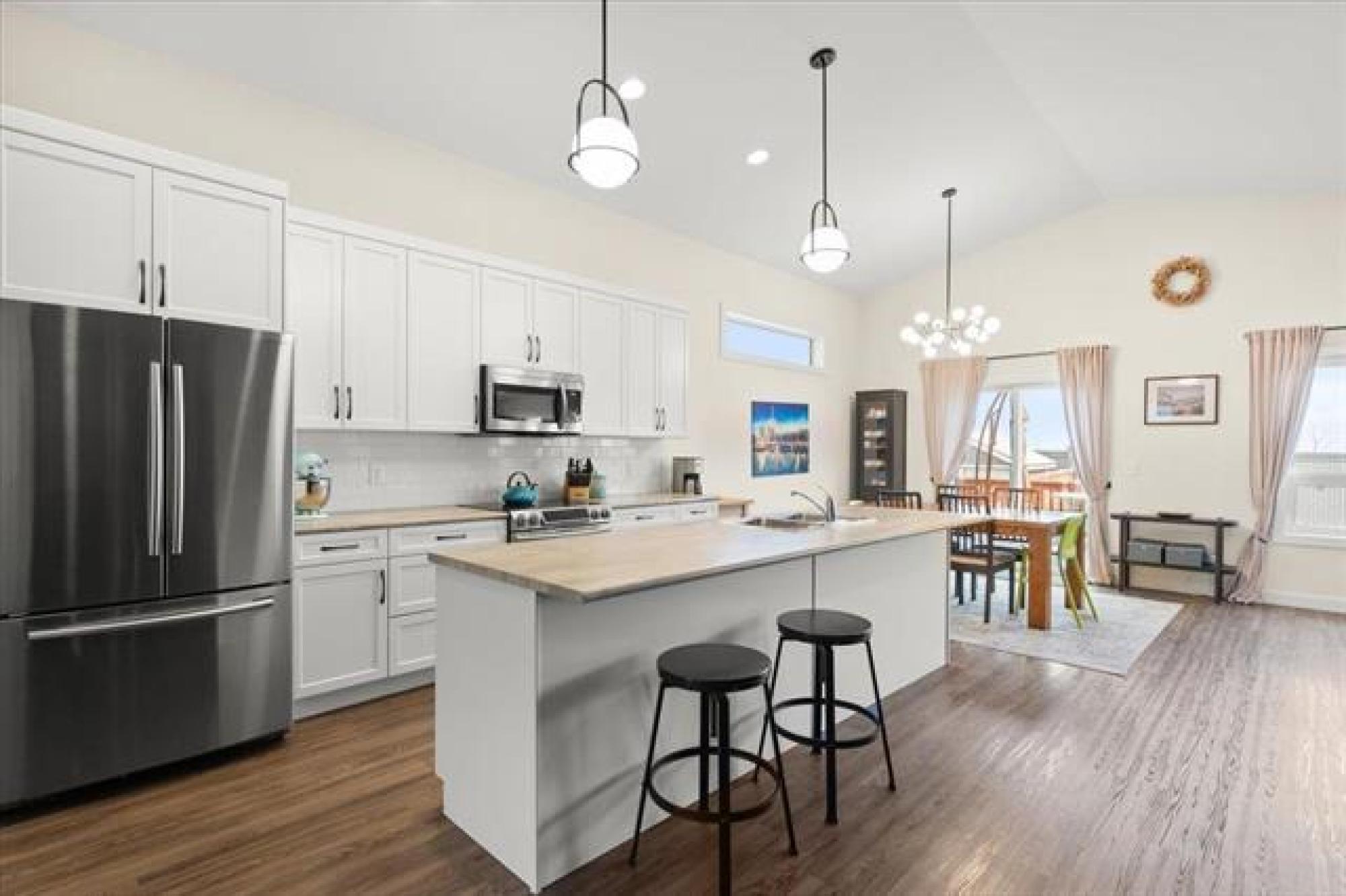Showings start Thurs Nov 13th, Open House Sunday, Nov 16th 1-3pm, Offers Tuesday, Nov 18th evening. Welcome to this bright, modern family home in one of Winnipeg’s newest and most sought-after neighbourhoods, Ridgewood West! This home features over 1600 sqft, 3 bedrooms, 2 bathrooms and a fantastic open plan layout w/ vaulted ceilings and lots of natural light. The kitchen is perfect for cooking and entertaining, with a big island and breakfast bar, tile backsplash, stainless appliances and a walk-in pantry. The living and dining areas are open and inviting, with large windows looking out onto the west facing backyard and perfect sunsets. Primary bedroom has a walk-in closet and a 3-piece ensuite, and the lower level is insulated & ready for your future plans with oversized windows & tons of storage. You’ll love the spacious living areas with vinyl plank floors, and updated lighting that give the home a warm, modern feel. Outside is a fully fenced & landscaped yard with 12x12 deck great for family BBQs and summer get-togethers. Just steps from Harte Trail with paths to walk, run, or bike, plus easy access to the Perimeter and shopping. A wonderful home in a fantastic community — come see it today!