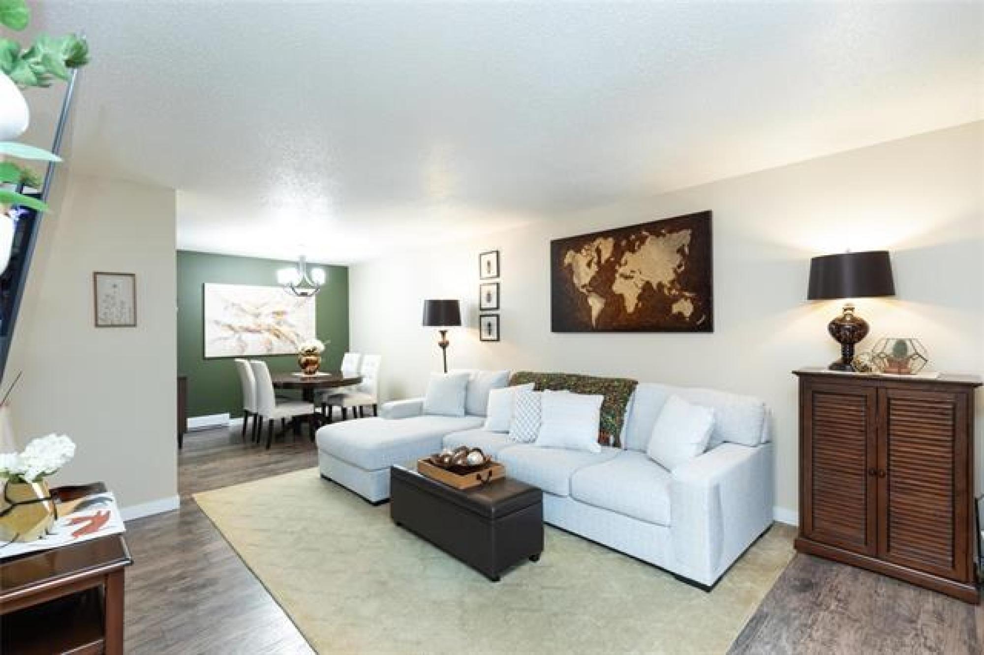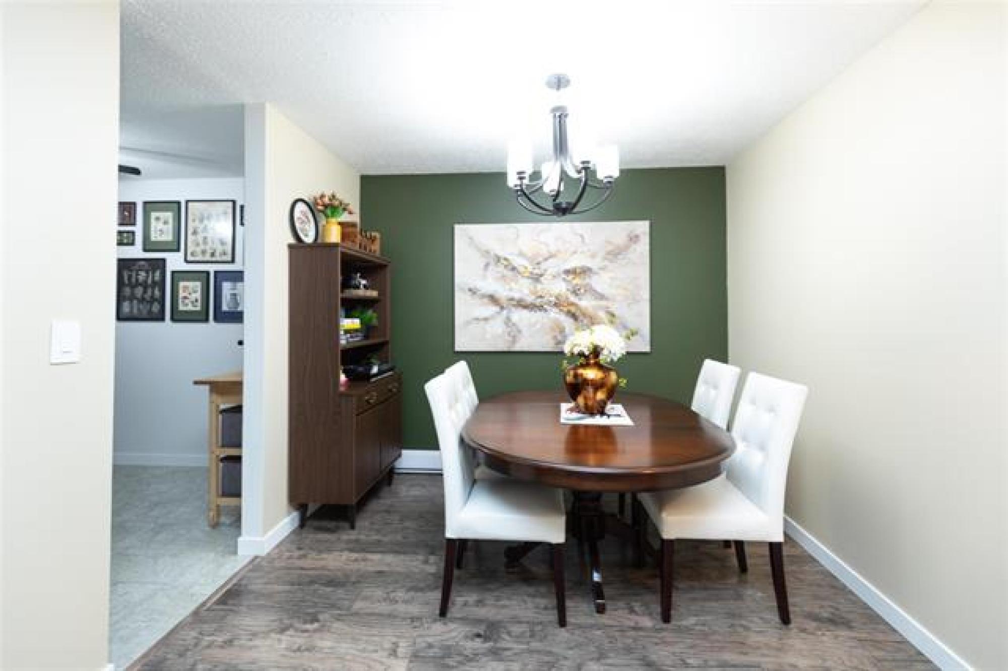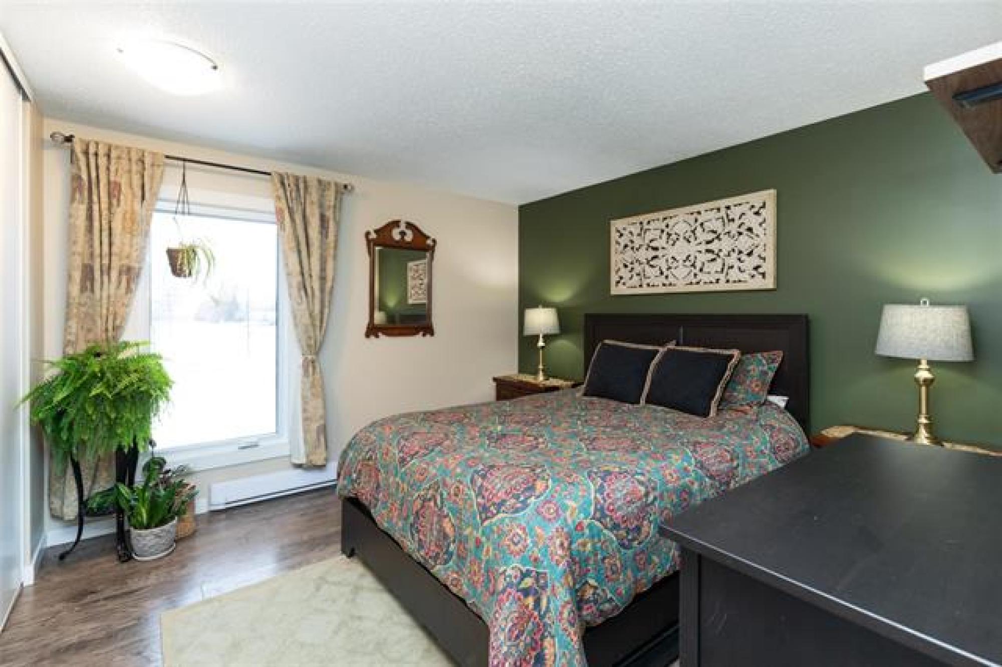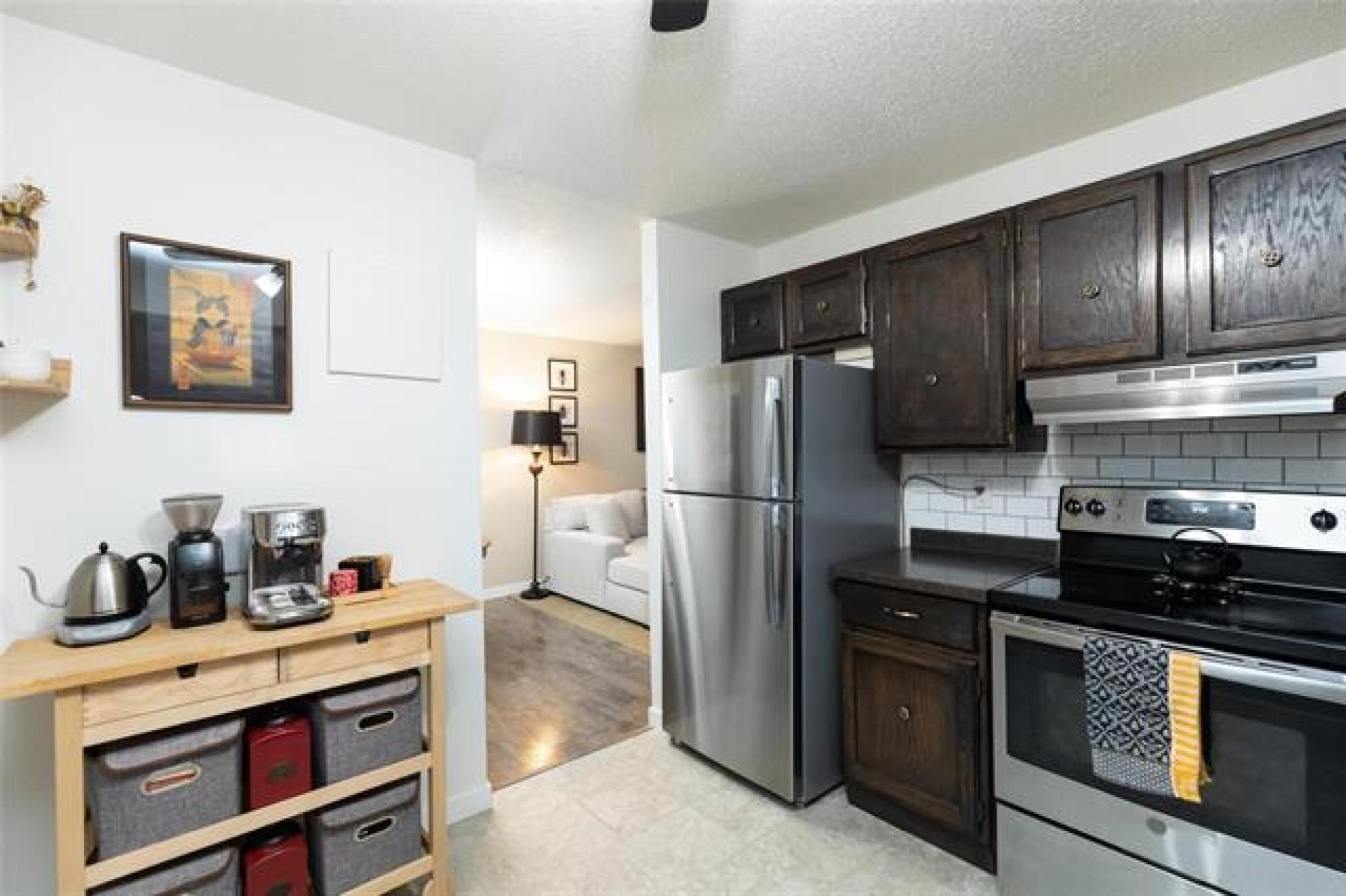 SS 10 Dec 25. Offers 16 Dec 25 after 6:00 pm. Open House Sat 13 Dec and Sun 14 Dec from 1:00-3:00 This spacious, beautifully decorated and maintained 3 bedroom, 1 bathroom condo is in the Heritage Gardens complex. The condo has new windows and paint throughout, newer laminate floors, refreshed kitchen cabinets, new bathroom cabinetry, and an in-suite laundry. It features 3 good sized bedrooms, an eat-in kitchen with stainless steel appliances, plus a formal dining area, and a large living room that has a functioning (and inspected) wood-burning fireplace. There is loads of storage space in the condo's walk-in pantry/storage closet and in the storage locker located just outside the front door. Condo fees include Cable TV, Contribution to Reserve Fund, Insurance-Common Area, Internet, Landscaping/Snow Removal, Management, Parking, and Water. An in-ground outdoor pool completes the package. This pet friendly (cat, bird, fish - sorry no dogs) condo is a must see; close to schools, shopping, parks, trails, outdoor skating rinks and a curling club. Do not miss this great opportunity to own your own place.