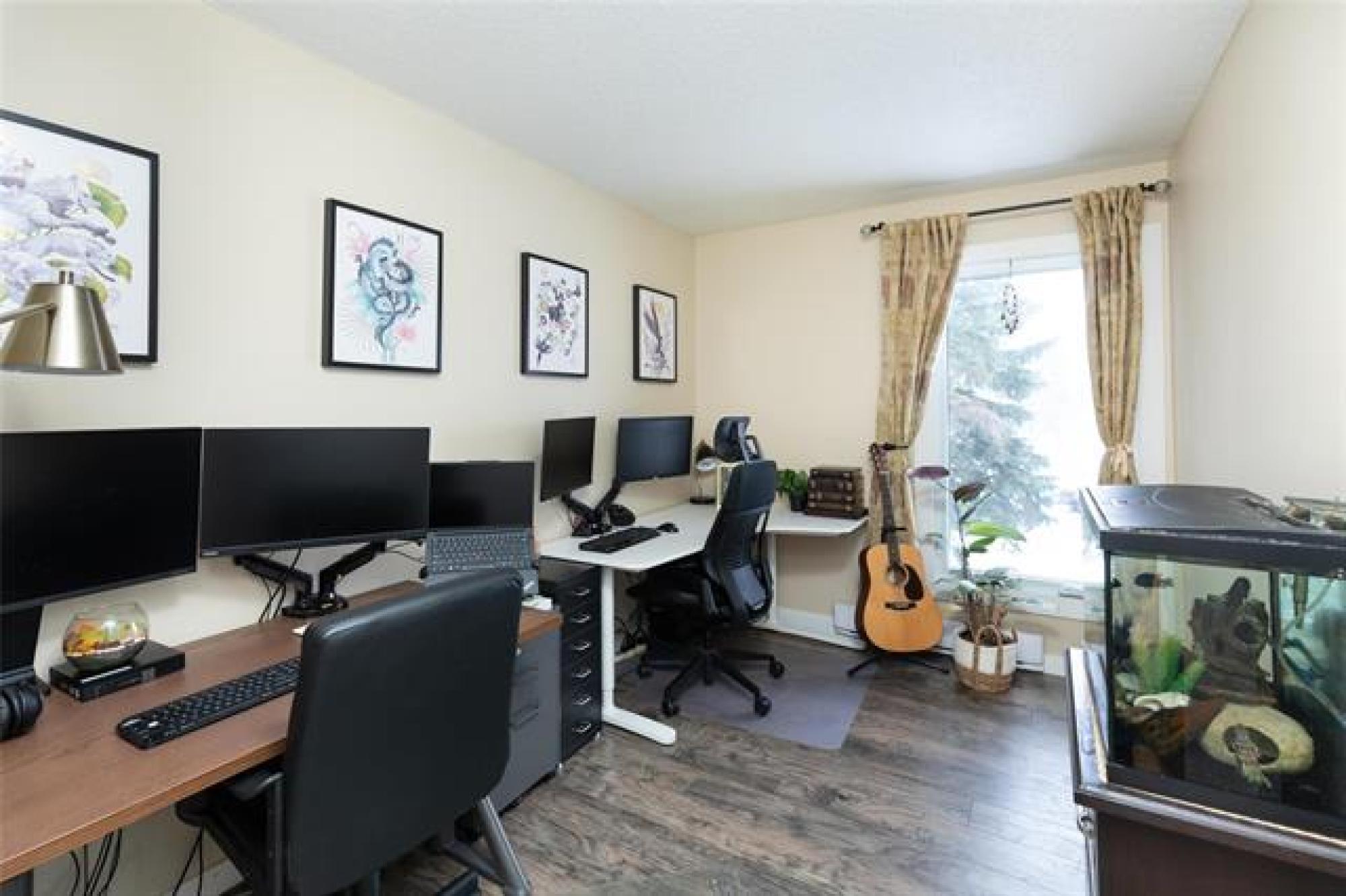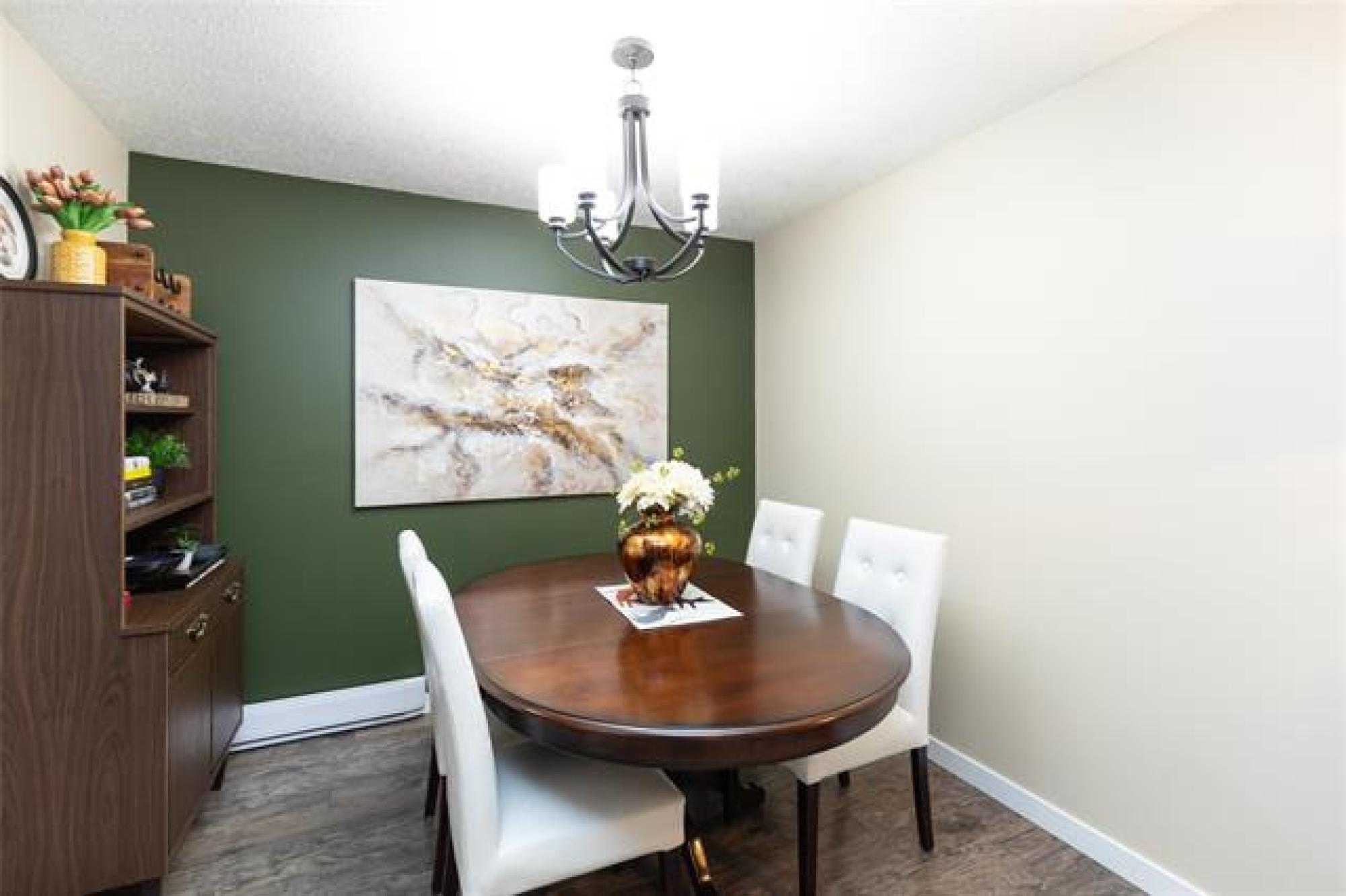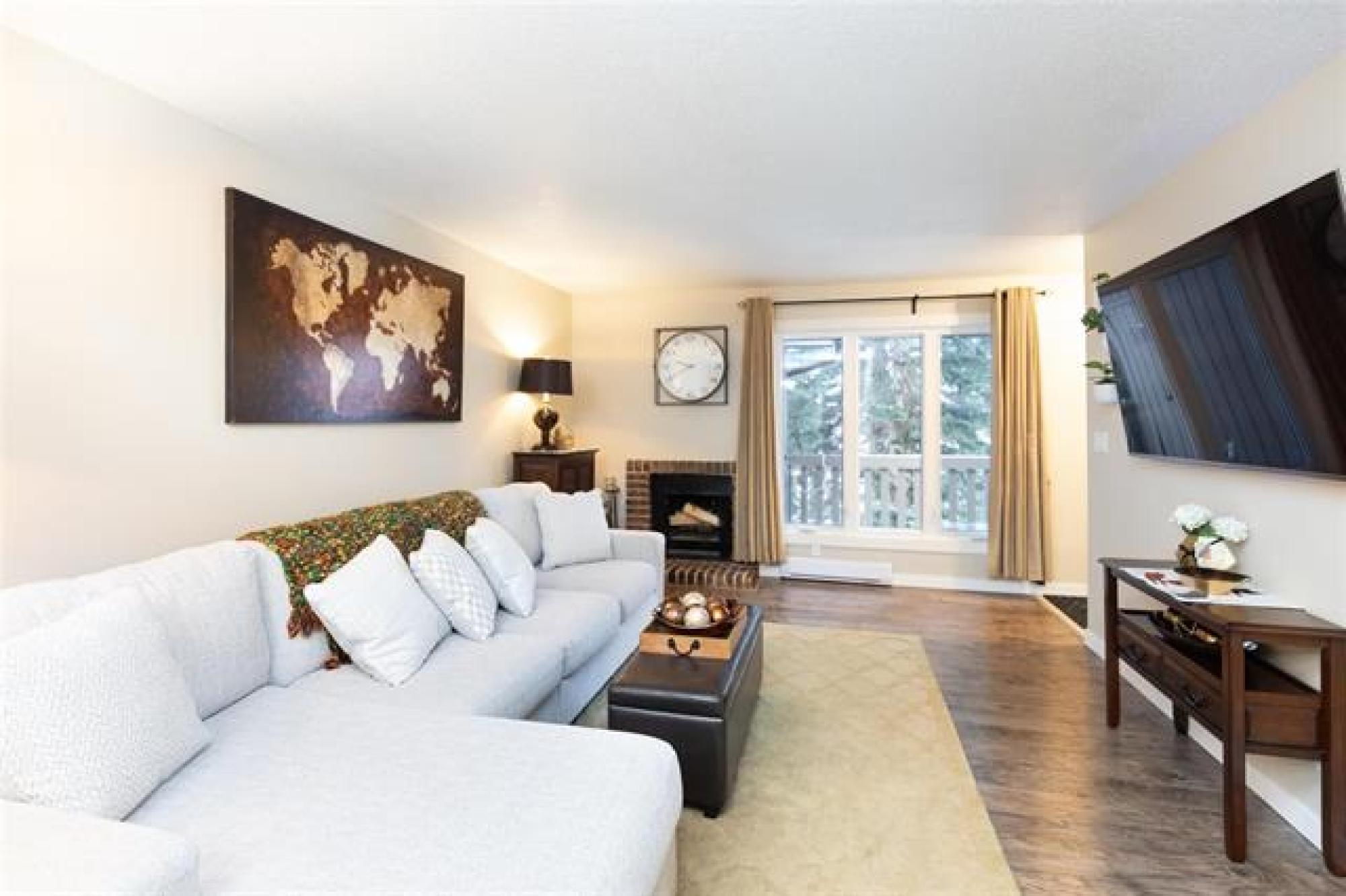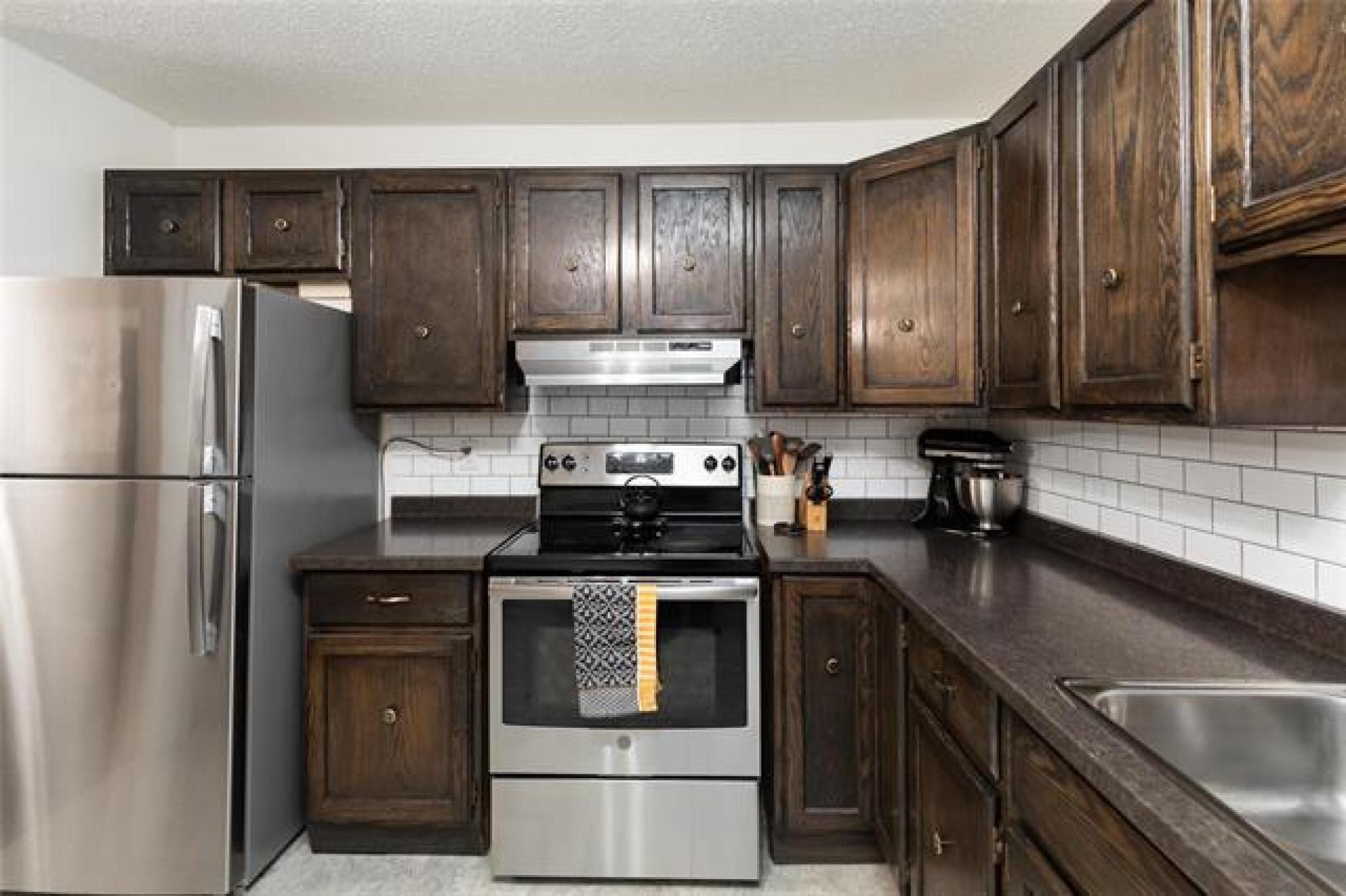 SS 10 Dec 25. Offers 16 Dec 25 after 6:00 pm. Open House Sat 13 Dec and Sun 14 Dec from 1:00-3:00 This spacious, beautifully decorated and maintained 3 bedroom, 1 bathroom condo is in the Heritage Gardens complex. The condo has new windows and paint throughout, newer laminate floors, refreshed kitchen cabinets, new bathroom cabinetry, and an in-suite laundry. It features 3 good sized bedrooms, an eat-in kitchen with stainless steel appliances, plus a formal dining area, and a large living room that has a functioning (and inspected) wood-burning fireplace. There is loads of storage space in the condo's walk-in pantry/storage closet and in the storage locker located just outside the front door. Condo fees include Cable TV, Contribution to Reserve Fund, Insurance-Common Area, Internet, Landscaping/Snow Removal, Management, Parking, and Water. An in-ground outdoor pool completes the package. This pet friendly (cat, bird, fish - sorry no dogs) condo is a must see; close to schools, shopping, parks, trails, outdoor skating rinks and a curling club. Do not miss this great opportunity to own your own place.