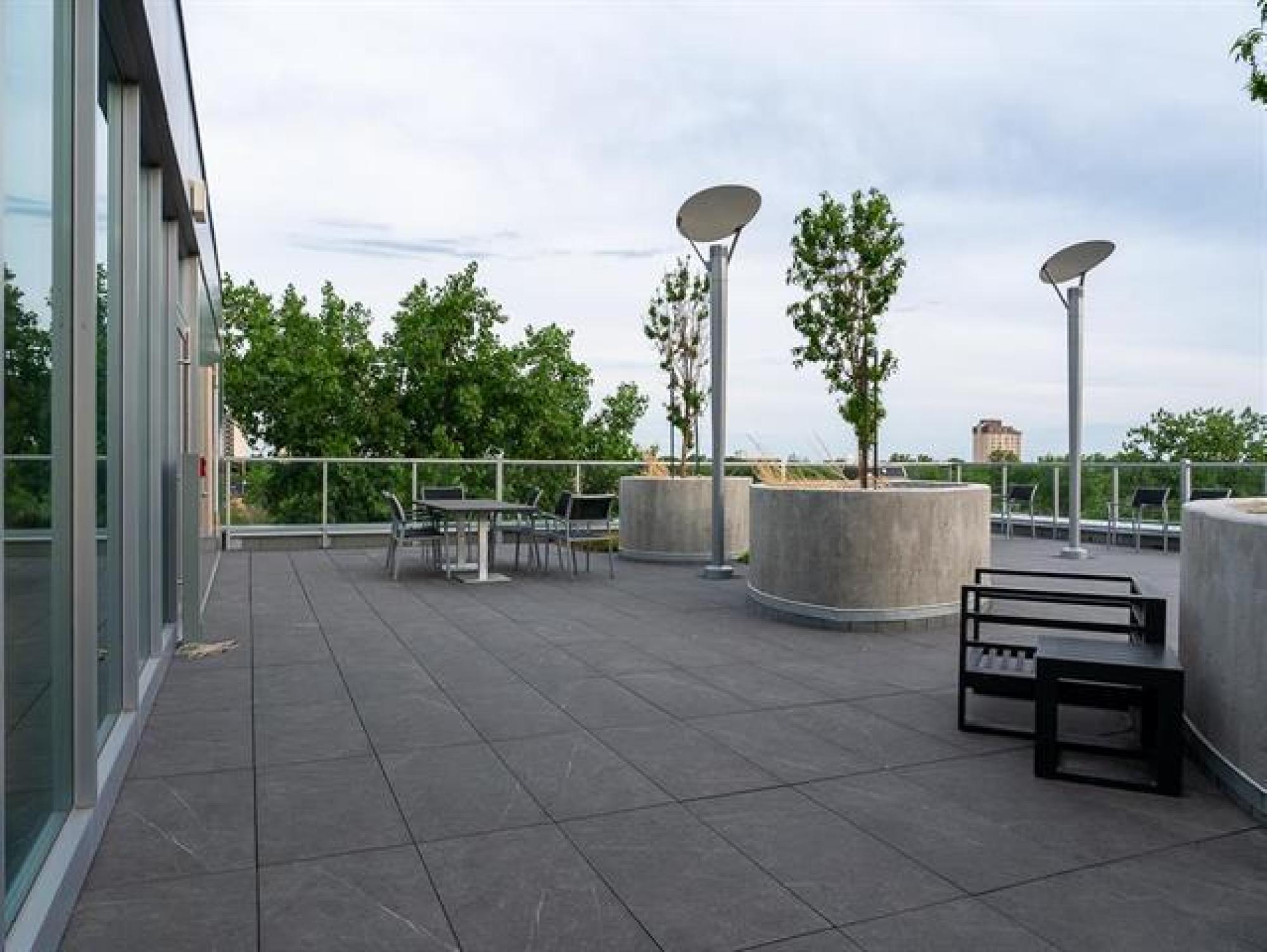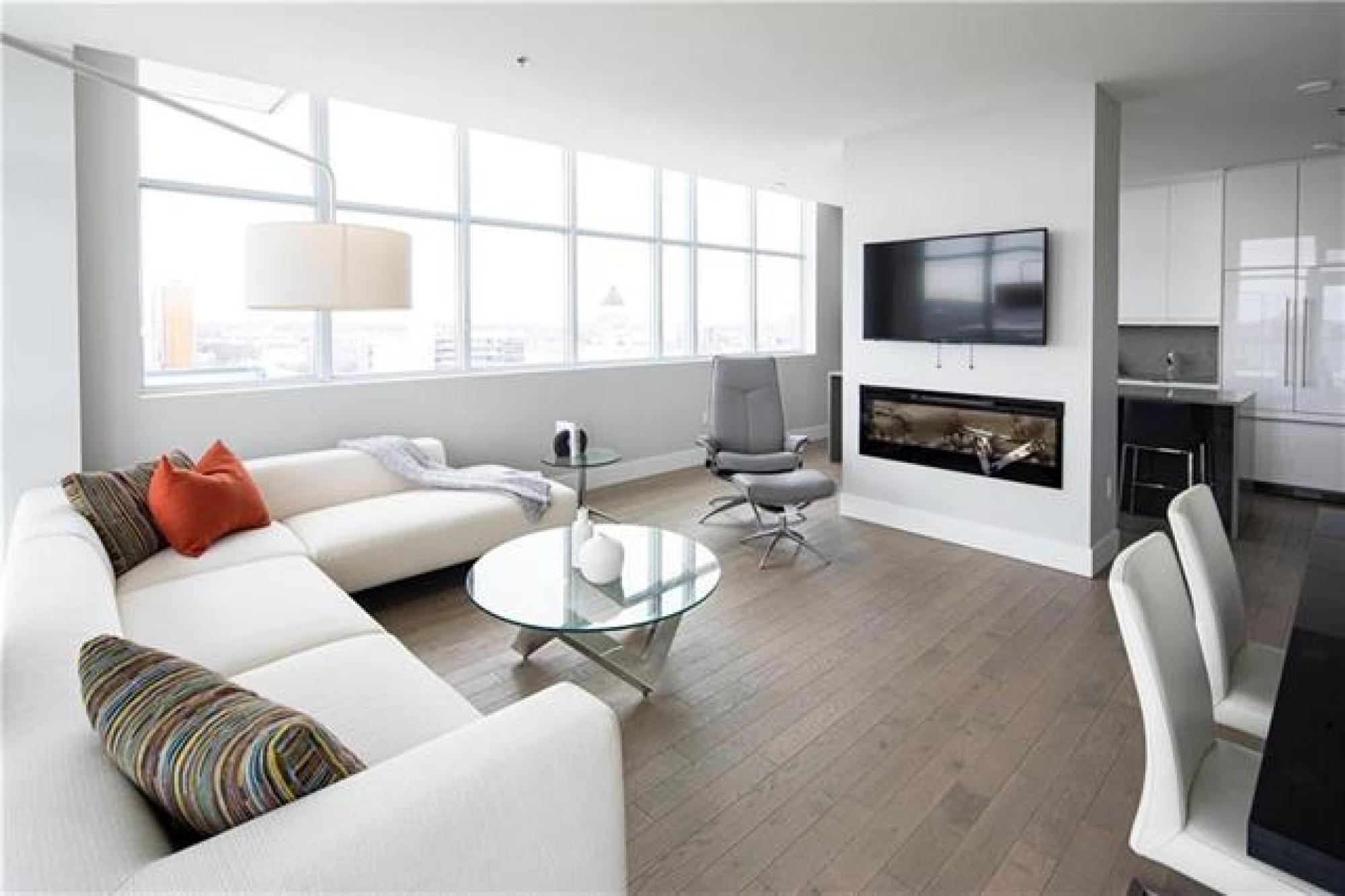 390 Assiniboine - the most impressive new address in the city center. Discover upscale living in Winnipeg’s vibrant downtown, just steps away from the Assiniboine River Walk, Canada Life Centre and so much more. Enjoy views of the sunset, river and Legislative Building from the balcony, and the sophistication of hardwood floors, ceramic tile and smooth walls/ceilings. Connoisseurs will love the quartz counter-tops, modern cabinets, under-mount sinks and integrated Jenn-Air/Fisher Paykel appliances. Party room with a 2,364 sqft landscaped terrace with beautiful river views, contemporary dining/lounge area with fireplace and pool table, and fitness studio with premium equipment. This distinctive new building also features a 2-storey lobby, unique above-grade parkade and guest suite. A private path lights your way to Winnipeg’s favorite river walk. MEASUREMENTS ARE +/- JOGS.
