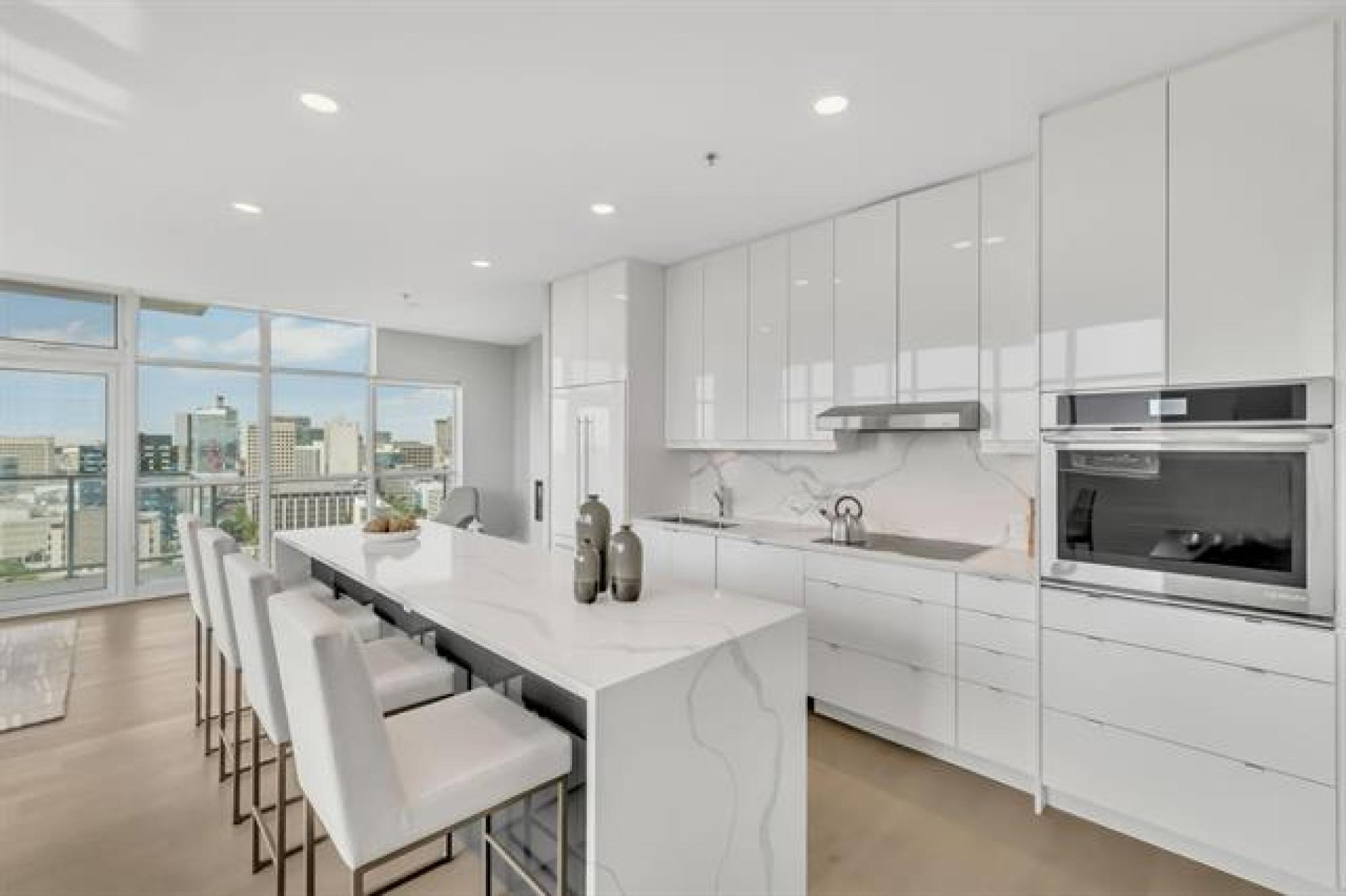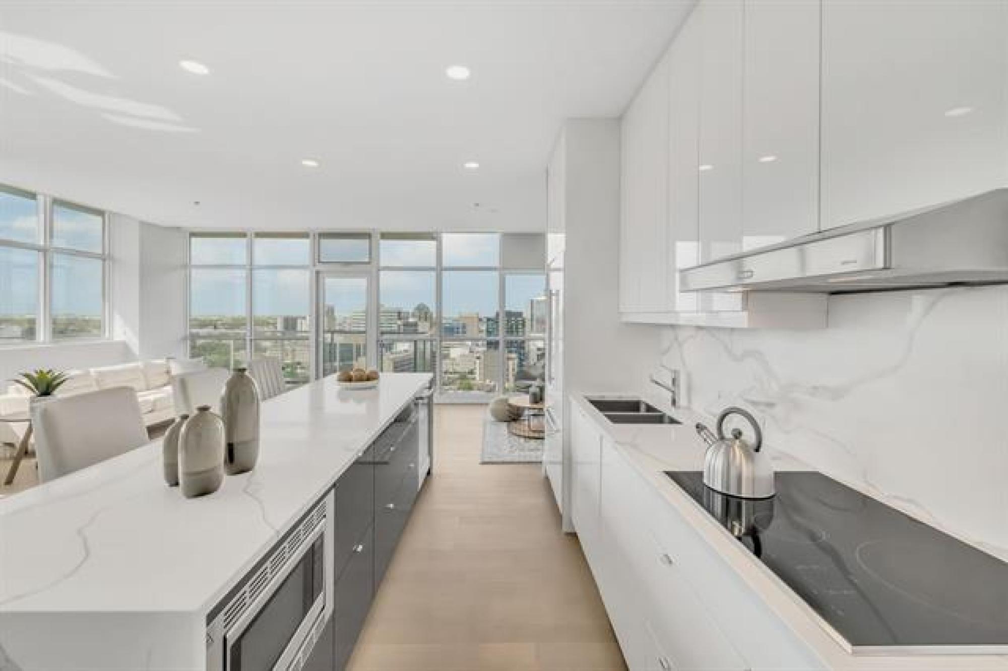 390 Assiniboine – Winnipeg’s most impressive new address in the heart of downtown. Enjoy upscale living just steps from the River Walk, Canada Life Centre, and the best of city life, with stunning sunset, river, and Legislative views from your private balcony. This fully furnished unit is move-in ready, featuring hardwood floors, ceramic tile, and sleek modern finishes. The chef’s kitchen boasts quartz countertops, premium Jenn-Air/Fisher Paykel appliances, and under-mount sinks. Comes with 2 indoor parking stalls for ultimate convenience. Host in the party room with a 2,364 sq ft terrace, unwind in the lounge with fireplace and pool table, or stay active in the fitness studio. The building also offers a 2-storey lobby, above-grade parkade, car wash, guest suite, and a private lighted path connecting you to the river walk. MEASUREMENTS ARE +/- JOGS.