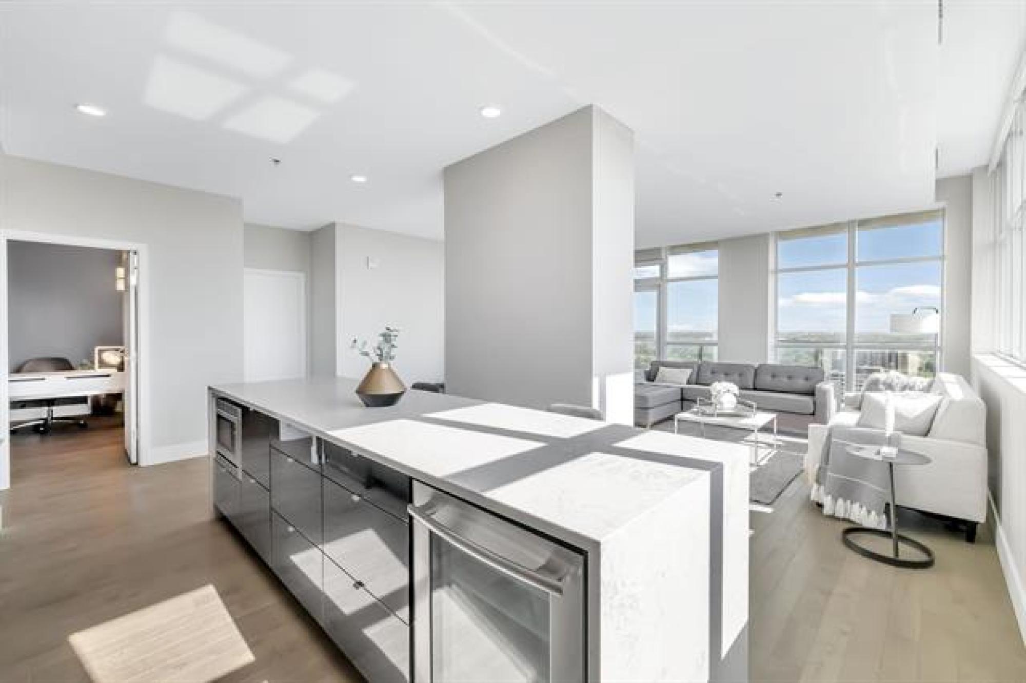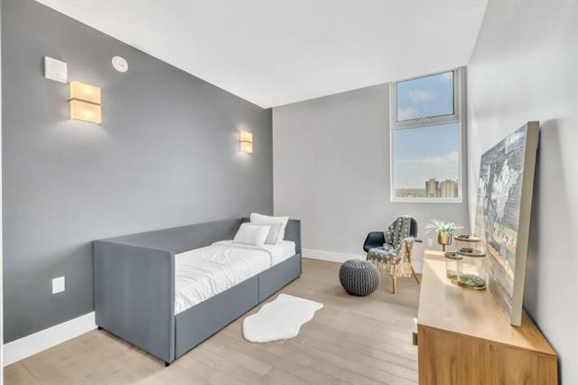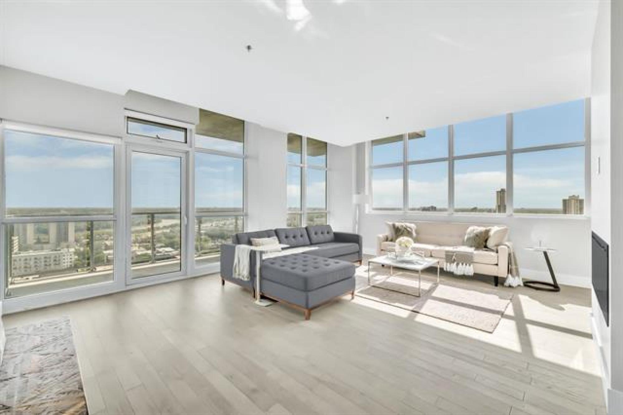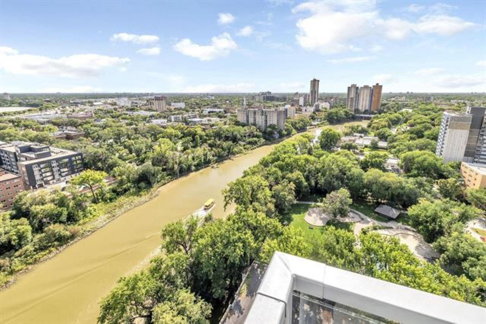 390 Assiniboine – the most impressive new address in the city centre. Experience refined living in the heart of downtown Winnipeg, just steps from the scenic Assiniboine River Walk, Canada Life Centre, and countless city amenities. Take in striking views of sunsets, the river, and the Legislative Building from your private balcony. Sophisticated interiors feature hardwood floors, ceramic tile, and smooth ceilings and walls. The chef’s kitchen shines with quartz countertops, sleek modern cabinets, under-mount sinks, and integrated Jenn-Air/Fisher Paykel appliances. Entertain in the spacious party room with a 2,364 sq ft landscaped terrace overlooking the river, a cozy lounge with fireplace and pool table, and a fully equipped fitness studio. The building also boasts a grand 2-storey lobby, above-grade parkade, convenient car wash, and guest suite. A lighted private path leads you straight to the city's favourite river walk. ALL MEASUREMENTS ARE +/- JOGS.