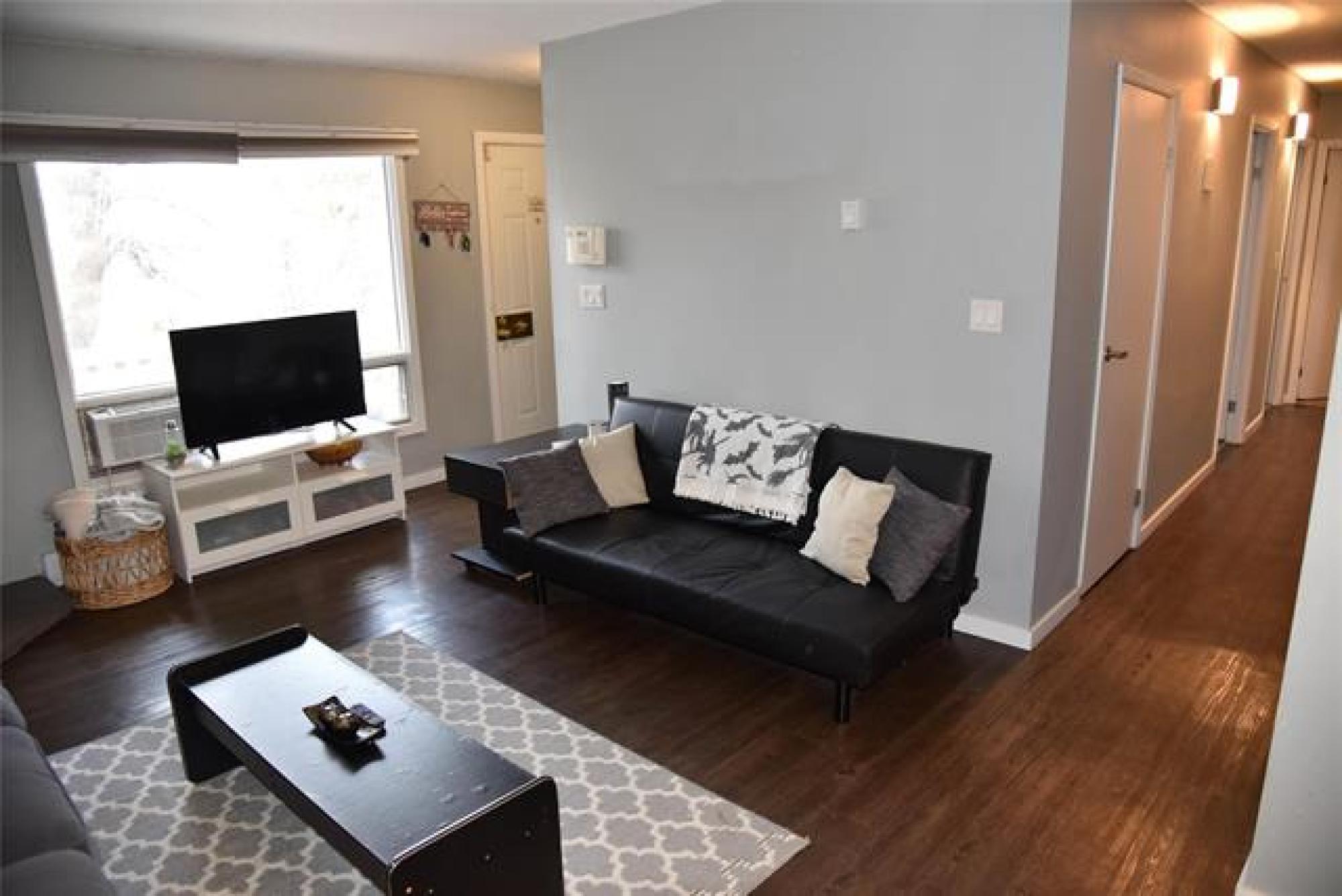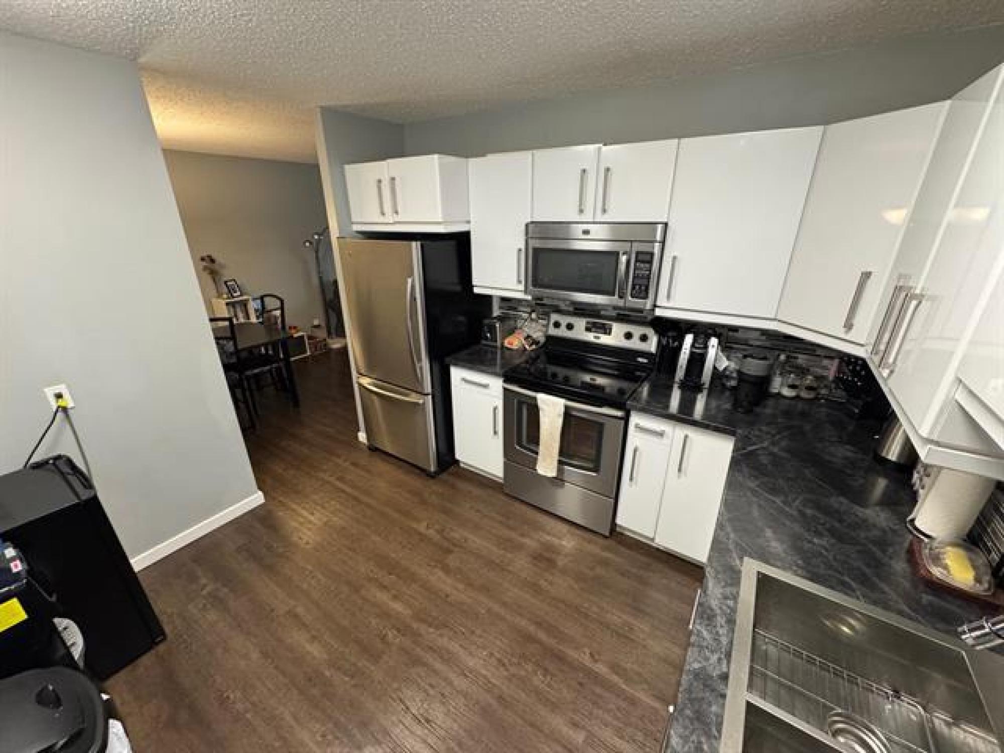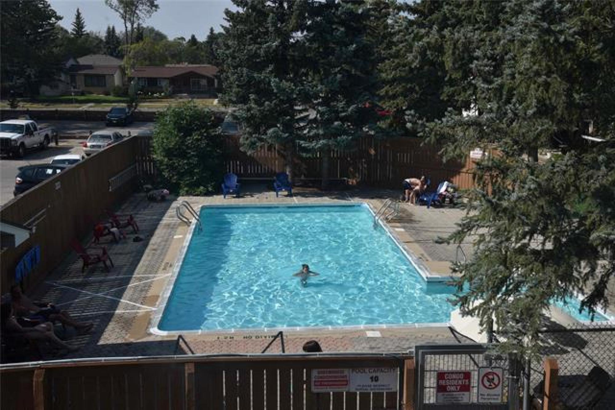 Showings start Thursday Nov 20th, offers Tuesday Nov 25th. Great quiet location for this 3 bedroom condominium at the west end of the property. Upper level corner suite with large balcony and nicely treed. Completely remodelled 10 years ago and it still looks good. Nice modern high gloss kitchen cabinetry, stainless steel appliances, tile backsplash, undercabinet lighting. Large living room with stone wood burning fireplace, dining room open to the living room & both with vinyl plank floors. Bathroom with modern vanity, tile tub surround, extra laundry cabinets. Good sized bedrooms. Parking stall in front of the suite, extra parking available for rent at $30 month. You'll enjoy having the inground pool on the property in hot summers. Tennis courts also on the property. Storage shed off porch/balcony. Convenient for shopping and transit. Cats allowed no dogs. Hydro budget $97 month.