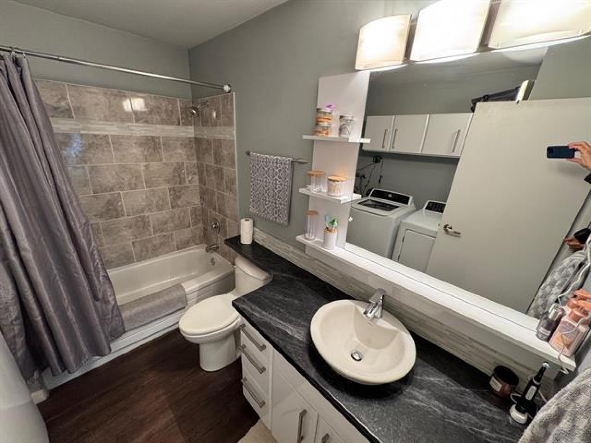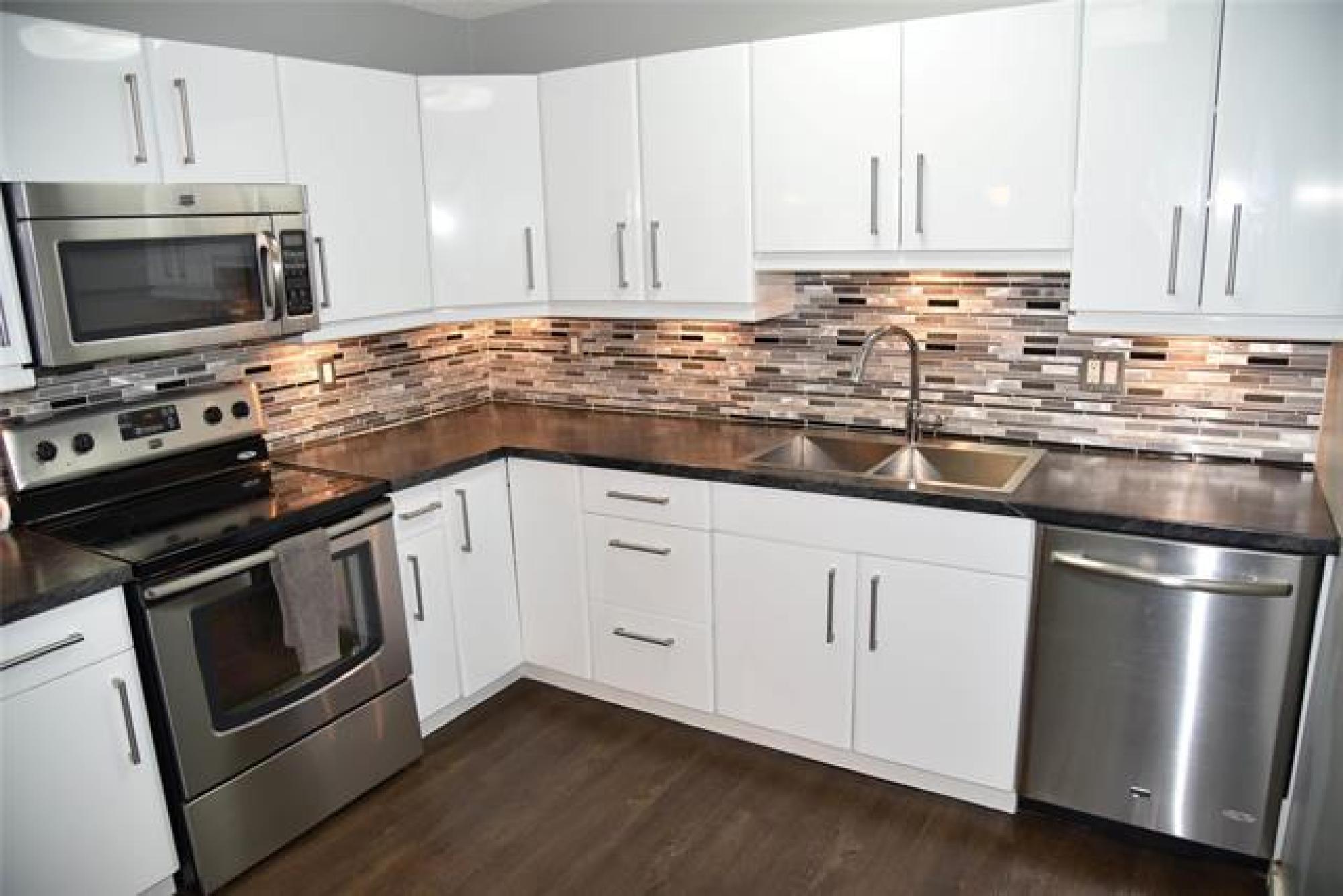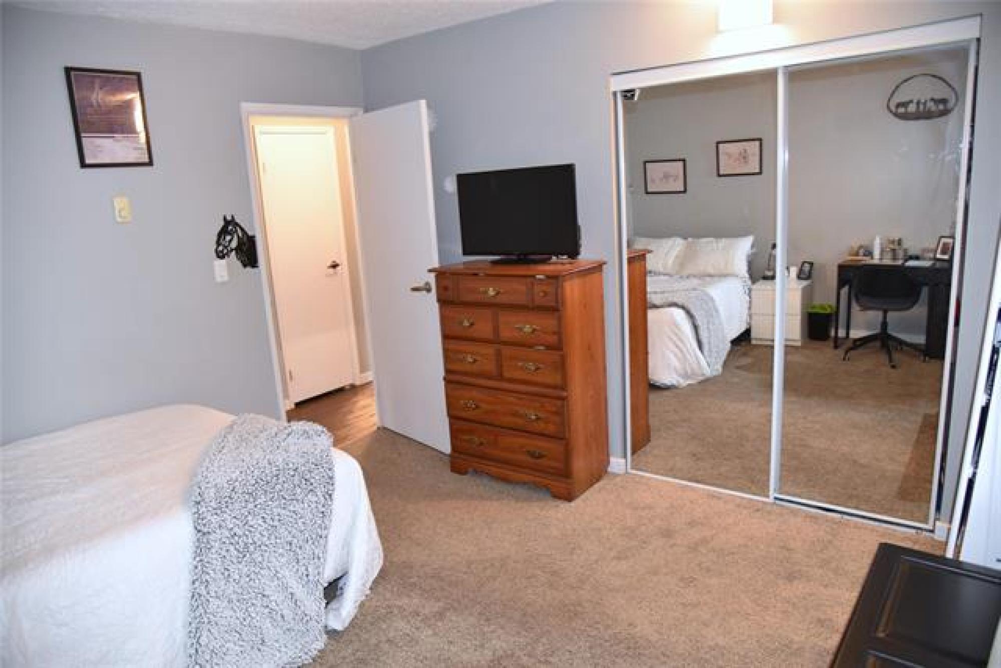 Showings start Thursday Nov 20th, offers Tuesday Nov 25th. Great quiet location for this 3 bedroom condominium at the west end of the property. Upper level corner suite with large balcony and nicely treed. Completely remodelled 10 years ago and it still looks good. Nice modern high gloss kitchen cabinetry, stainless steel appliances, tile backsplash, undercabinet lighting. Large living room with stone wood burning fireplace, dining room open to the living room & both with vinyl plank floors. Bathroom with modern vanity, tile tub surround, extra laundry cabinets. Good sized bedrooms. Parking stall in front of the suite, extra parking available for rent at $30 month. You'll enjoy having the inground pool on the property in hot summers. Tennis courts also on the property. Storage shed off porch/balcony. Convenient for shopping and transit. Cats allowed no dogs. Hydro budget $97 month.