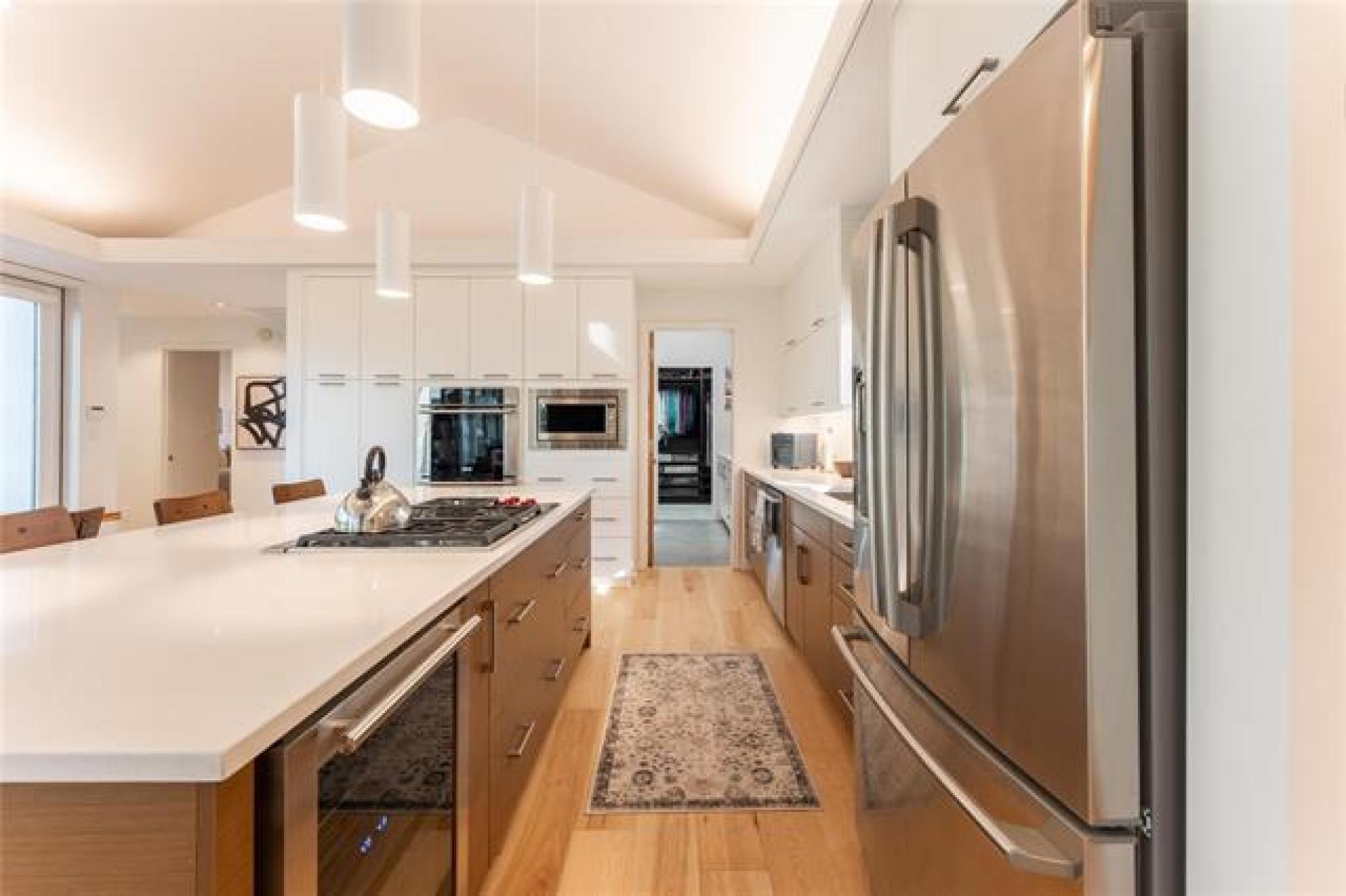 S/S Thursday September 11, offers presented as received, Open house Sunday 1-3pmStunning 2,100 Sq. Ft. Custom-Built Top-Level Condo in Norwood! This remarkable condo blends luxury, privacy, and location. Step into the open great room with vaulted ceilings, expansive windows, and rich hickory hardwood floors. The chef’s kitchen impresses with a large island, gas cooktop with down-draft venting, double wall ovens, built-in microwave, quartz countertops, beverage fridge, and solid wood dovetailed cabinetry. Enjoy the versatile fitness/sunroom and a 20' x 22' rooftop deck complete with a hot tub—an ideal space for entertaining or relaxing in privacy. The primary suite offers a skylit walk-in closet and a 5-piece ensuite with heated tile floors and a soaker tub. The second bedroom includes a built-in closet and cabinetry, while a flexible room with vaulted ceiling and balcony access can serve as a third bedroom or office. Finishes include solid interior doors, wood casing, and baseboards. Built on nearly 40 piles with a large driveway approach, ensuring both durability and convenience. A rare chance to own an urban condo in a serene tree-lined setting—priced well below replacement cost. No pets permitted.