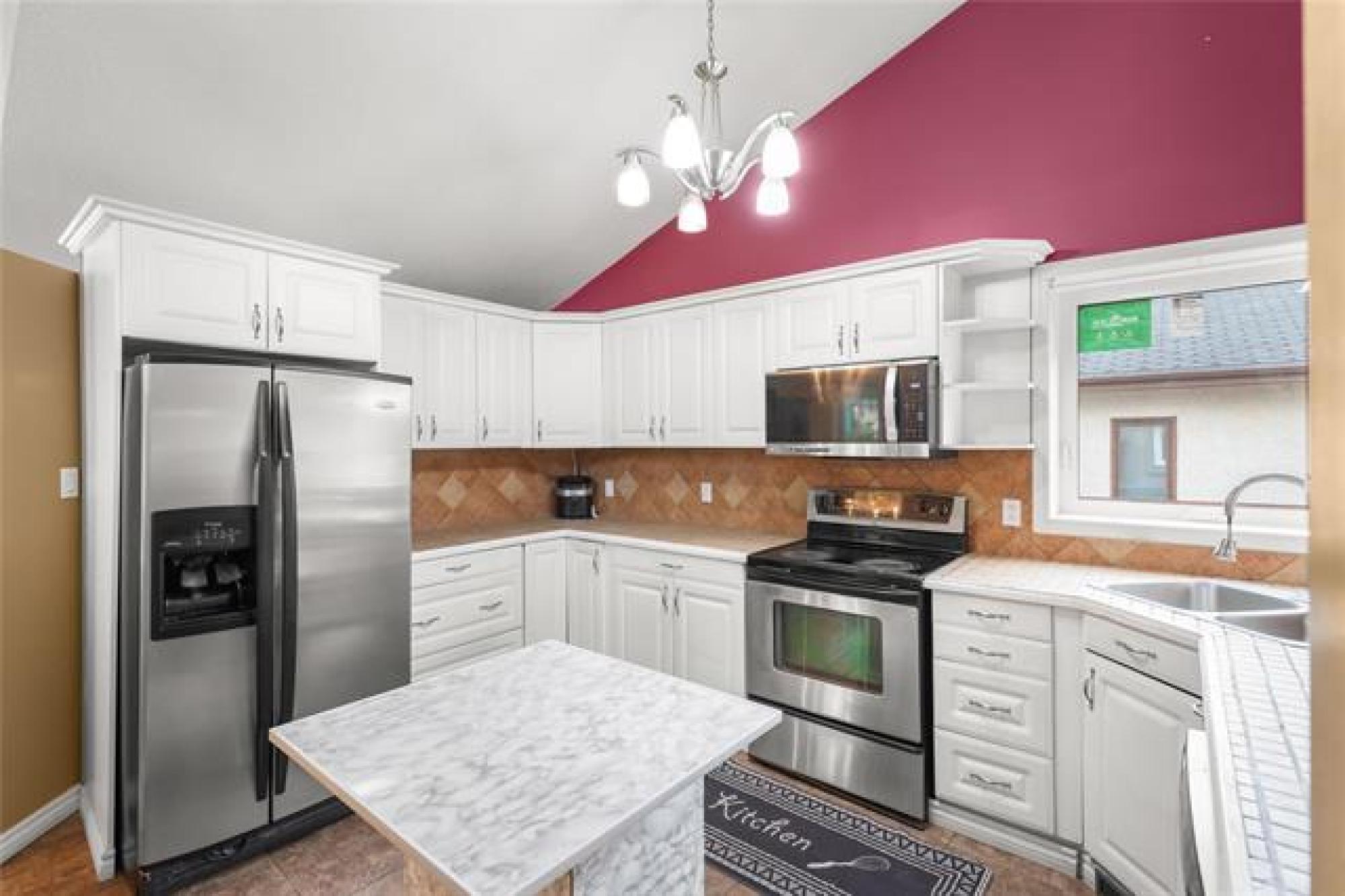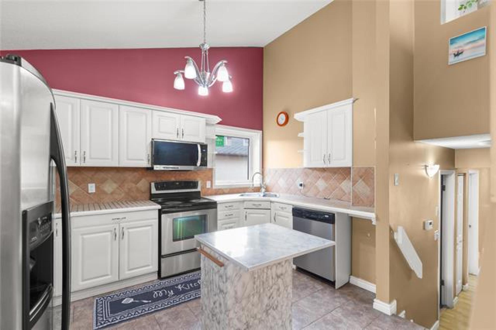 O.H Sun Oct 26th 2-3:30. Offers Tues Oct 28th. Cute and cozy 3bdrm 2bthrm 1435sqft home with finished basement, single attached garage and fully fenced backyard. Step inside to laminate floors seamlessly throughout formal dining/living room w/ 16 vaulted ceilings and large windows letting in an abundance of natural light. Remodelled eat in kitchen offers plenty of counter and cabinet space, tile backsplash, island and all SS appliances included. Upstairs offers loft area overlooking the living room which is a great reading space, or office. 2 spacious second floor bedrooms both with walk in closets and 4 pc bathroom w/ tile tub surround, tile flooring and stone vanity. Lower level boasts 2nd living space w/ tile facing fireplace and patio doors leading to your 22x16 patio. 3rd bdrm and second full bathroom finish off this space. Basement offers rec room, laundry room and plenty of storage. Additional features & upgrades: Shingles 2023, aluminum soffit and fascia 2012, some newer pvc windows, newer hwt, central air, walking distance, to parks, schools and amenities.