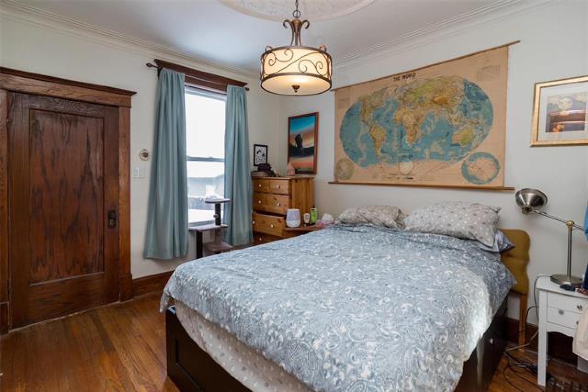 LOCATION LOCATION- MIDBLOCK! This is the kind of income property that makes sense. A converted 2½-storey home offering two fully self-contained unit, ideal for investors or owner-occupiers who appreciate flexibility & smart returns.The main-level unit delivers warmth & character w/ hwd floors, crown moulding, & a decorative fireplace. One bdrm on the main w/ a second bdrm & additional living area in the bsmt, perfect for a home office or media room. Private bsmt access for laundry & storage, direct backyard access w/ deck add everyday ease. The upper unit keeps things simple & functional w/ 2 bdrms, in-suite laundry, front porch access, & its own front garden green space—bright, private, & easy to rent. Major upgrades inspire confidence: shingles (2019), windows (2015), K&T replacement w/ copper (2015),upgraded panel, dual hot water tanks, hwd floors throughout & new appliances in both units at conversion. A rear parking pad for 2 cars rounds it out. Fun fact, it can also very easily be converted back to a single family home in the heart of Cresentwood! Two entrances. Two incomes. One very smart opportunity. You must come to see the potential for yourself.