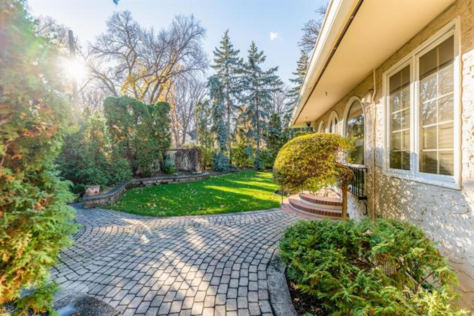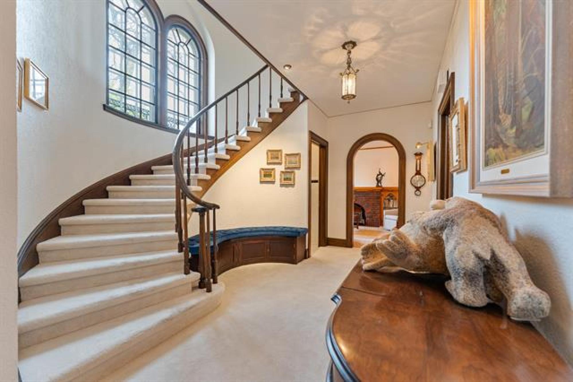 Viewing by appointment. Welcome to 1102 Wellington Cres, very sought after location on corner of Waterloo w/ approx. 150' frontage on the Crescent presenting circular drive, a masterpiece meticulously cared for and updated by these long time owners - boasting character & charm with a modern touch. Arched doorways and rich woodwork throughout, main floor offers spacious living room w/ open fireplace, character rounded windows, large formal dining room, main floor sunroom with panoramic windows and skylight, state of the art kitchen, huge island, appliance garages, loads of cabinet space, kitchen desk, additional formal eating area with loads of windows, cozy main floor den, recent nanny suite addition or 4th BR, full ensuite bath, heated floors, main floor laundry, curving front staircase to second floor, three bedrooms upstairs - primary bedroom w/ huge walk-in closet (formerly 4th upstairs BR), two more spacious bedrooms w/ jack & jill full bathroom, VERY COOL Prohibition Speak Easy style bar downstairs, private well manicured rear yard w/ patio, 2 double attached garages, loads of additional storage downstairs, updated electrical, hot water and forced air heating/cooling.
