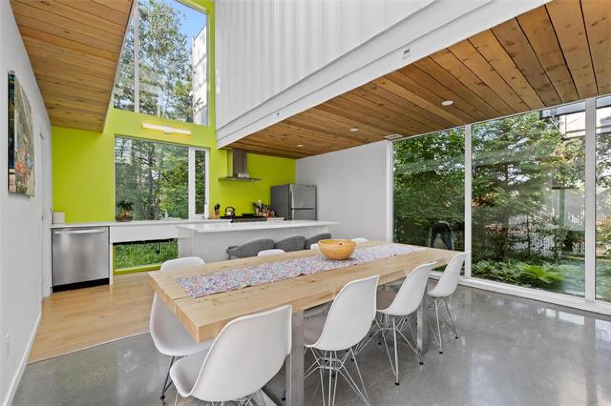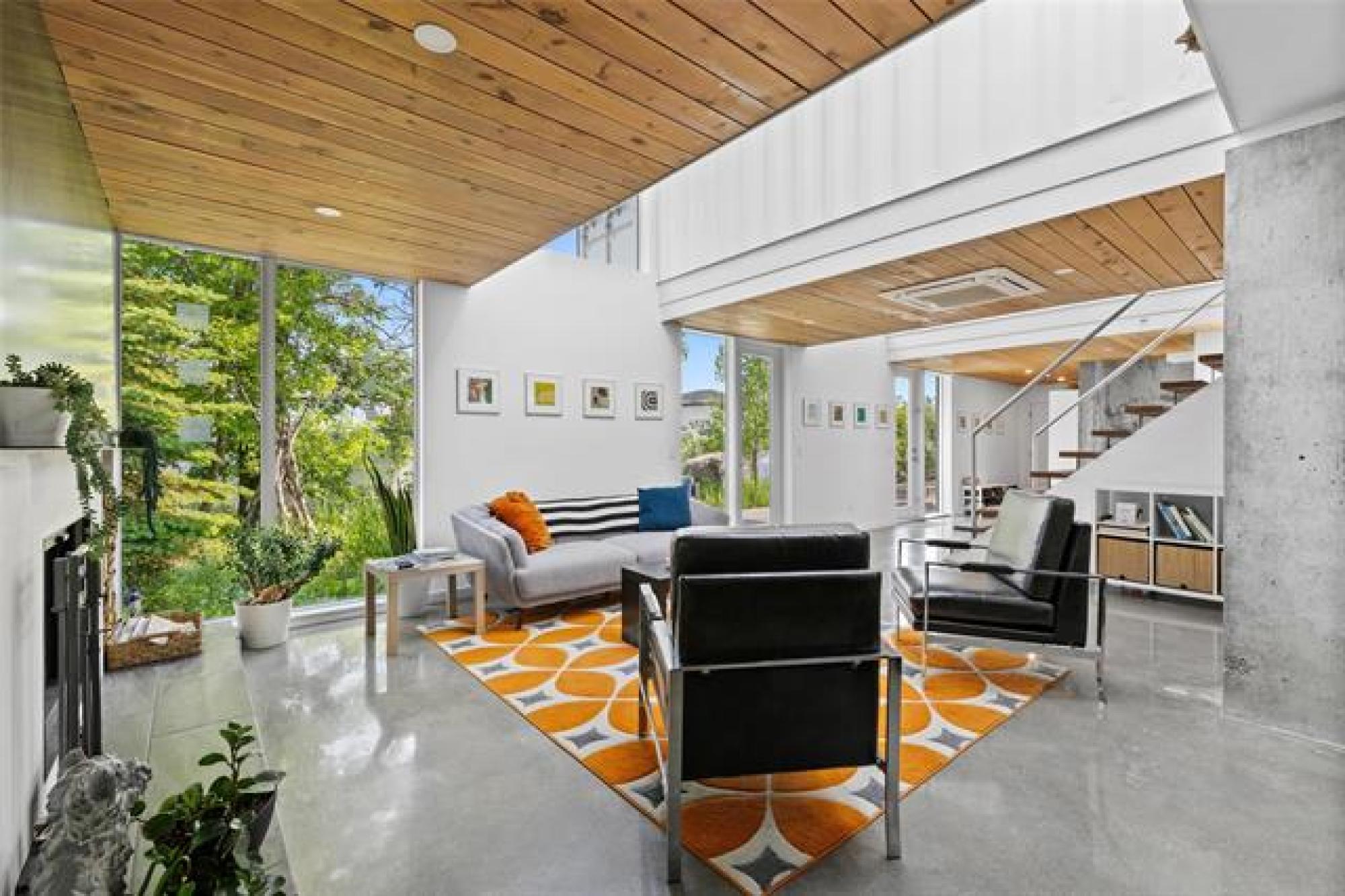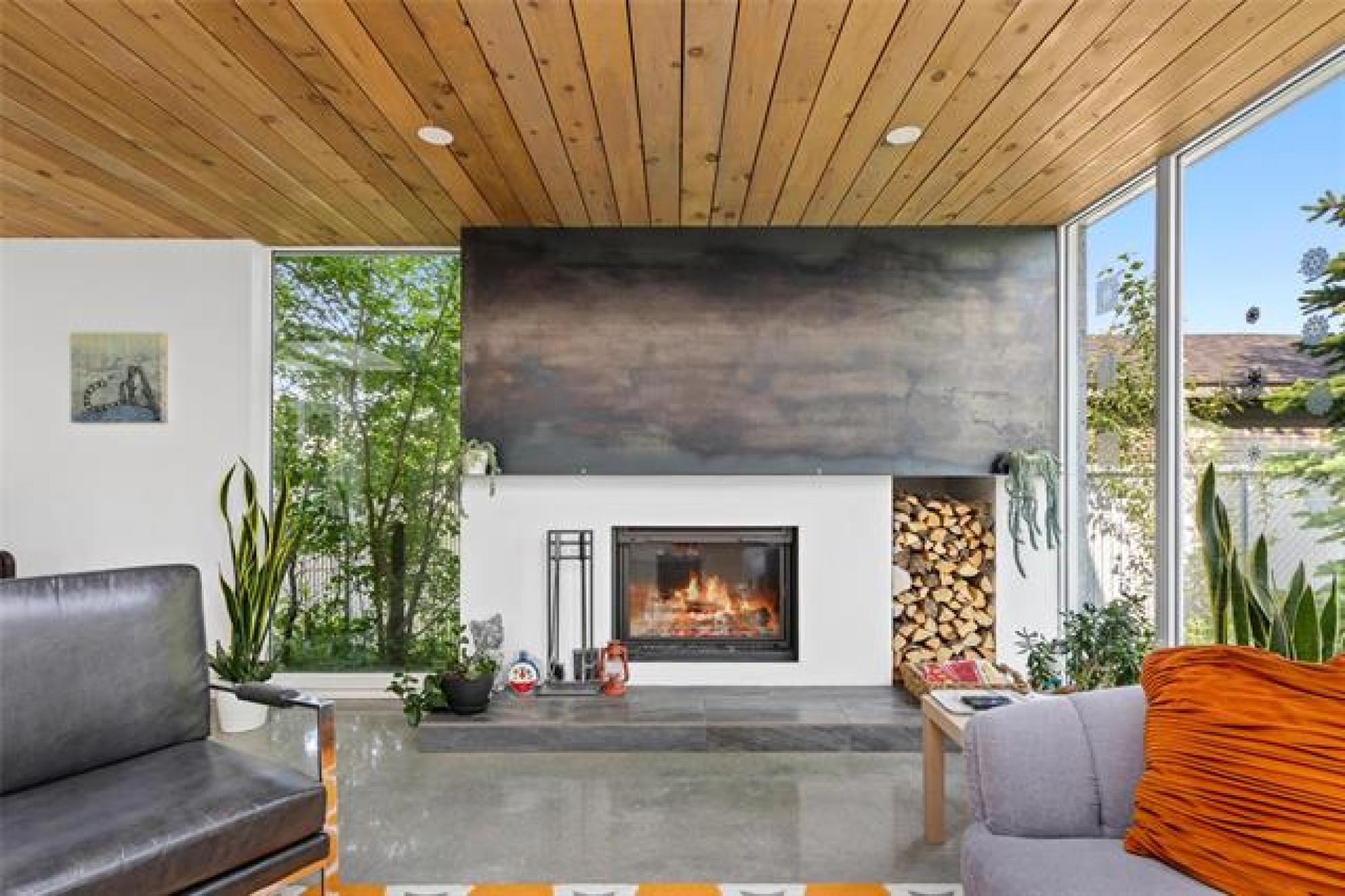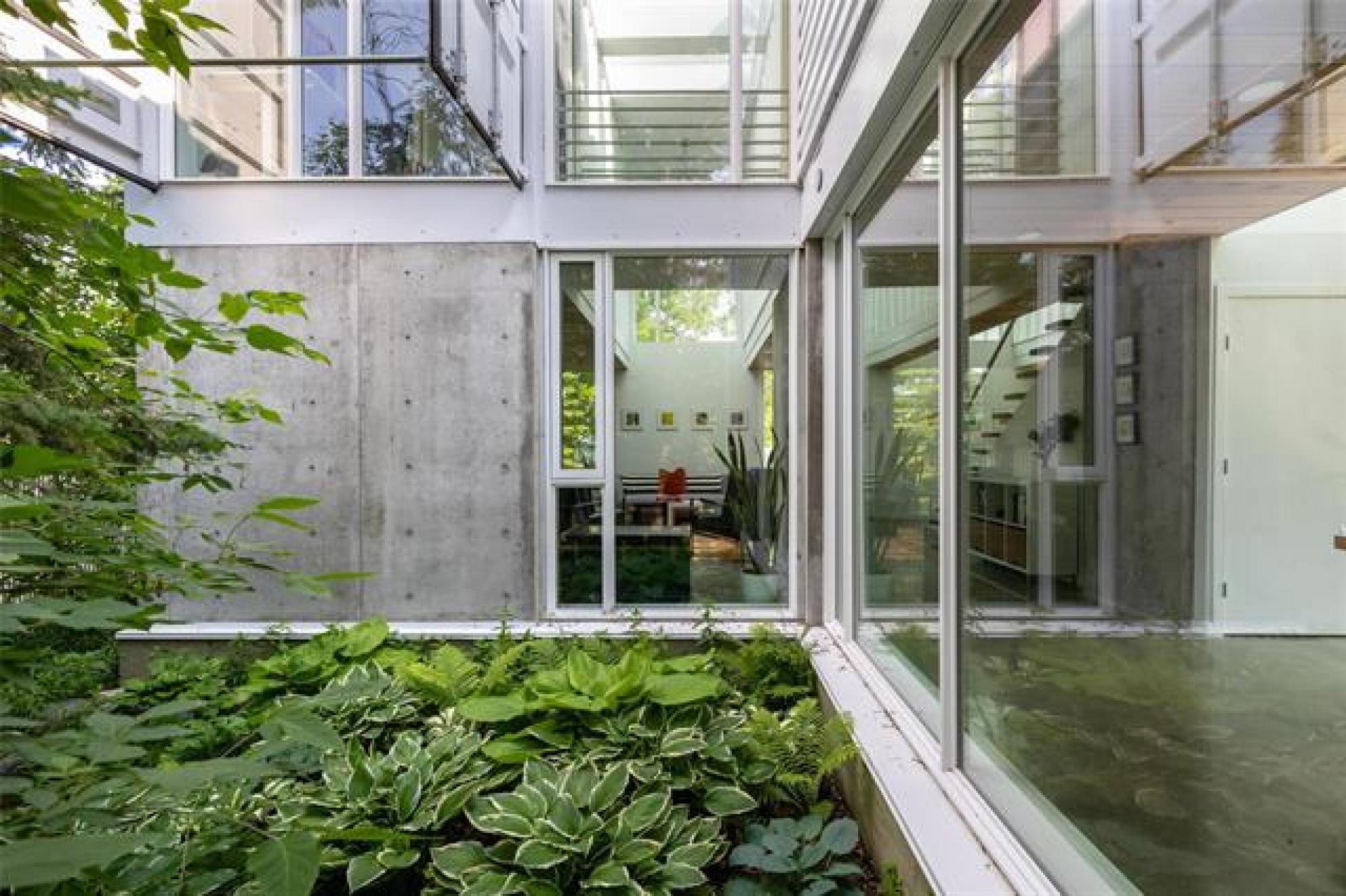 ONE OWNER, ONE-OF-A-KIND DREAM HOME on a PRIVATE TREED YARD! Tucked into a serene forest landscape, this thoughtfully designed ECO-CONSCIOUS home blends Euro-modern style with nature's tranquility. With multiple skylights, huge windows and incredible lighting, every inch of this home is designed to embrace your love of the outdoors. The kitchen is a chef's dream - QUARTZ COUNTERS, 7' ISLAND, gas stove and WALK-IN PANTRY with coffee bar. The expansive dining area overlooks a perennial garden, while the family room features a functional FIREPLACE framed by picturesque views of wildflowers. The primary suite features generous closets and GARDEN DOORS to an amazing, private 12x10' PATIO. Thoughtfully selected flooring - finished concrete, engineered hardwood and ceramic tile - adds both durability and style. Outside, discover a maintenance-free exterior and a low-maintenance oasis with over 48 perennial species, box gardens and MATURE TREES including oak, cedar, fir and maple. A SHED draped in Virginia creeper complements the organic design. An oversized HEATED GARAGE (30x22') with FLOOR HEAT & WORKSHOP completes this exceptional property. Call today to book your exclusive private showing!