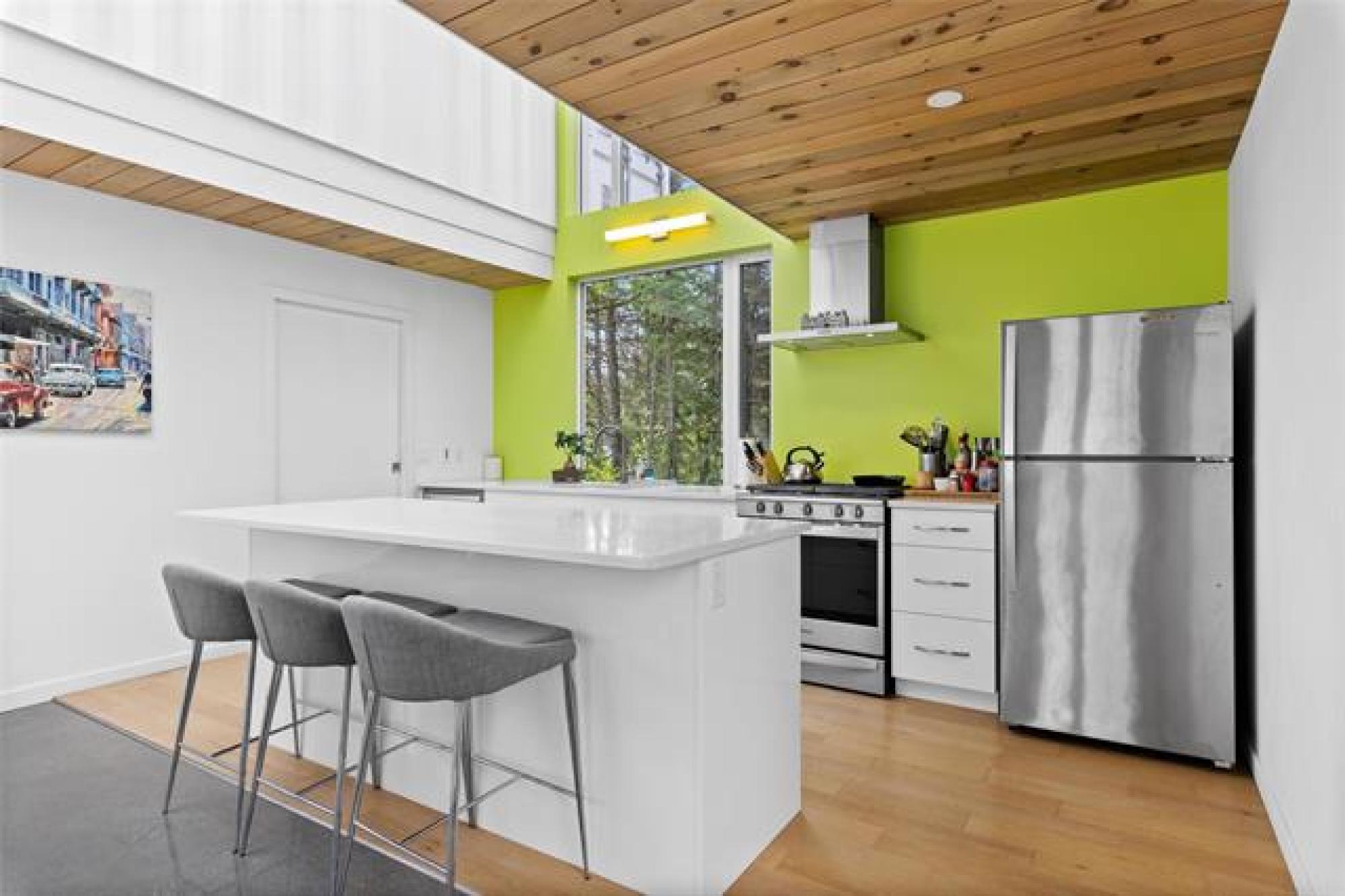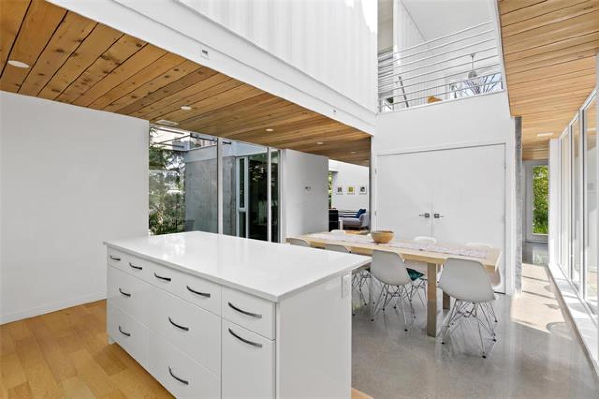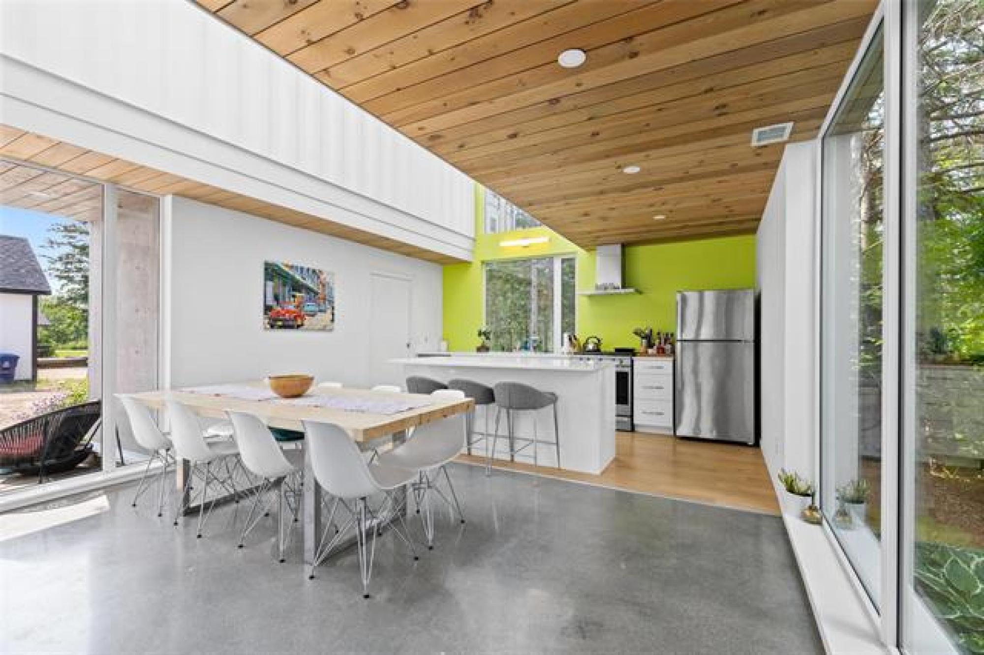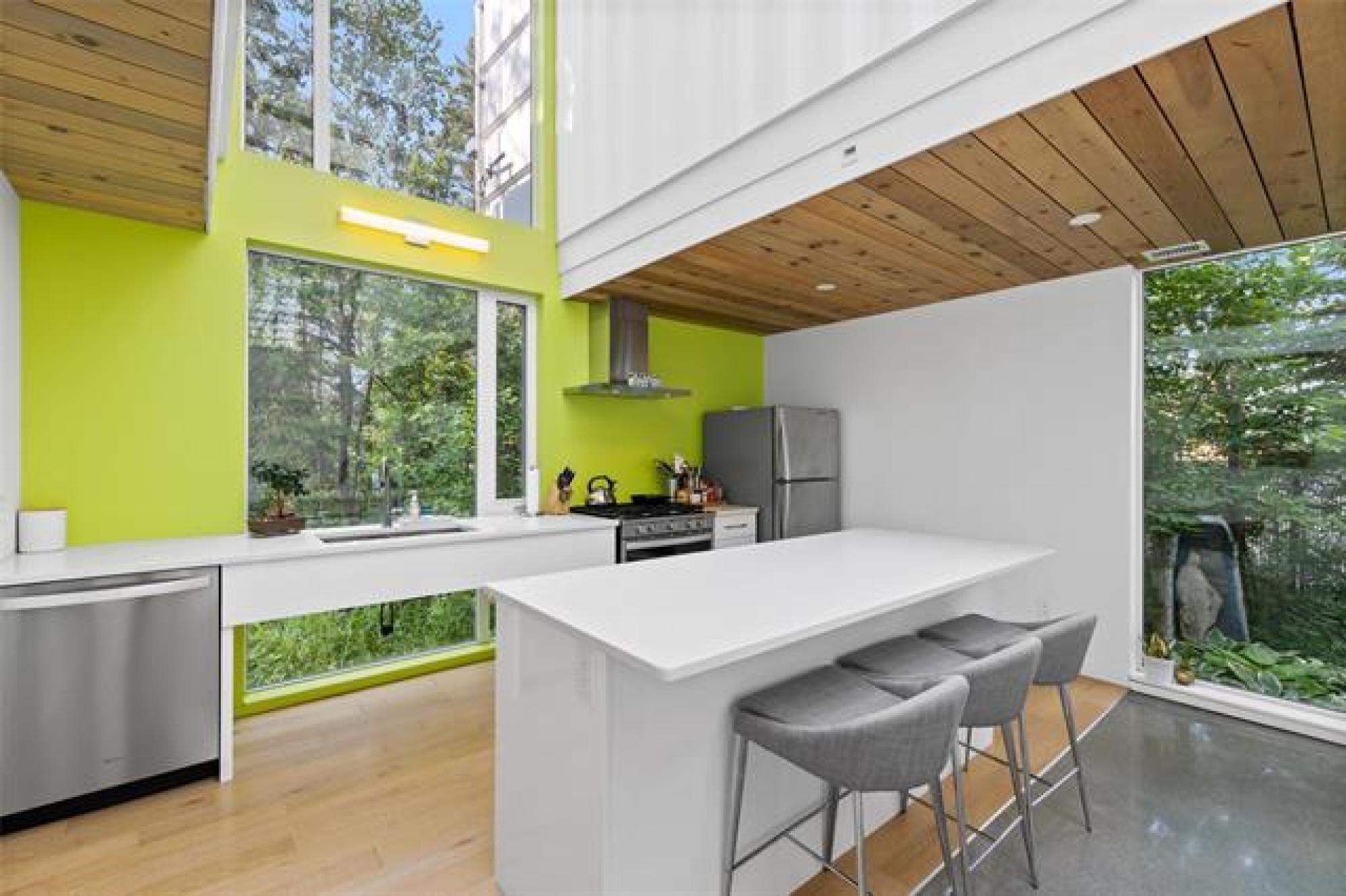 ONE OWNER, ONE-OF-A-KIND DREAM HOME on a PRIVATE TREED YARD! Tucked into a serene forest landscape, this thoughtfully designed ECO-CONSCIOUS home blends Euro-modern style with nature's tranquility. With multiple skylights, huge windows and incredible lighting, every inch of this home is designed to embrace your love of the outdoors. The kitchen is a chef's dream - QUARTZ COUNTERS, 7' ISLAND, gas stove and WALK-IN PANTRY with coffee bar. The expansive dining area overlooks a perennial garden, while the family room features a functional FIREPLACE framed by picturesque views of wildflowers. The primary suite features generous closets and GARDEN DOORS to an amazing, private 12x10' PATIO. Thoughtfully selected flooring - finished concrete, engineered hardwood and ceramic tile - adds both durability and style. Outside, discover a maintenance-free exterior and a low-maintenance oasis with over 48 perennial species, box gardens and MATURE TREES including oak, cedar, fir and maple. A SHED draped in Virginia creeper complements the organic design. An oversized HEATED GARAGE (30x22') with FLOOR HEAT & WORKSHOP completes this exceptional property. Call today to book your exclusive private showing!