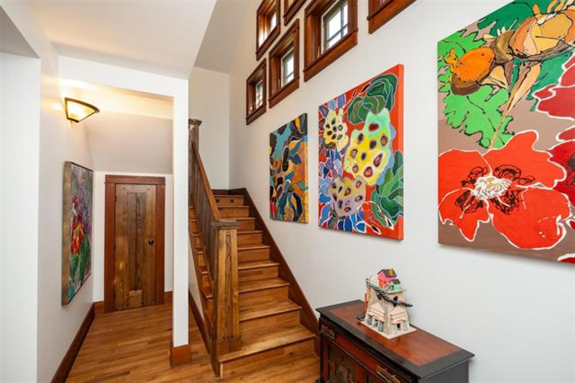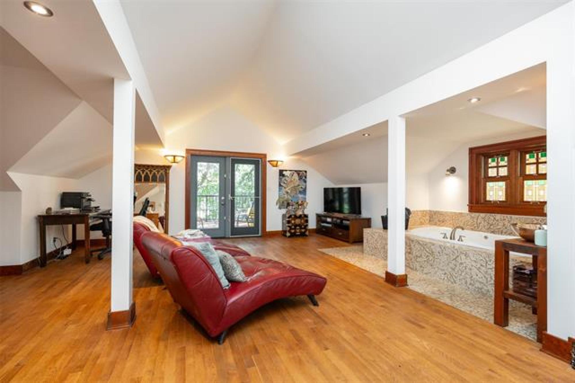 Welcome to this unique 4-bed, 2.5-bath Arts and Crafts-style home on one of Winnipeg’s most coveted streets. Built in 1927 and extensively renovated in 2012 by a reputable company, this is a true character-filled home. Rich in history, every detail tells a story, from the custom staircase crafted from repurposed River Heights Elm trees to the stunning stained-glass windows. The main floor includes a den, two bedrooms, a full bath, and a warm living room with a wood-burning fireplace. The kitchen opens into a dining room highlighted by a striking chandelier. Upstairs, the private primary suite features a walk-in closet, over 10-foot ceilings, a balcony, and a Tyndall stone jetted tub. The finished basement includes a rec room with a bar and gas fireplace, bedroom, two-piece bath, laundry, and generous storage including a large closet. Key upgrades include 220-amp electrical with no knob-and-tube, high-efficiency furnace and central A/C (2024), HWT (2020), metal roof, black metal-clad windows, and fully updated plumbing. Outside, the architecturally designed backyard with Japanese influences with a koi pond offers a private and peaceful retreat. Don't miss out on this Arts/Craft home.