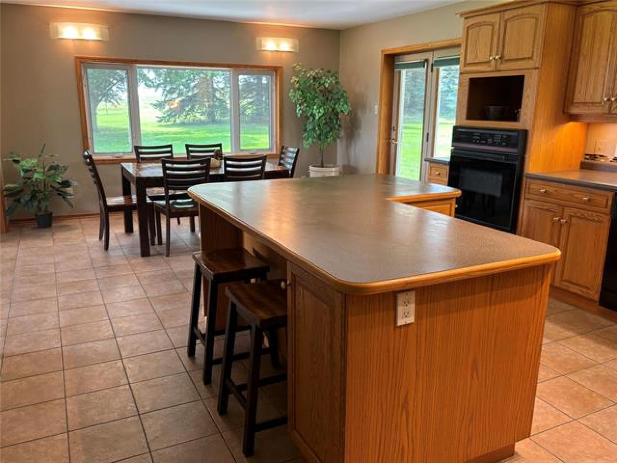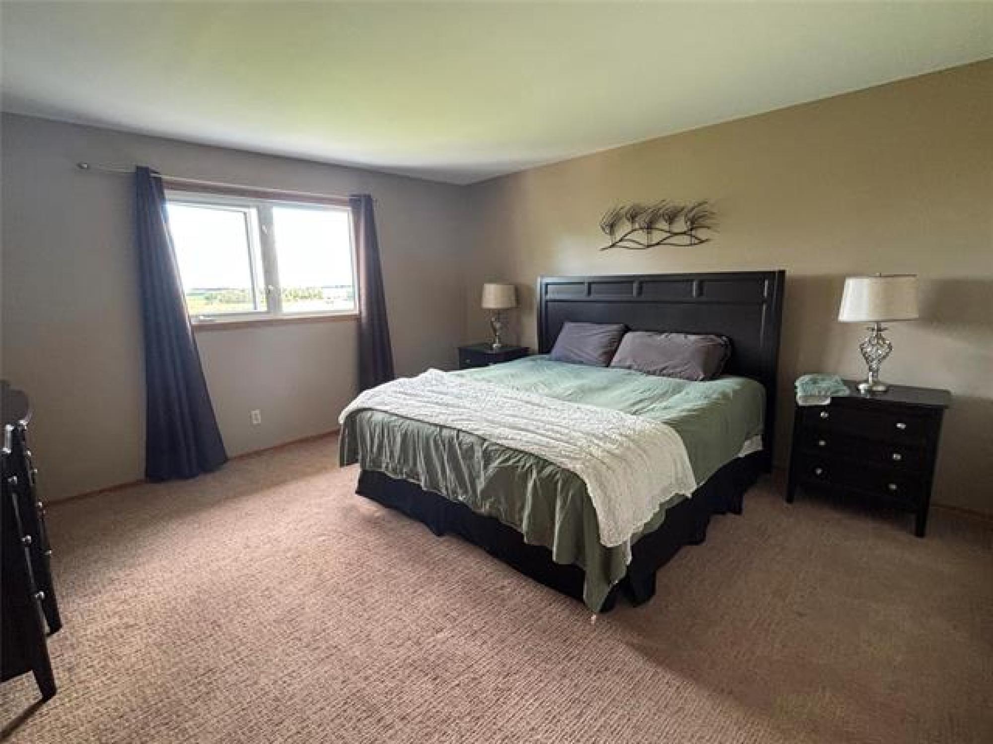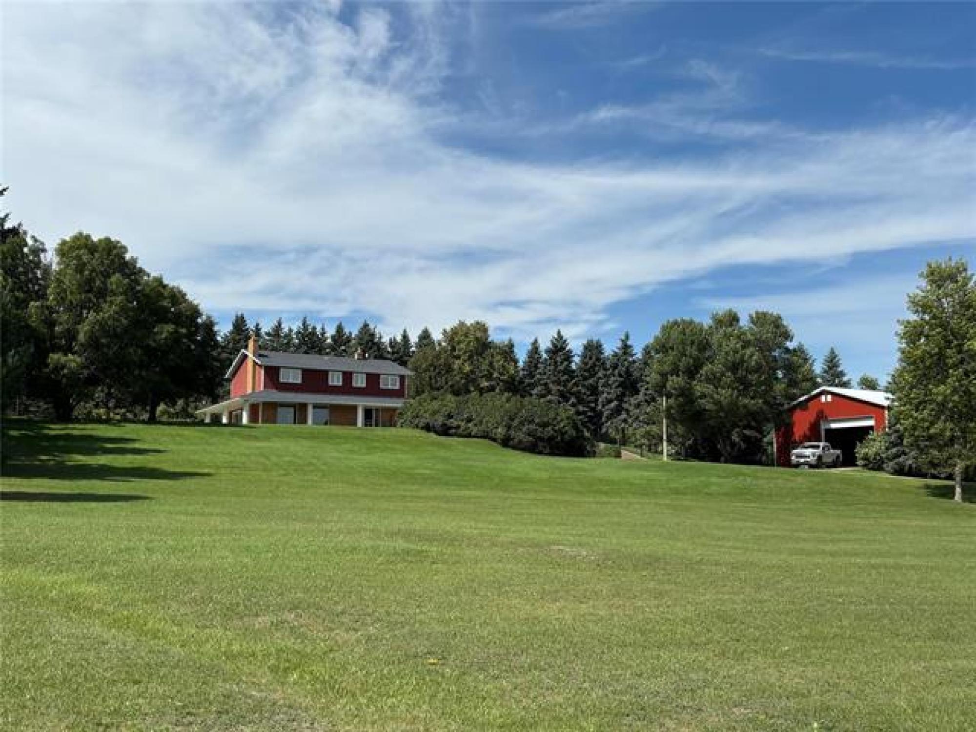 Overlooking the Pembina Valley countryside, this amazing one of a kind 10 acre property offers a two storey 2725 sq. ft. home with an incredible number of features starting with the landscape and the view. The large open kitchen and dining room, a living room overlooking a groomed yard, adjacent den/gym and a 2 piece main floor washroom and large foyer complete the ground floor. Loads of natural light permeate the entire 2 floors above ground. The upper level offers 4 bedrooms; a spacious primary room with ensuite, and 3 additional bedrooms with more than adequate closet space. An additional 4 piece bath completeS this area. The lower level offer a fully developed country style rec. room with wet bar, pool table and a 3 piece washroom. This level also offers access to the 36' x 24' 3 car heated garage. Added value is a recently built 40' x 60' storage facility with 14' door height that can provide an incredible amount storage without being a too dominant a building on the property. The home is in close proximity to Holiday Mountain Ski Resort, Pilot Mound Hockey Academy and Sportsplex, the public golf course, Rock Lake and more. Additional information attached.