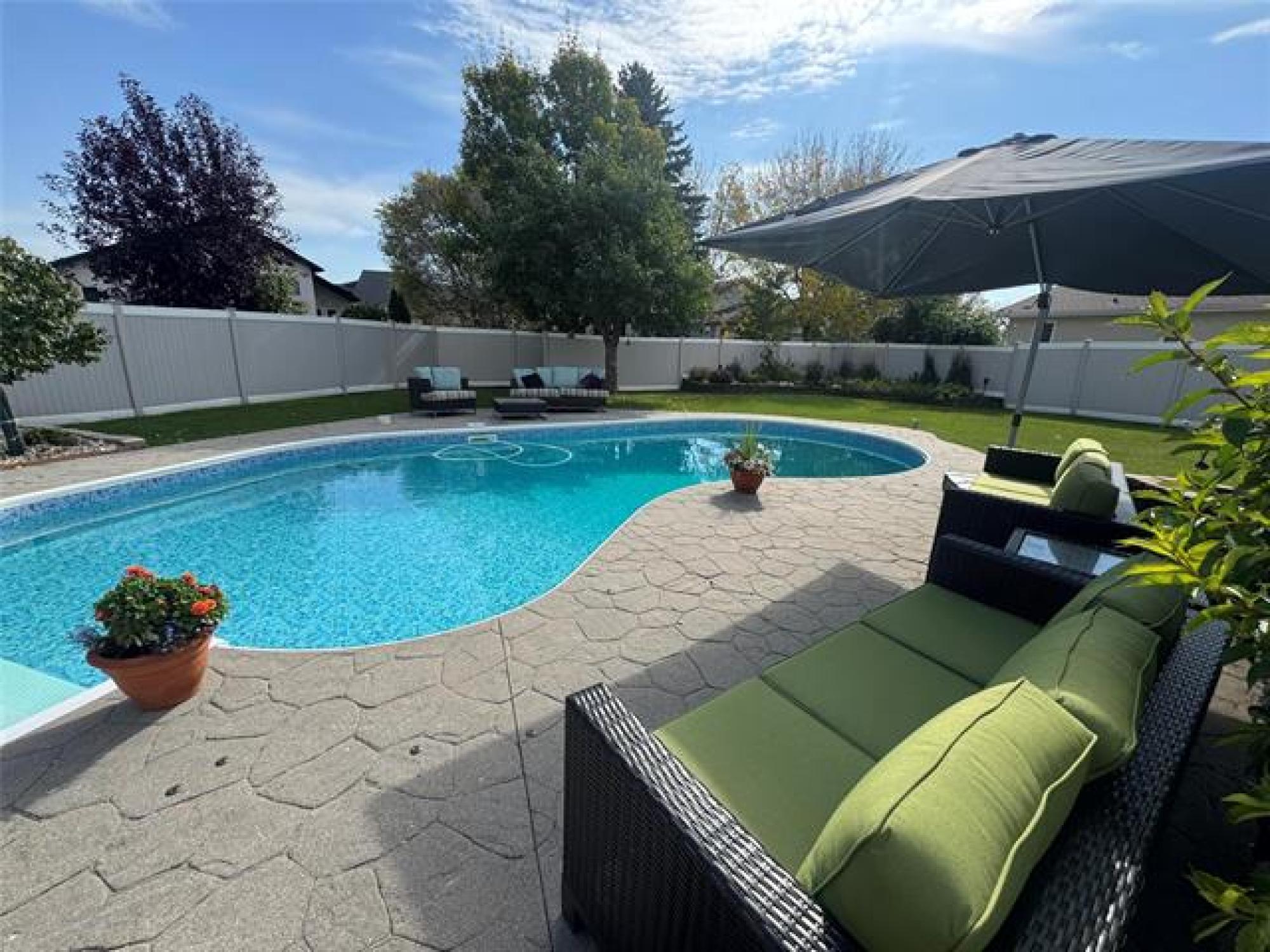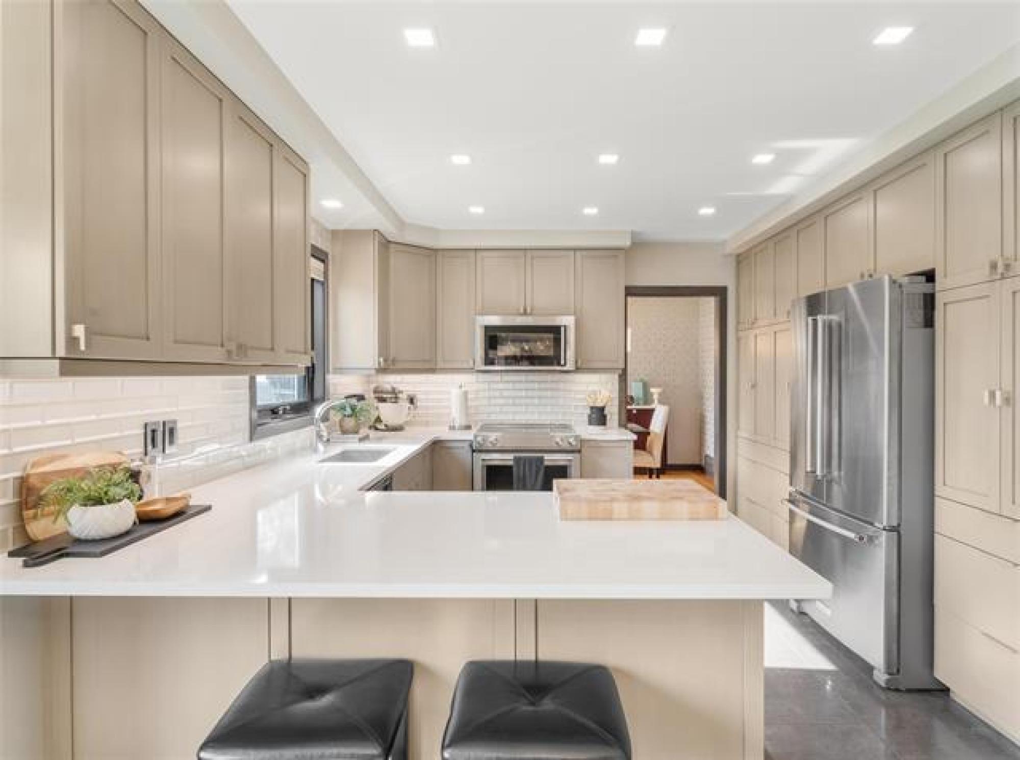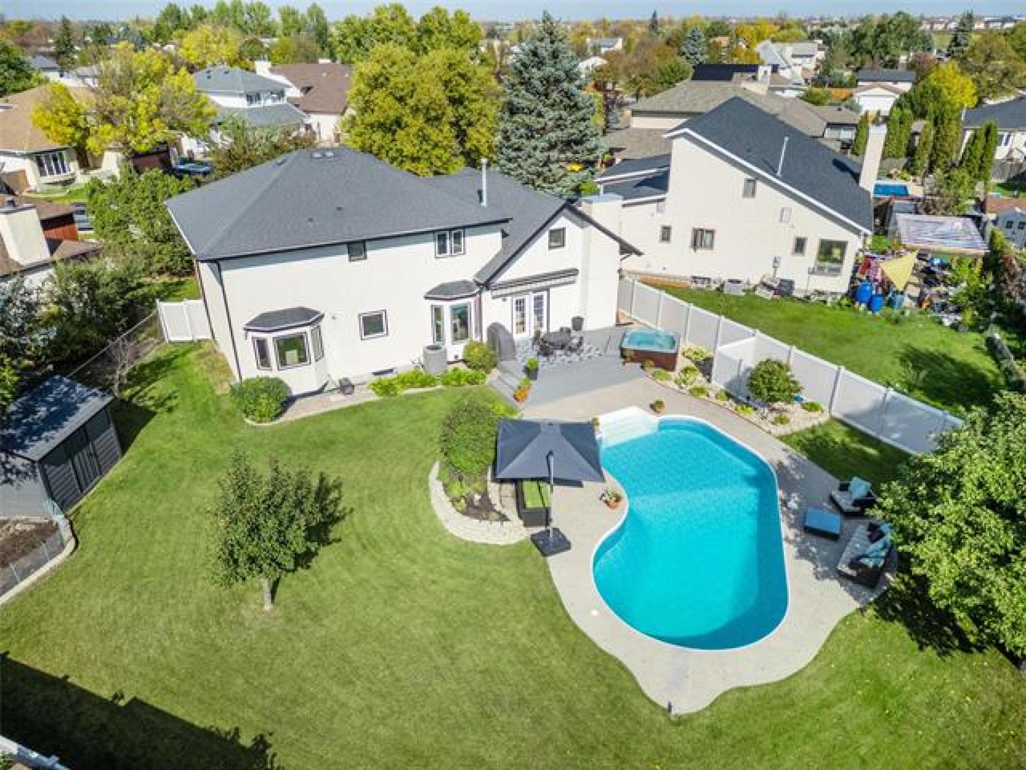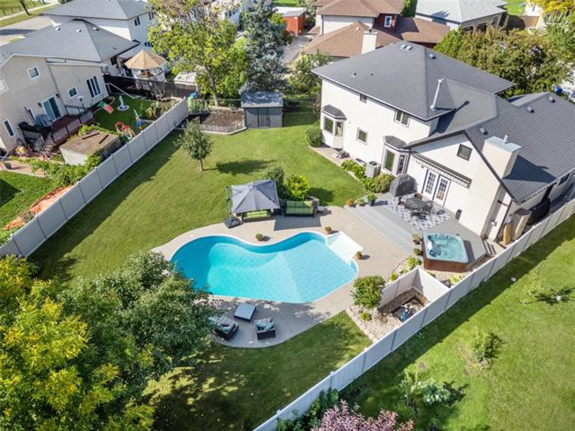SS 10/02, OH 10/04 & 10/05 2-4pm, Offers 10/08. Discover this immaculately upgraded 2,168 sq ft two-storey in desirable Old Kildonan. Featuring 4 beds & 3.5 baths, this home blends timeless luxury with modern design. Heated ceramic floors welcome you in the foyer, kitchen & laundry. The chef’s kitchen boasts quartz counters, a generous amount of grey maple cabinetry & stainless appl. (2020). Formal dining with built in buffet & quartz counter top, sun-filled living room & east-facing family room with garden doors lead to a pie-shaped PVC fenced yard. The upper level offers glass/stainless railing system, 4 spacious bedrooms including spa-inspired main bath & primary ensuite both with heated floors, the ensuite also features a towel warmer & rain shower head. The fully finished lower level includes a newly updated chevron floor, electric fireplace, kitchenette & full bath. A utility room & 200 amp service complete this space. Triple pane windows, a dble att insul & drywall garage with epoxy floor, & custom doors complete this exceptional property. A composite deck with Hot tub, 20’x40’ inground pool & stamped concrete, garden shed make this an amazing outdoor entertainment space. Measures +/- Jogs.