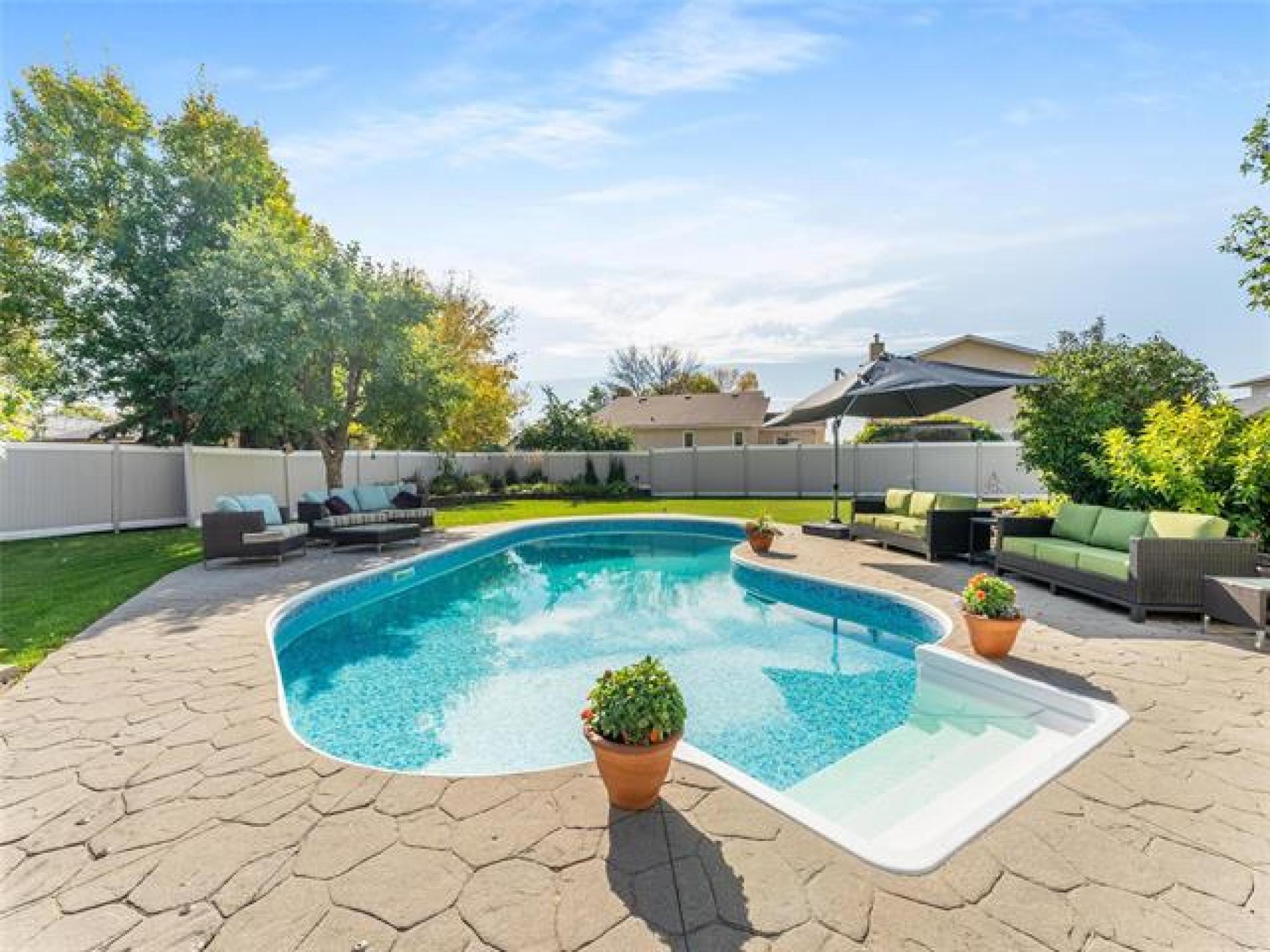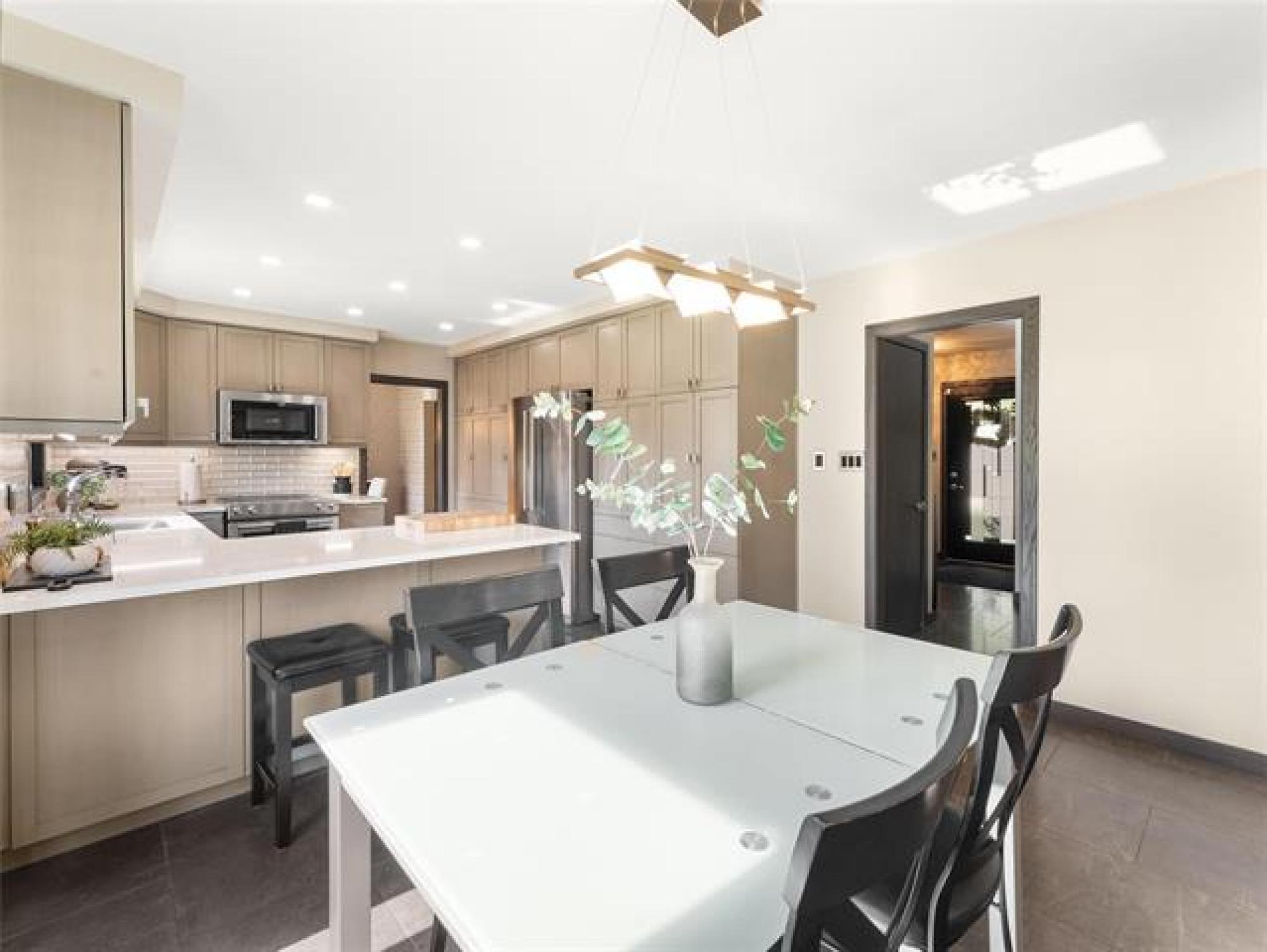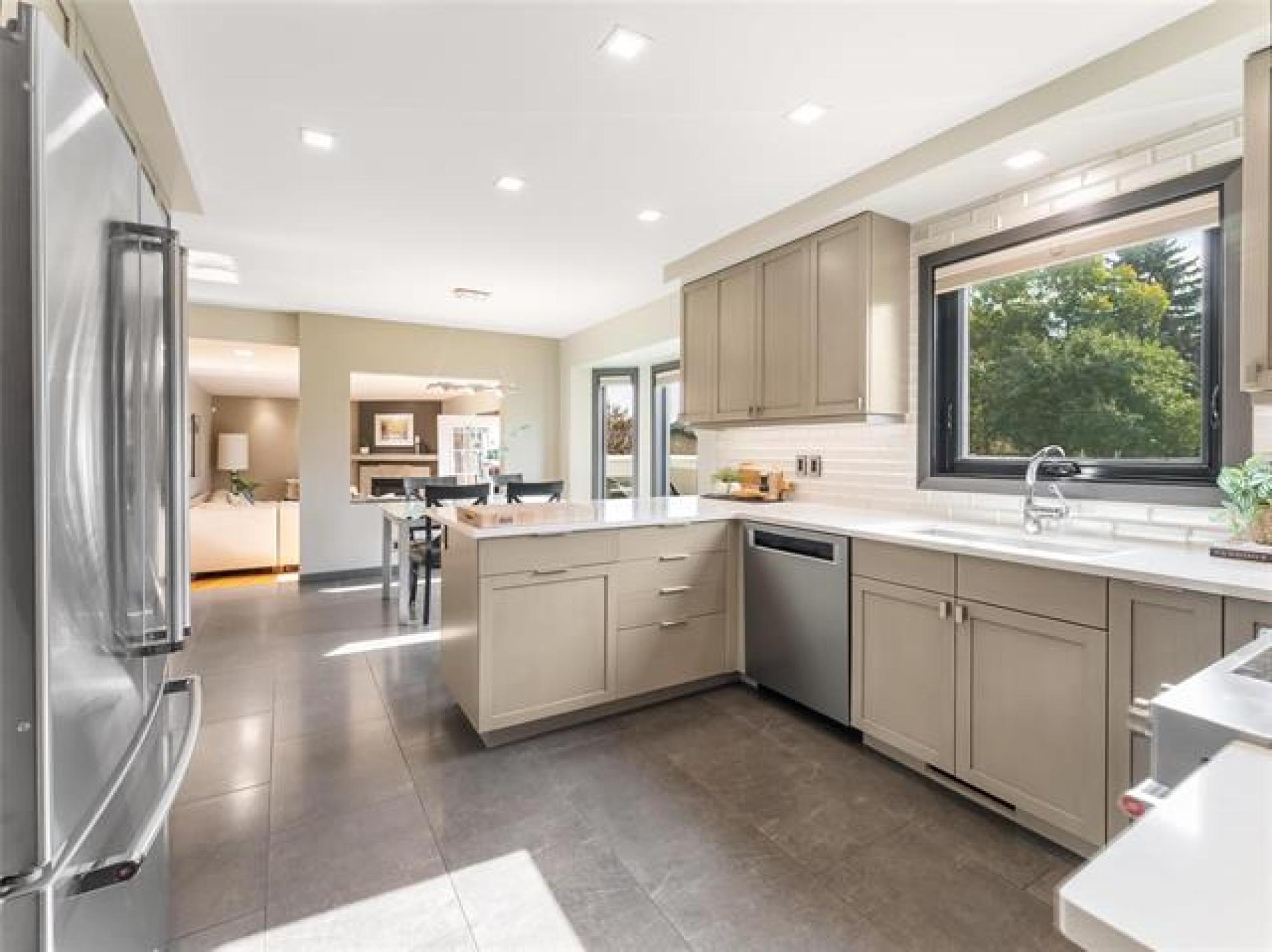 SS 10/02, OH 10/04 & 10/05 2-4pm, Offers 10/08. Discover this immaculately upgraded 2,168 sq ft two-storey in desirable Old Kildonan. Featuring 4 beds & 3.5 baths, this home blends timeless luxury with modern design. Heated ceramic floors welcome you in the foyer, kitchen & laundry. The chef’s kitchen boasts quartz counters, a generous amount of grey maple cabinetry & stainless appl. (2020). Formal dining with built in buffet & quartz counter top, sun-filled living room & east-facing family room with garden doors lead to a pie-shaped PVC fenced yard. The upper level offers glass/stainless railing system, 4 spacious bedrooms including spa-inspired main bath & primary ensuite both with heated floors, the ensuite also features a towel warmer & rain shower head. The fully finished lower level includes a newly updated chevron floor, electric fireplace, kitchenette & full bath. A utility room & 200 amp service complete this space. Triple pane windows, a dble att insul & drywall garage with epoxy floor, & custom doors complete this exceptional property. A composite deck with Hot tub, 20’x40’ inground pool & stamped concrete, garden shed make this an amazing outdoor entertainment space. Measures +/- Jogs.