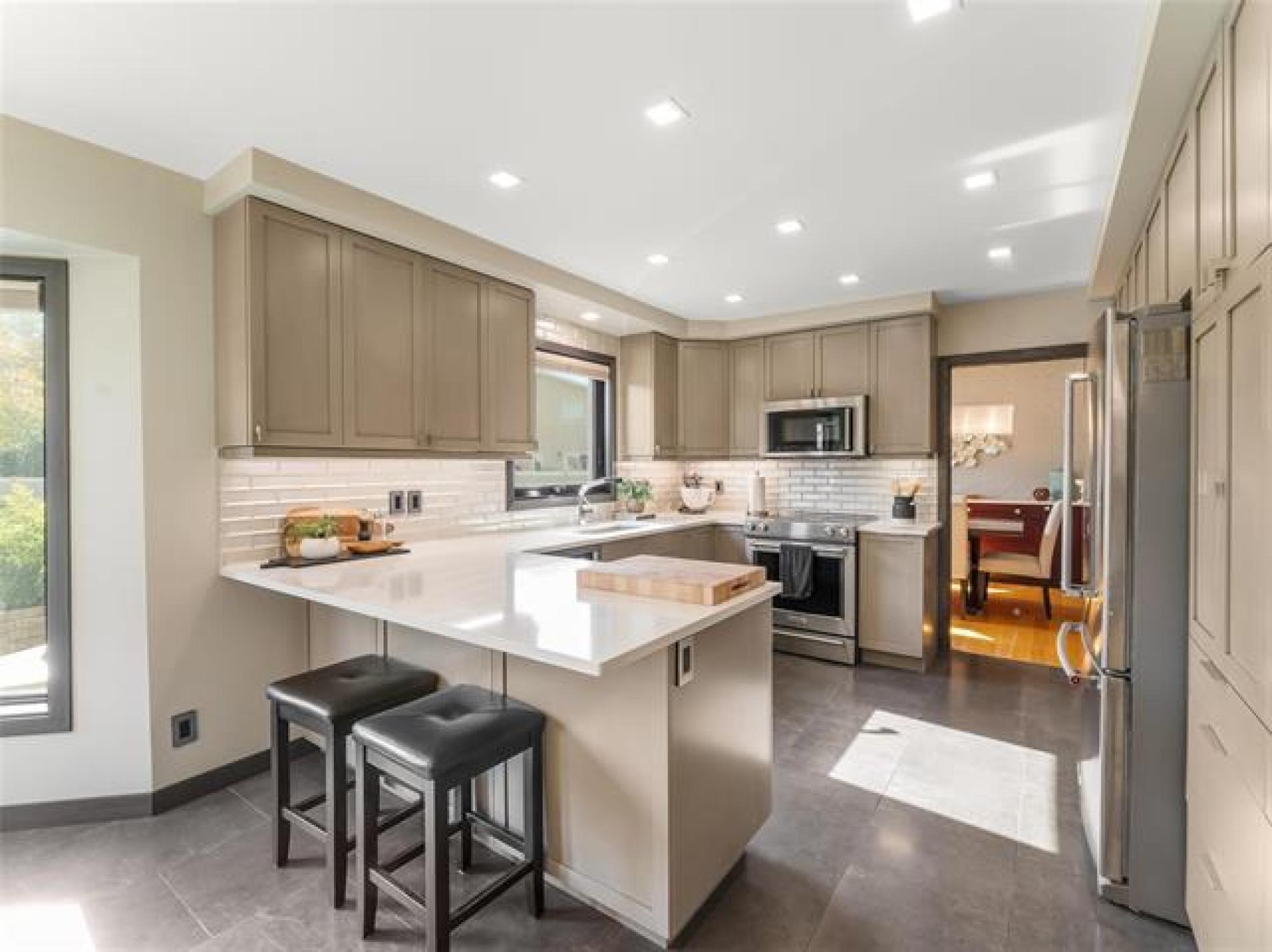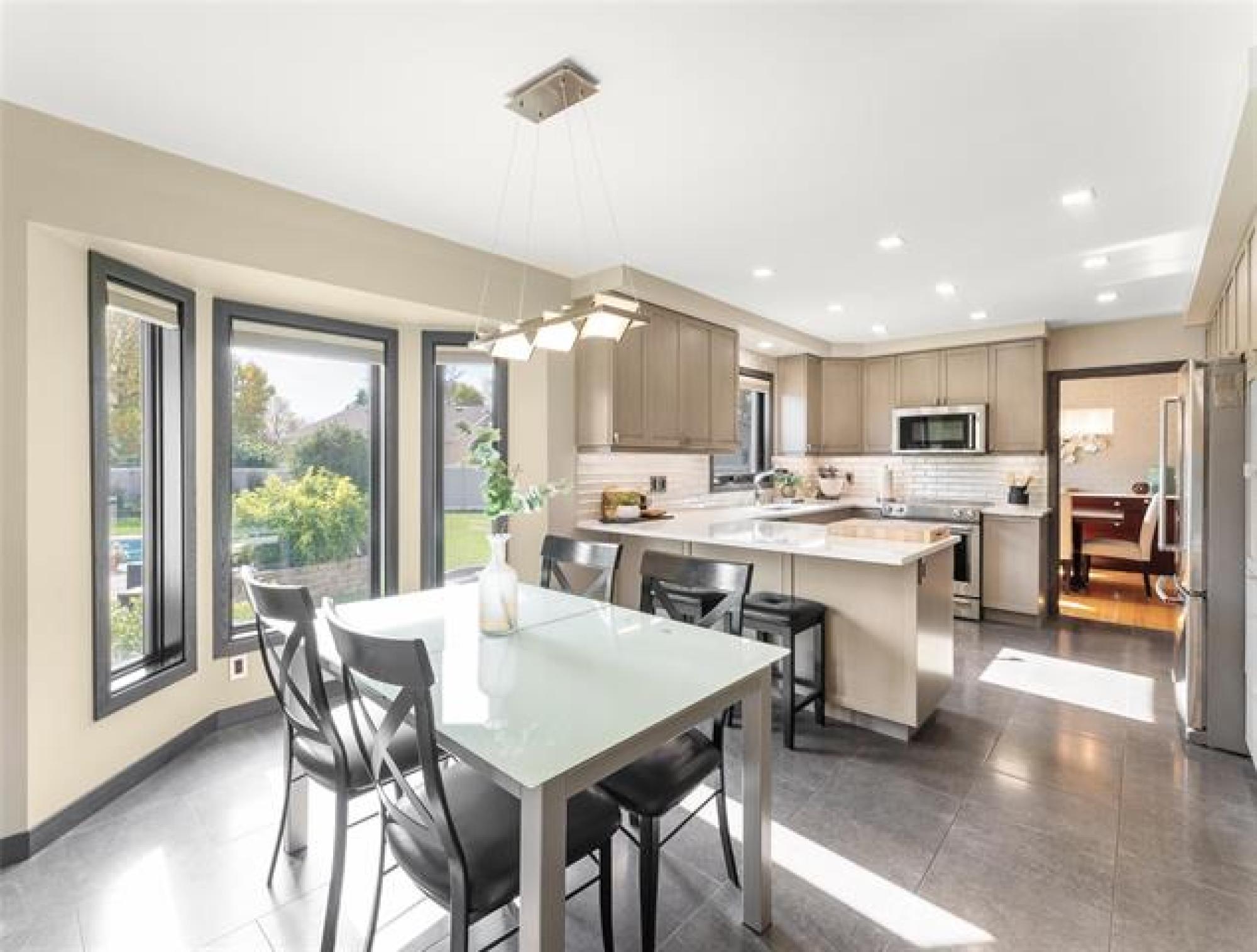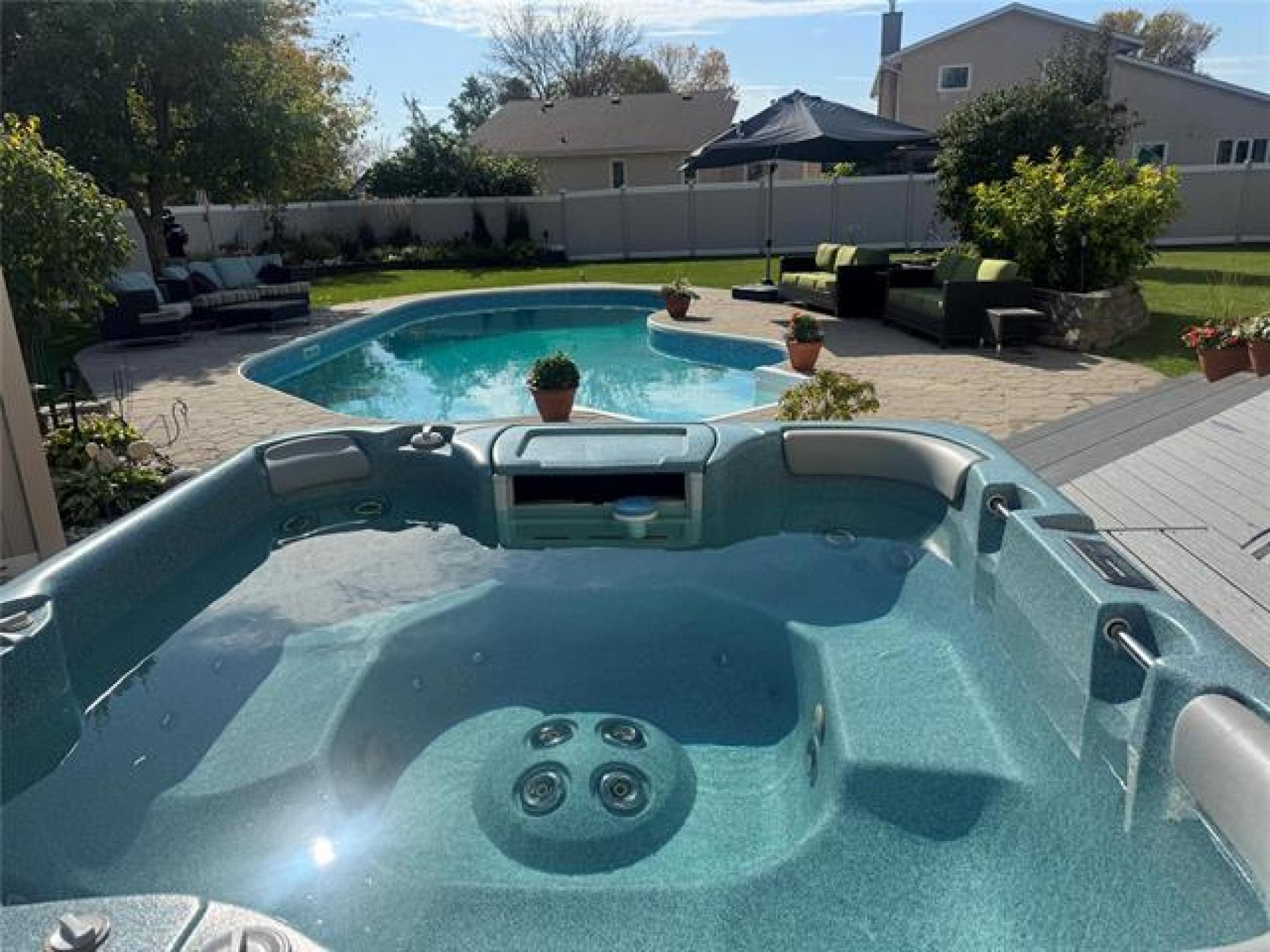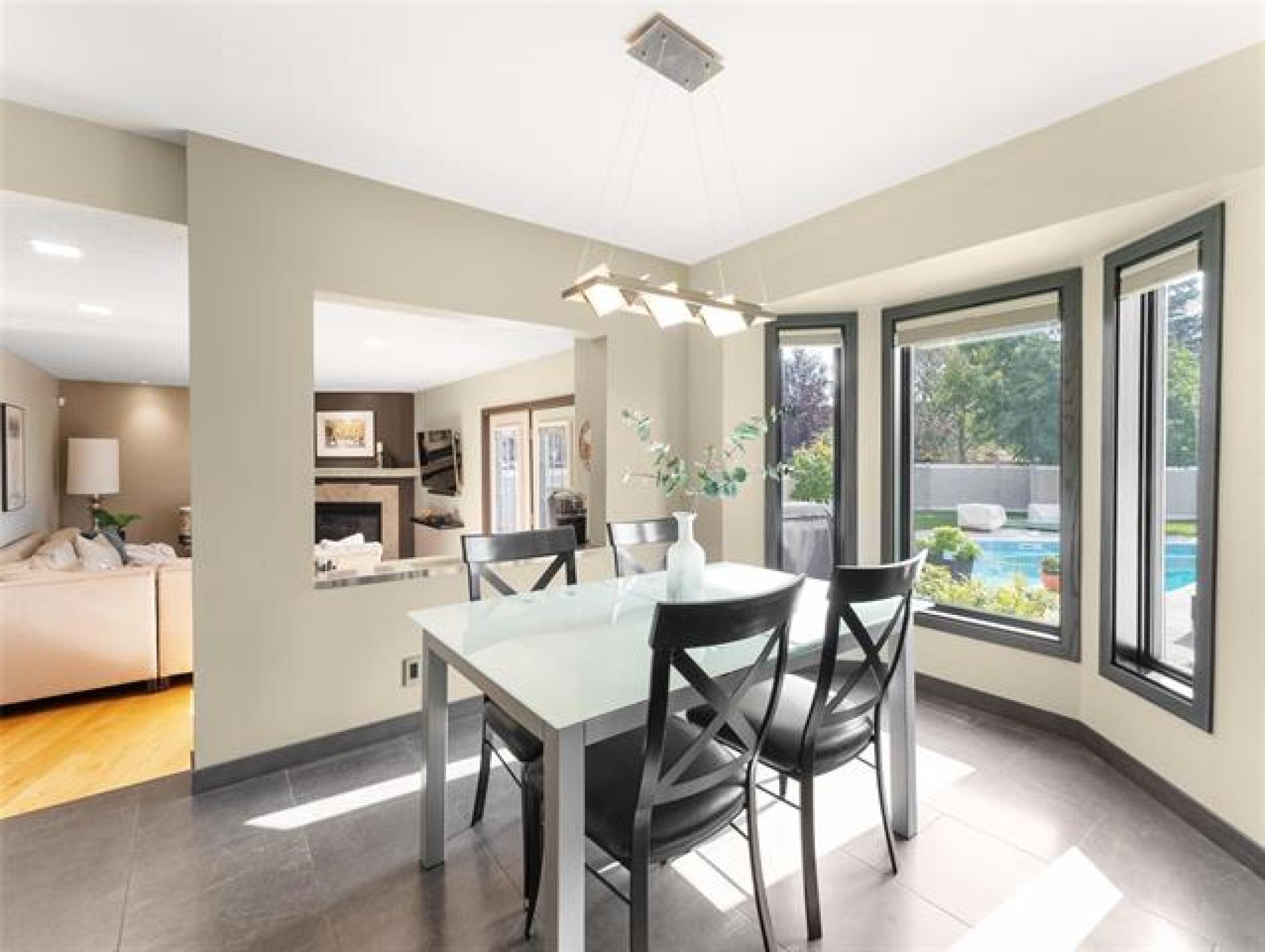 SS 10/02, OH 10/04 & 10/05 2-4pm, Offers 10/08. Discover this immaculately upgraded 2,168 sq ft two-storey in desirable Old Kildonan. Featuring 4 beds & 3.5 baths, this home blends timeless luxury with modern design. Heated ceramic floors welcome you in the foyer, kitchen & laundry. The chef’s kitchen boasts quartz counters, a generous amount of grey maple cabinetry & stainless appl. (2020). Formal dining with built in buffet & quartz counter top, sun-filled living room & east-facing family room with garden doors lead to a pie-shaped PVC fenced yard. The upper level offers glass/stainless railing system, 4 spacious bedrooms including spa-inspired main bath & primary ensuite both with heated floors, the ensuite also features a towel warmer & rain shower head. The fully finished lower level includes a newly updated chevron floor, electric fireplace, kitchenette & full bath. A utility room & 200 amp service complete this space. Triple pane windows, a dble att insul & drywall garage with epoxy floor, & custom doors complete this exceptional property. A composite deck with Hot tub, 20’x40’ inground pool & stamped concrete, garden shed make this an amazing outdoor entertainment space. Measures +/- Jogs.