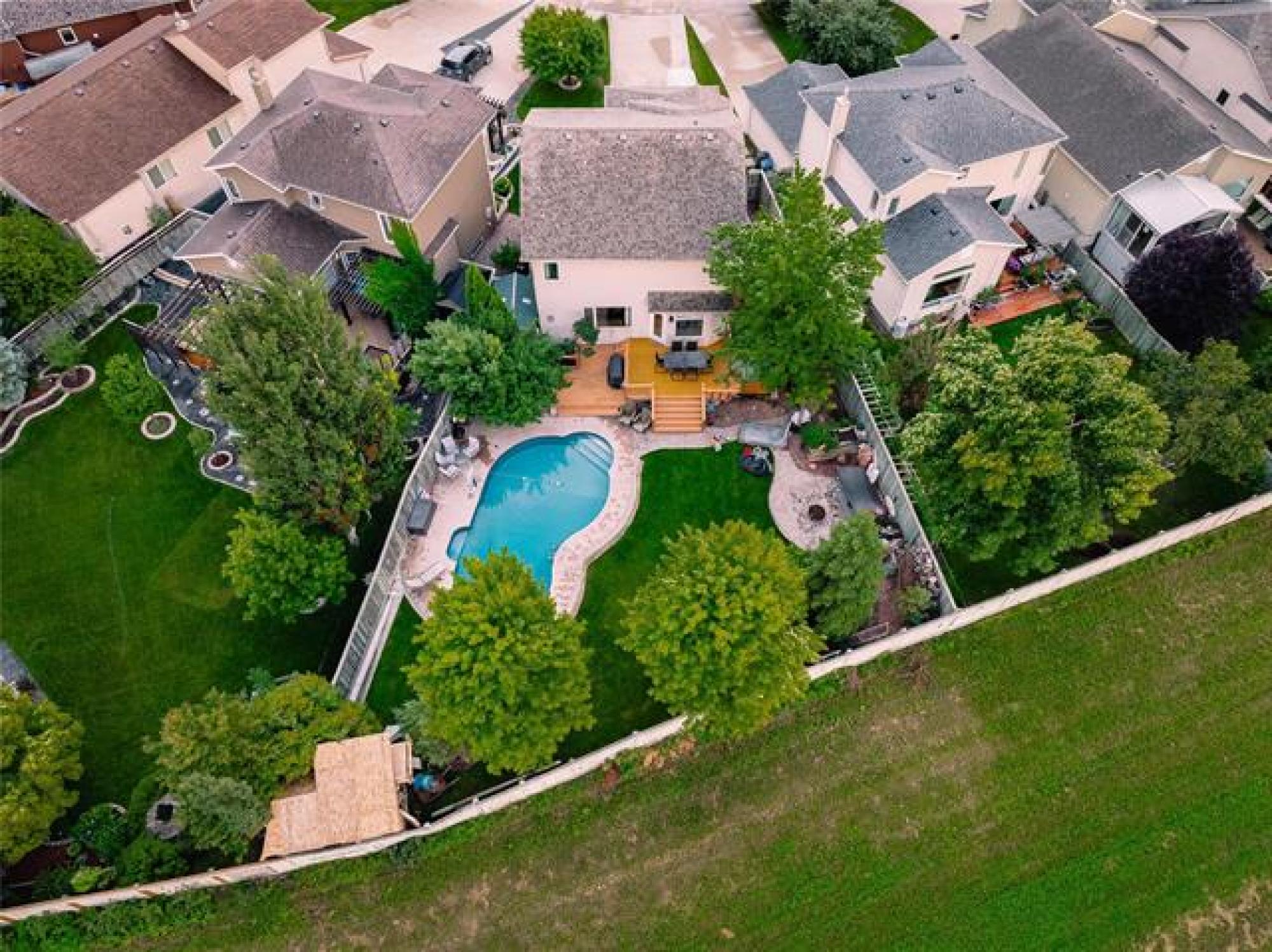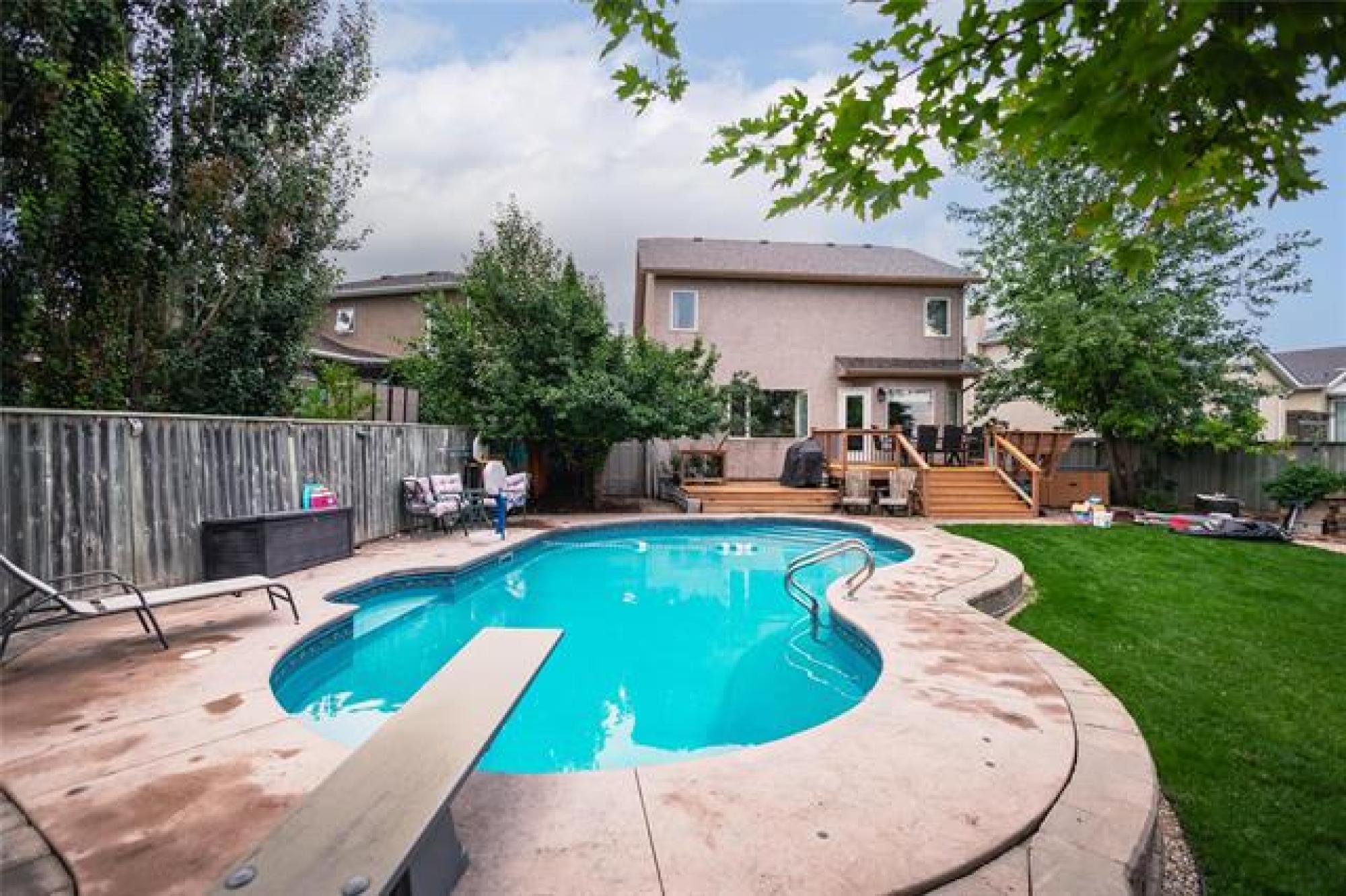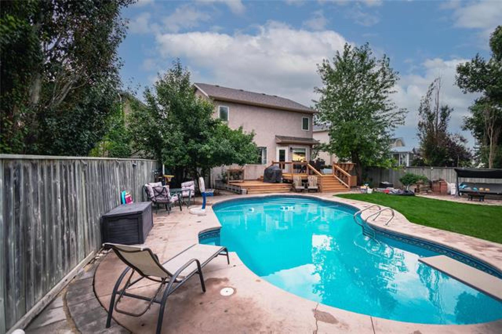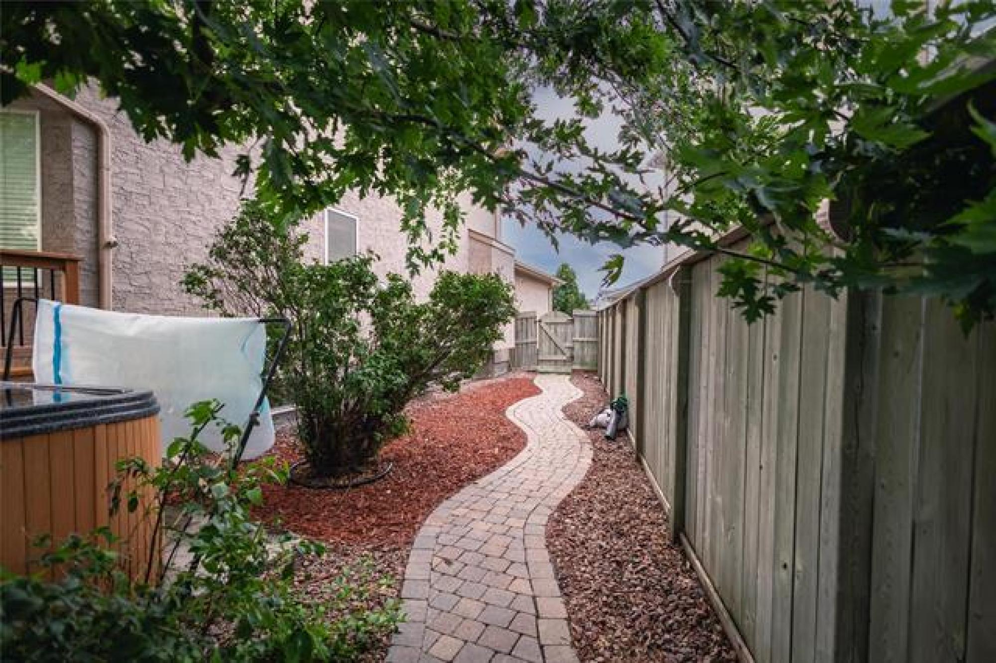 Make The Discovery!! This well located 4 bedroom, 3 bathroom family home with resort-like west facing private yard with in-ground pool, hot tub, backing green-space on a huge pie lot is sure to impress! Enter the cozy living room and dining room, large eat-in island kitchen with oak cabinets, tile back-splash and garden door to deck. Family room with gas fireplace, 2pc bath and laundry on main level. 4 bedrooms up, full bath and primary bedroom with 3pc en-suite. Fenced yard with 2 tier deck, Barkman patio and walkways, 2 sheds, in-ground pool 2018, hot tub, all pool equipment, stamped concrete and more! C/air, newer hi-eff furnace, shingles, hot water tank and more! Make it yours!