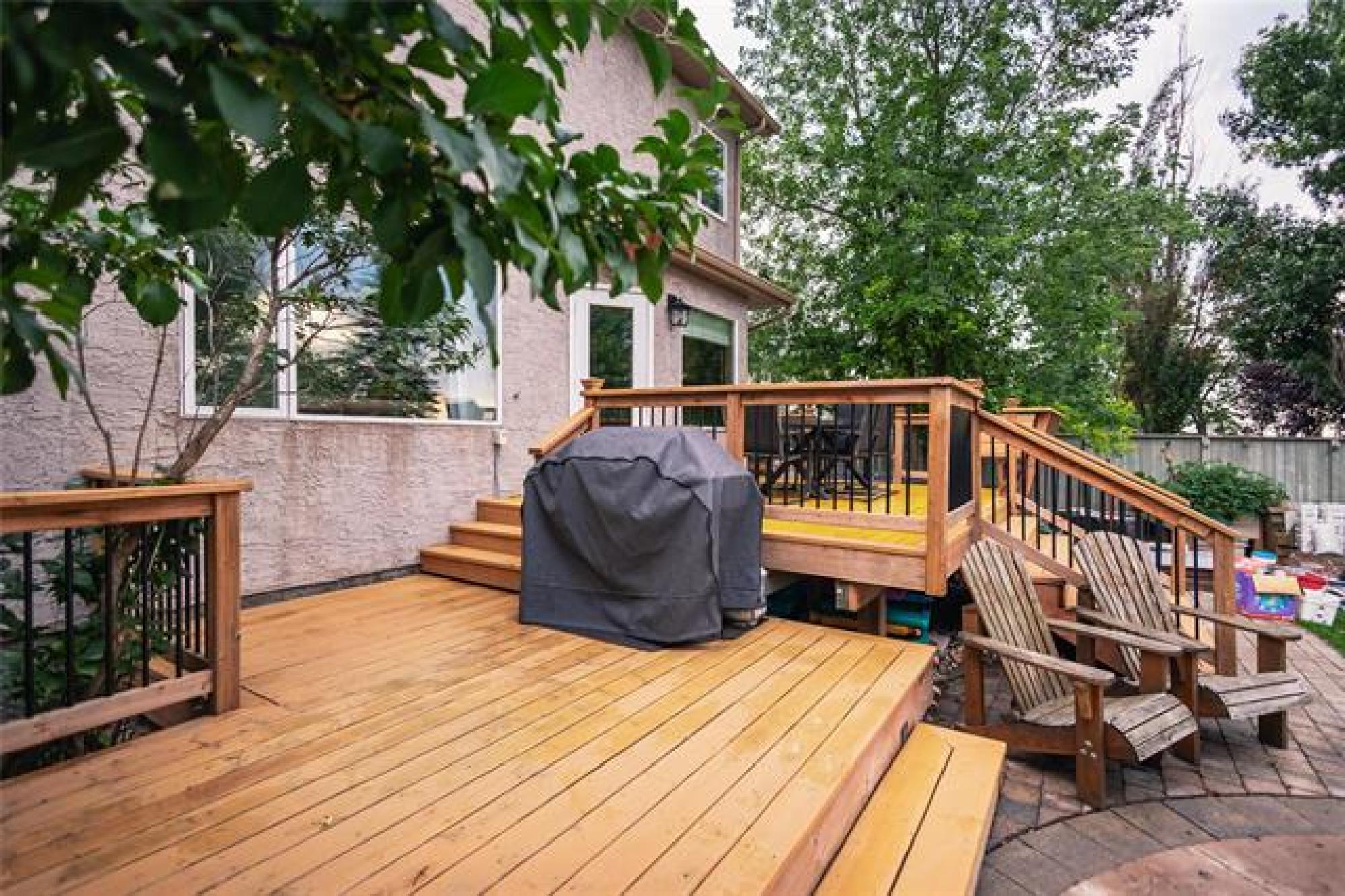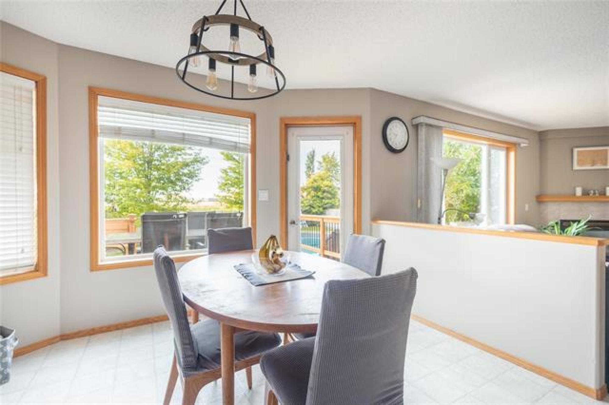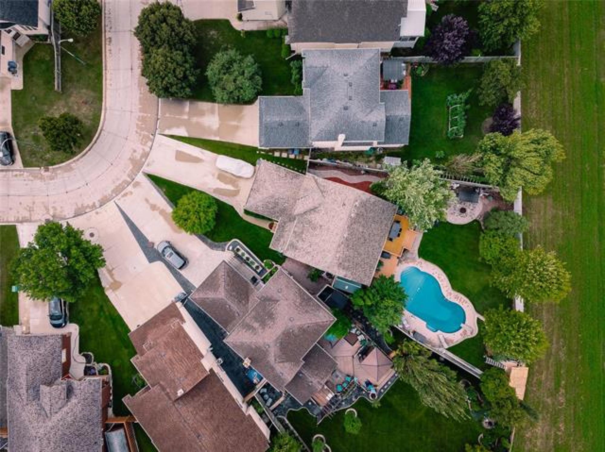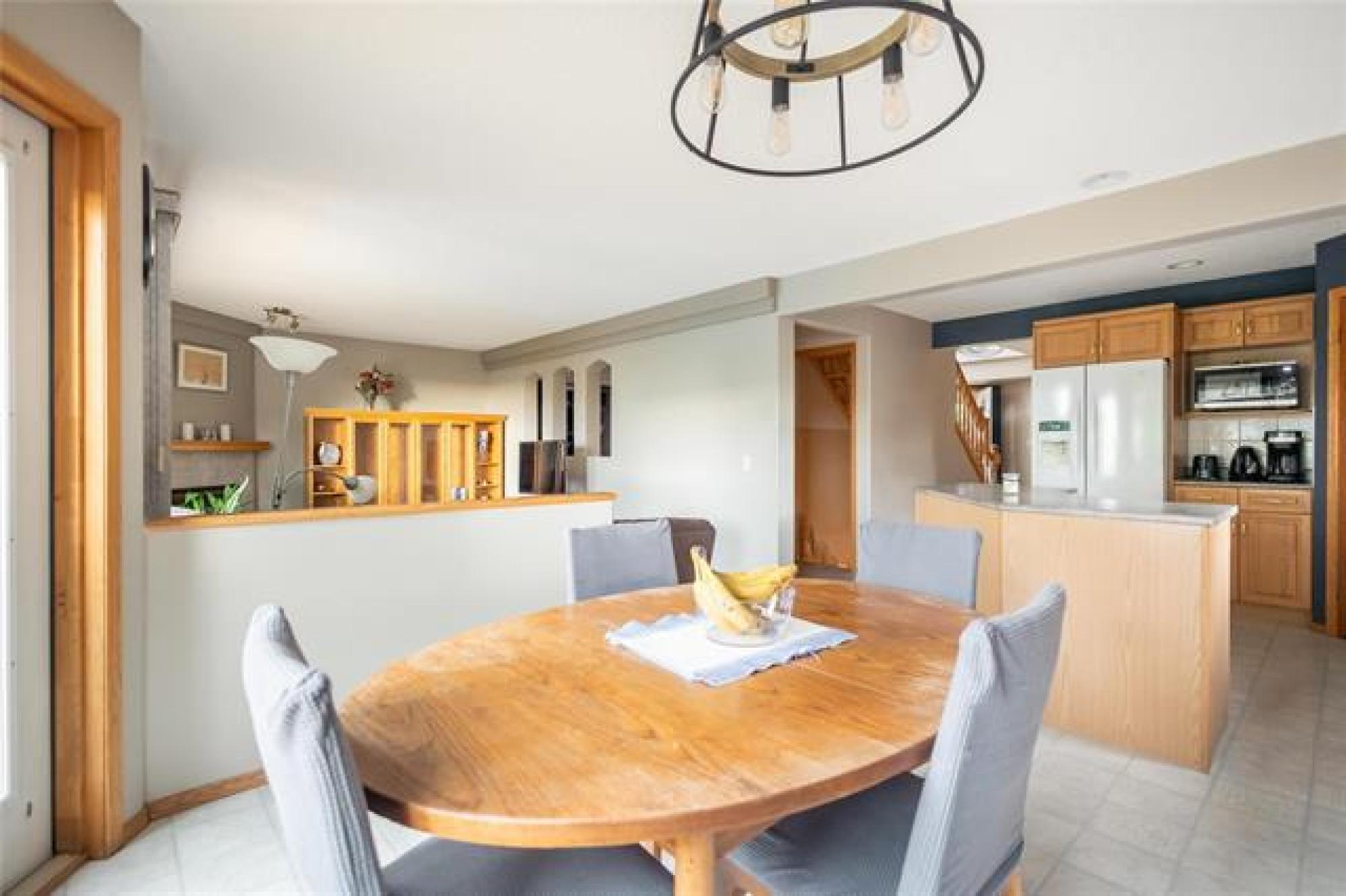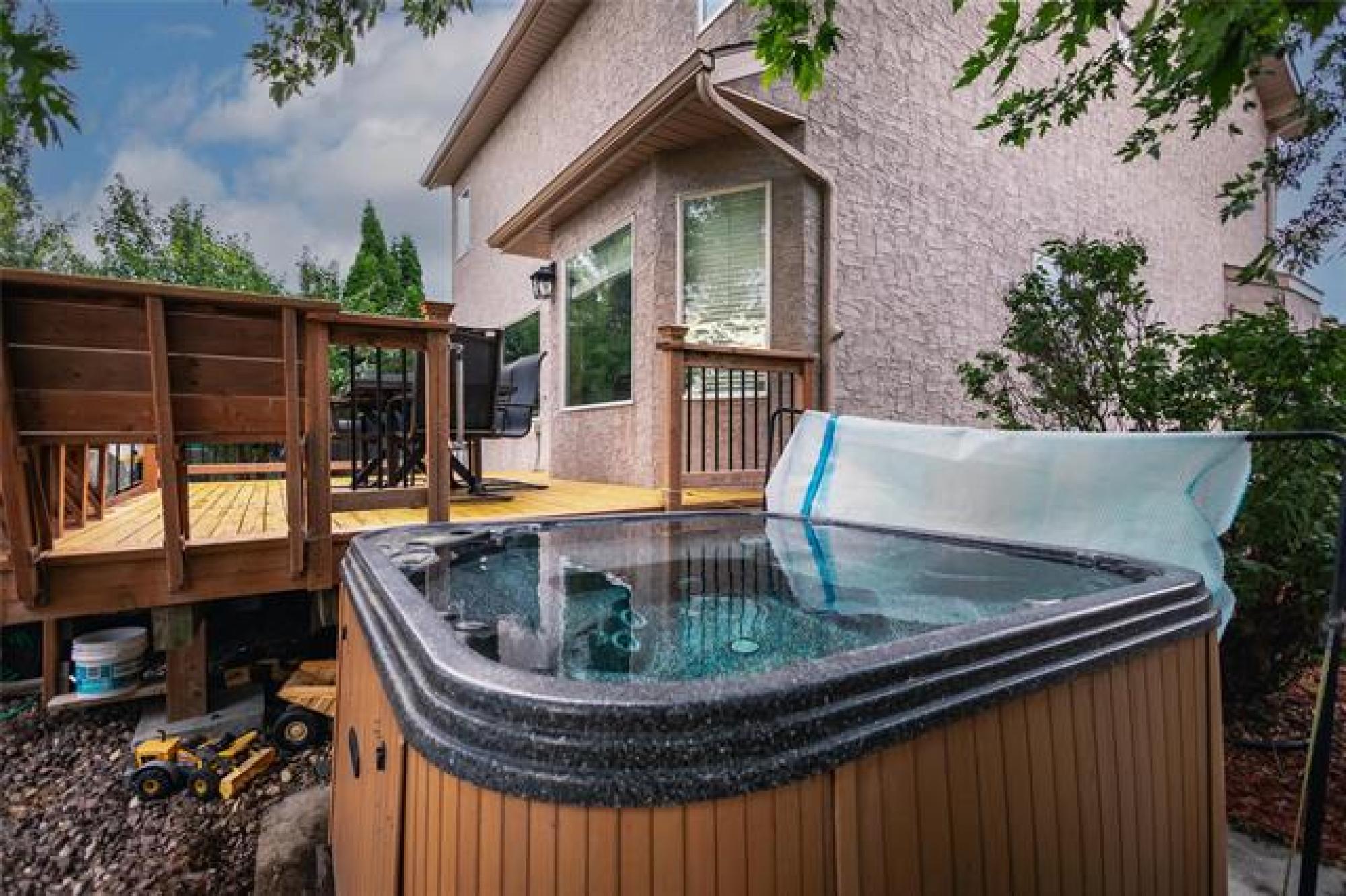 Make The Discovery!! This well located 4 bedroom, 3 bathroom family home with resort-like west facing private yard with in-ground pool, hot tub, backing green-space on a huge pie lot is sure to impress! Enter the cozy living room and dining room, large eat-in island kitchen with oak cabinets, tile back-splash and garden door to deck. Family room with gas fireplace, 2pc bath and laundry on main level. 4 bedrooms up, full bath and primary bedroom with 3pc en-suite. Fenced yard with 2 tier deck, Barkman patio and walkways, 2 sheds, in-ground pool 2018, hot tub, all pool equipment, stamped concrete and more! C/air, newer hi-eff furnace, shingles, hot water tank and more! Make it yours!