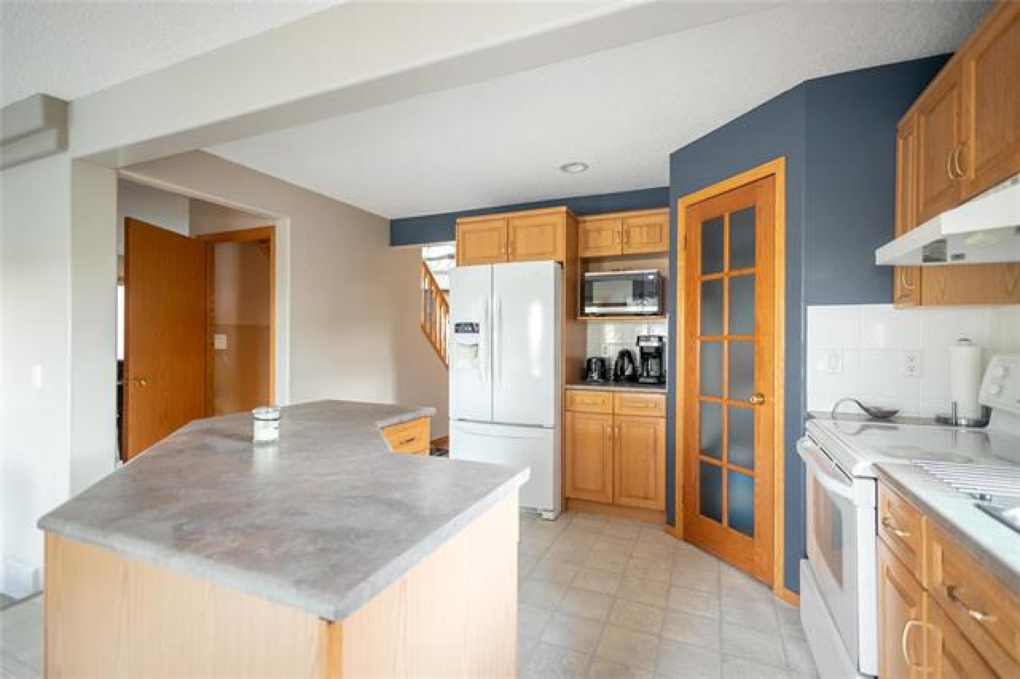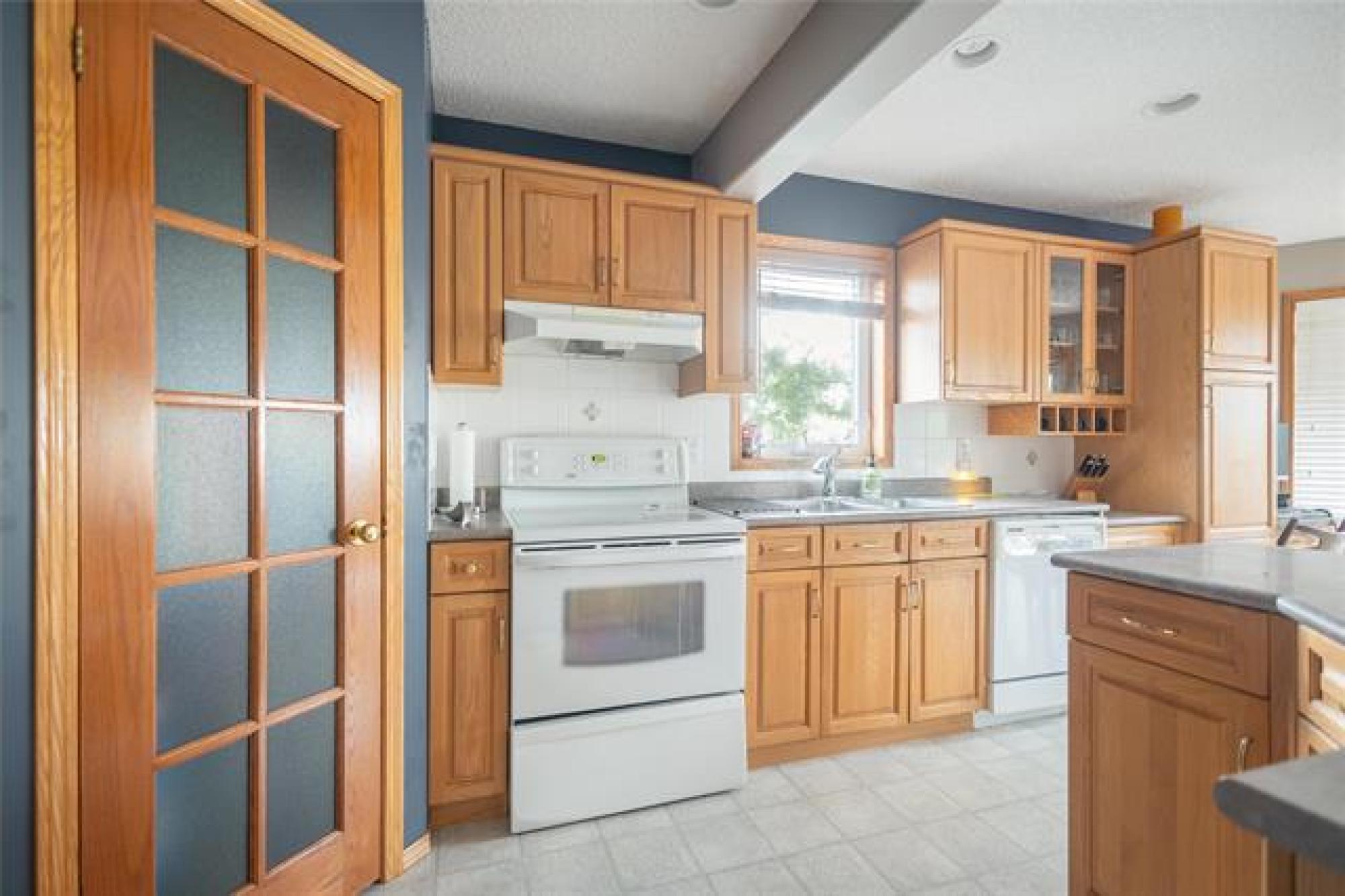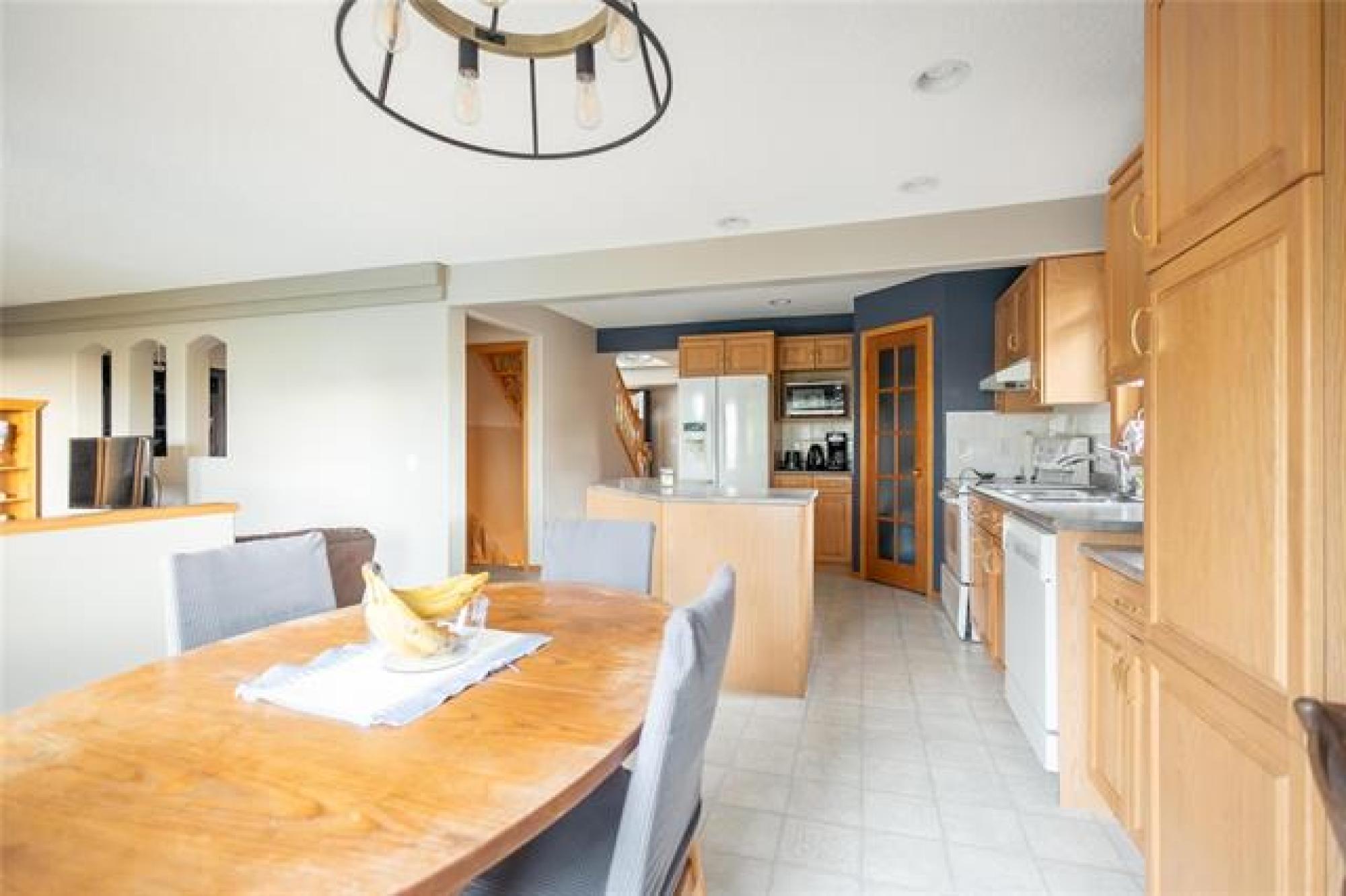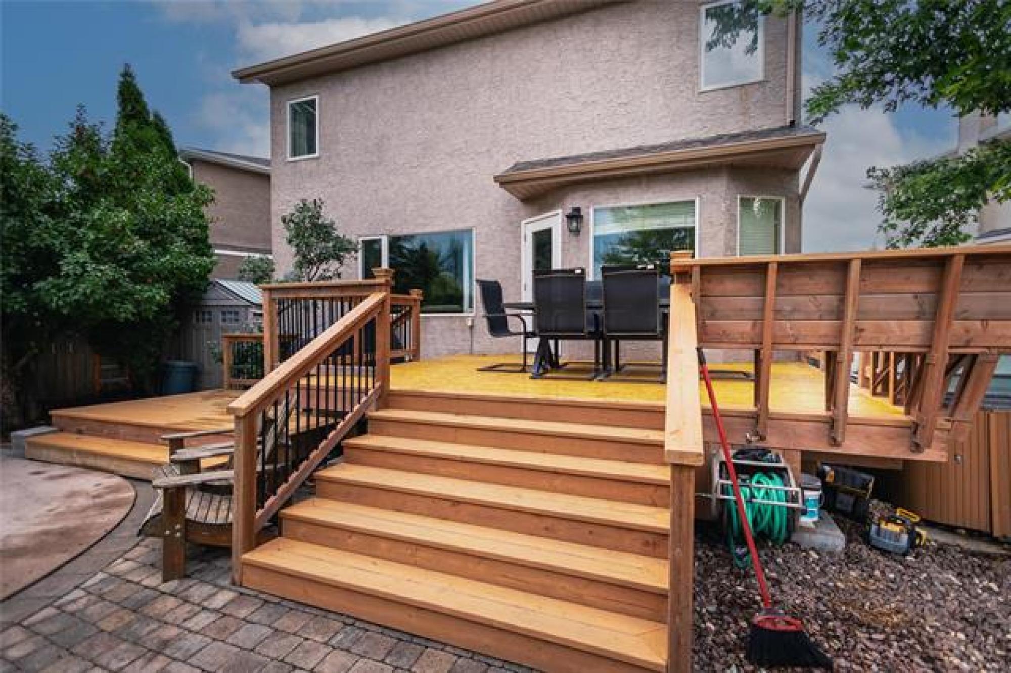 Make The Discovery!! This well located 4 bedroom, 3 bathroom family home with resort-like west facing private yard with in-ground pool, hot tub, backing green-space on a huge pie lot is sure to impress! Enter the cozy living room and dining room, large eat-in island kitchen with oak cabinets, tile back-splash and garden door to deck. Family room with gas fireplace, 2pc bath and laundry on main level. 4 bedrooms up, full bath and primary bedroom with 3pc en-suite. Fenced yard with 2 tier deck, Barkman patio and walkways, 2 sheds, in-ground pool 2018, hot tub, all pool equipment, stamped concrete and more! C/air, newer hi-eff furnace, shingles, hot water tank and more! Make it yours!