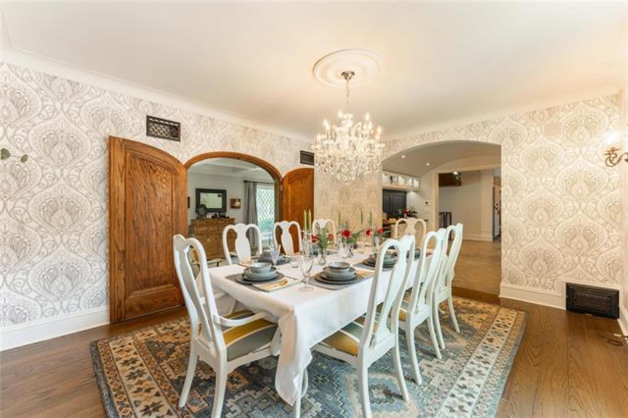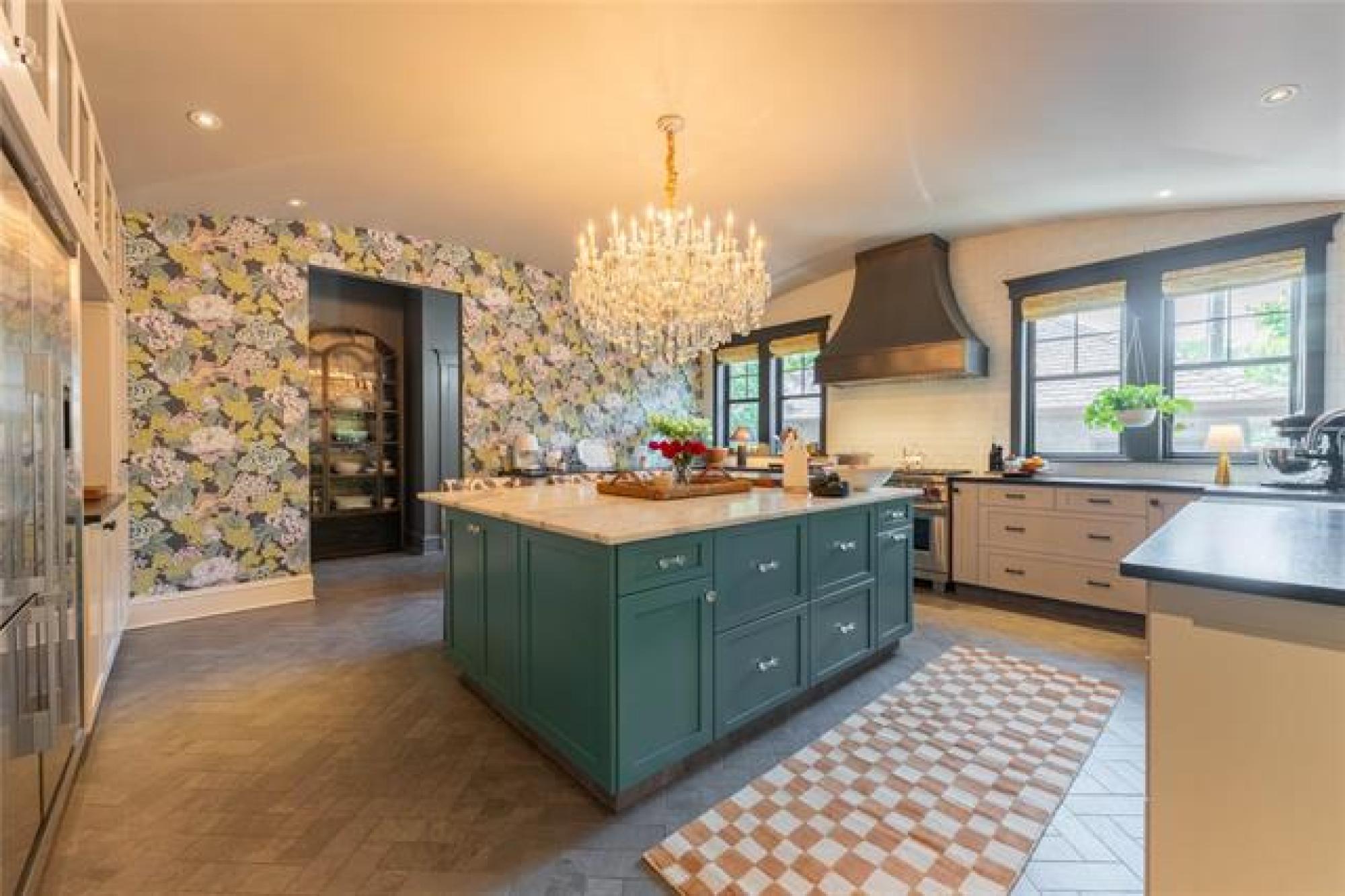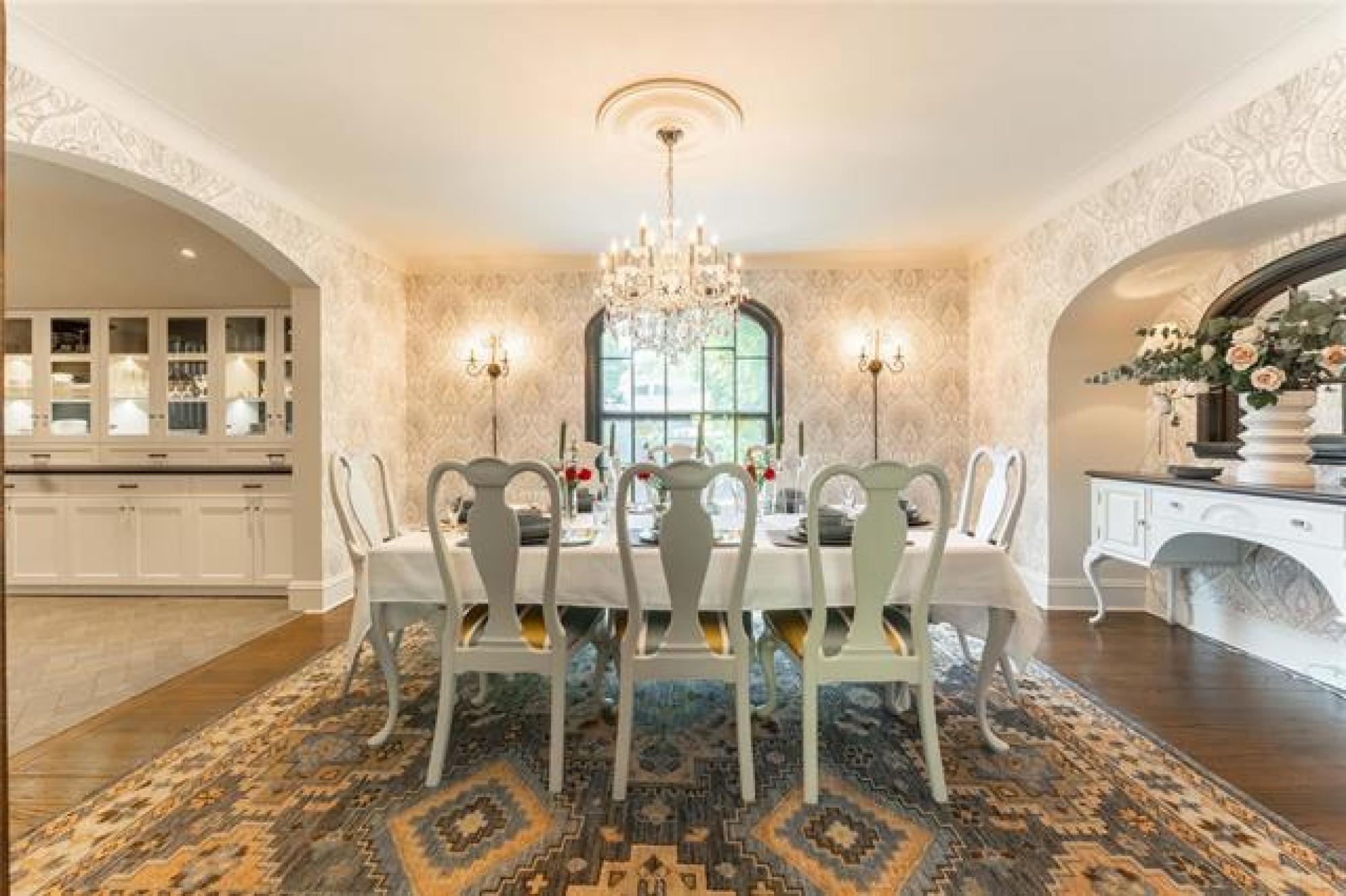 Step into timeless elegance with this classically luxurious North Tuxedo home. From the moment you enter the grand foyer, you will feel the warmth and character that sets this property apart. Stunning woodwork, leaded and stained glass windows, intricate wrought iron details, and beautiful fireplaces showcase the craftsmanship of a bygone era, now seamlessly blended with modern upgrades. The soaring, custom-detailed ceilings in the mezzanine family room create an awe-inspiring space, while the gourmet kitchen offers abundant cabinetry, generous counter space, and a bright eating area overlooking the backyard. The formal dining room features exquisite stained glass, adding a touch of artful charm. The expansive living room, anchored by an ornate fireplace, invites elegant gatherings. Outside, enjoy a beautifully landscaped yard, a screened sunroom, and an inviting patio for perfect evenings. A double detached garage completes this exceptional home, nestled in the heart of sought-after North Tuxedo. ALL MEASUREMENTS ARE +/- JOGS.