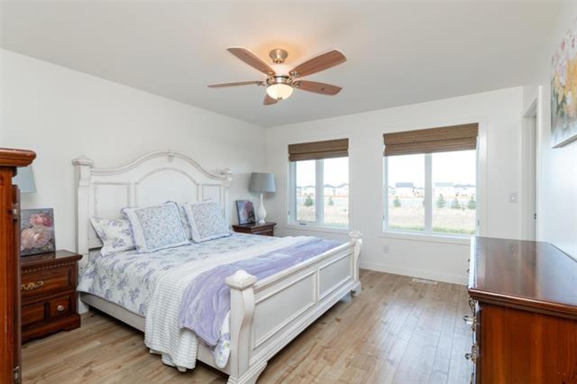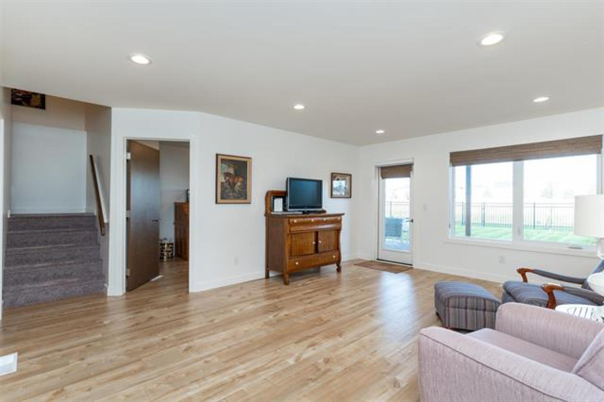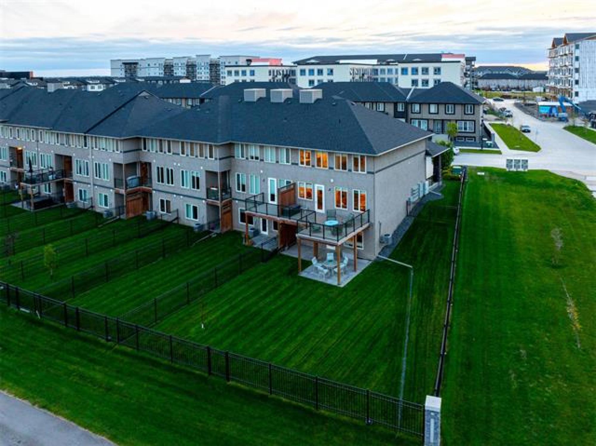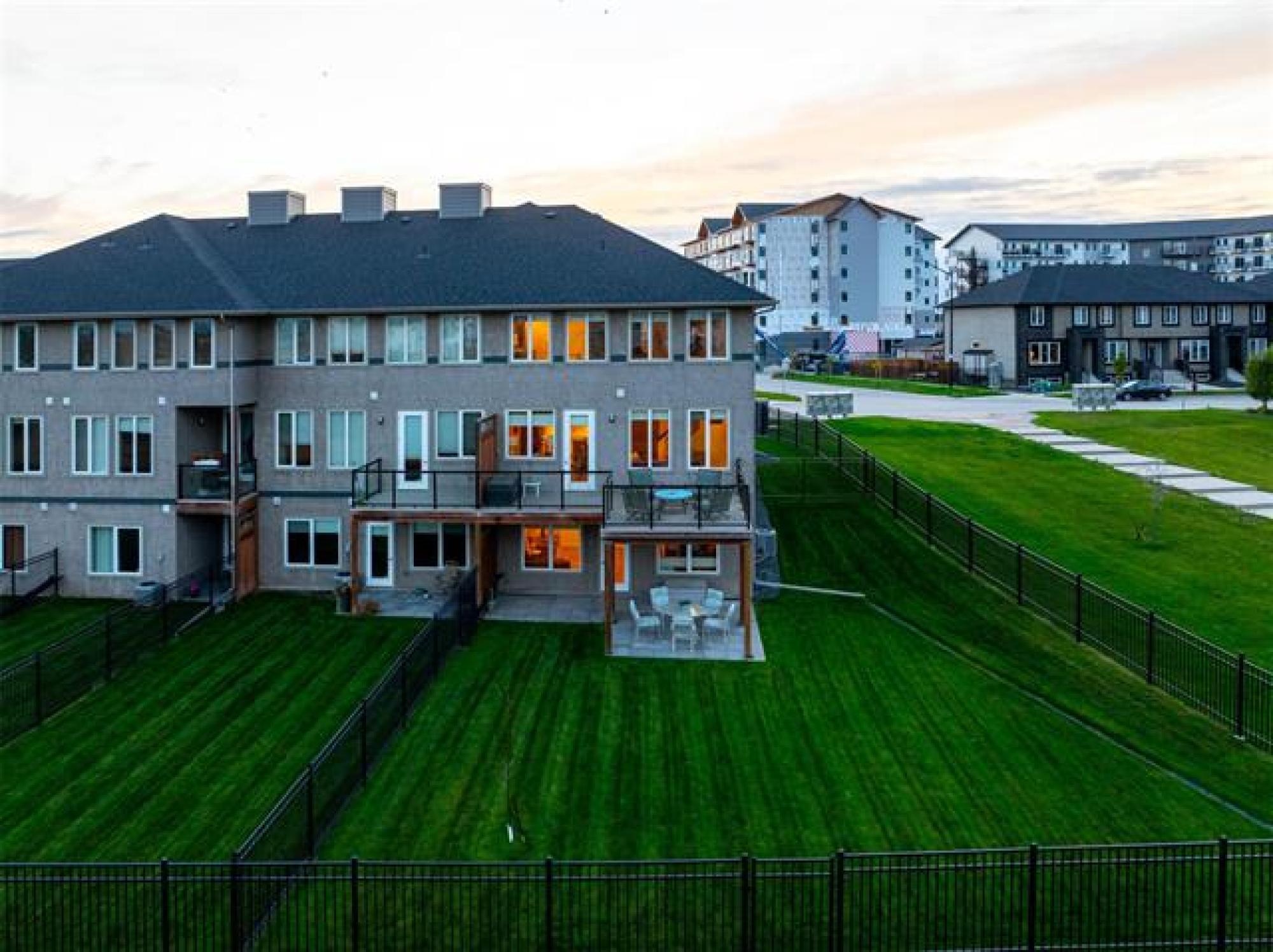 Offers as Received! Prime corner unit featuring a spacious backyard, walkout basement, double attached garage, and in mint condition. As you enter through the main entrance, you're greeted by a bright, modern design featuring an open-concept living room, kitchen, and dining area. Large windows invite an abundance of natural light. The eat-in kitchen features a breakfast island, an ideal spot to start your mornings with a cup of coffee. Quartz countertops and a ceramic backsplash add a touch of elegance to the space. The adjacent dining area offers easy access to the oversized balcony, perfect for outdoor entertaining. A two-piece bathroom completes the level. Head upstairs and find the spacious primary suite with its own four-piece private ensuite. Two additional bedrooms share a four-piece bathroom, perfect for family or guests. A convenient upper-level laundry area completes the upper level. Head down to the fully-finished basement, complete with a spacious rec room, bed, bath, and ample storage. From here, step out into the massive, fully fenced backyard, a true highlight of the home. This outdoor space offers endless possibilities with a large patio area and direct access to trails.