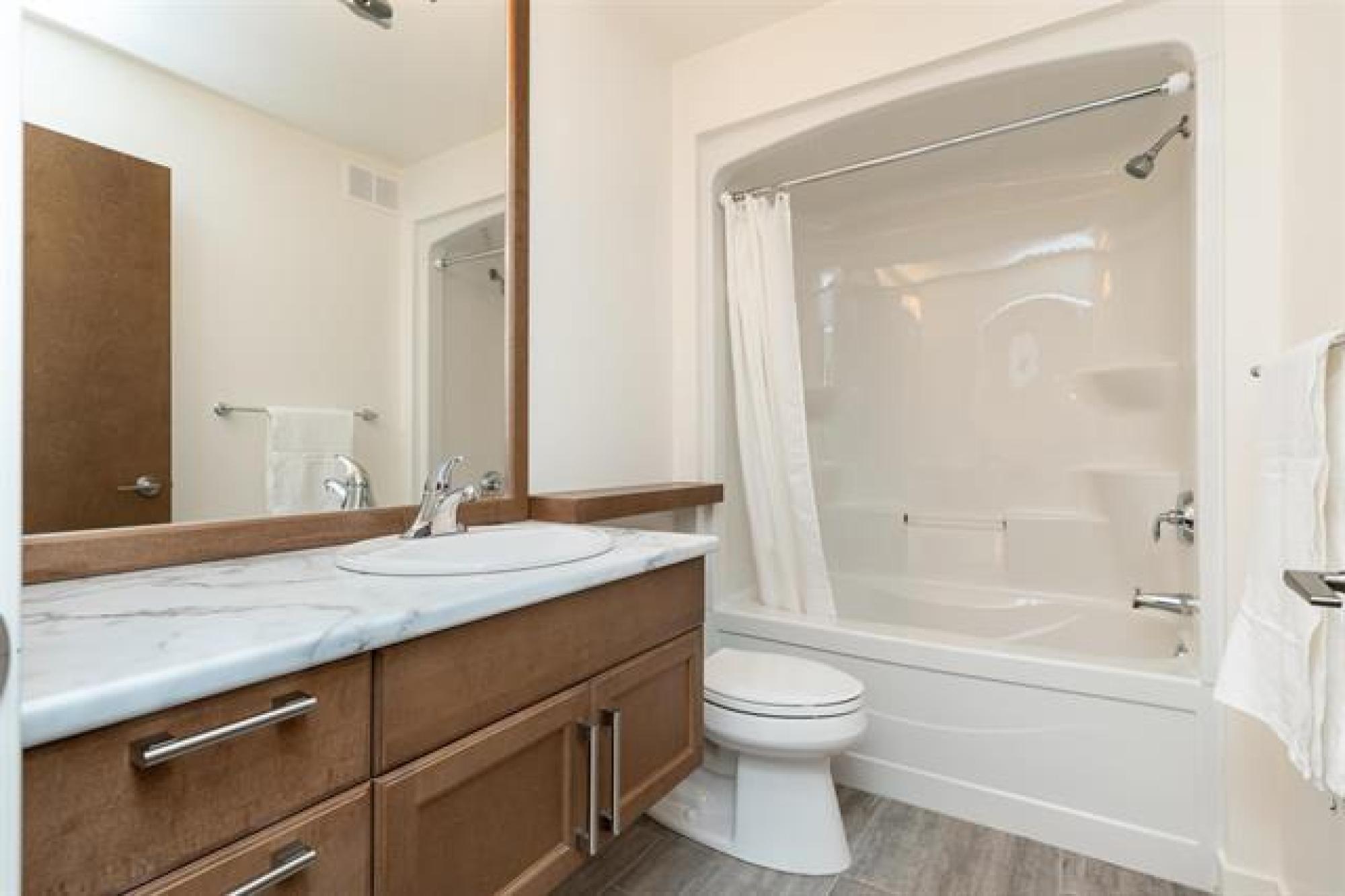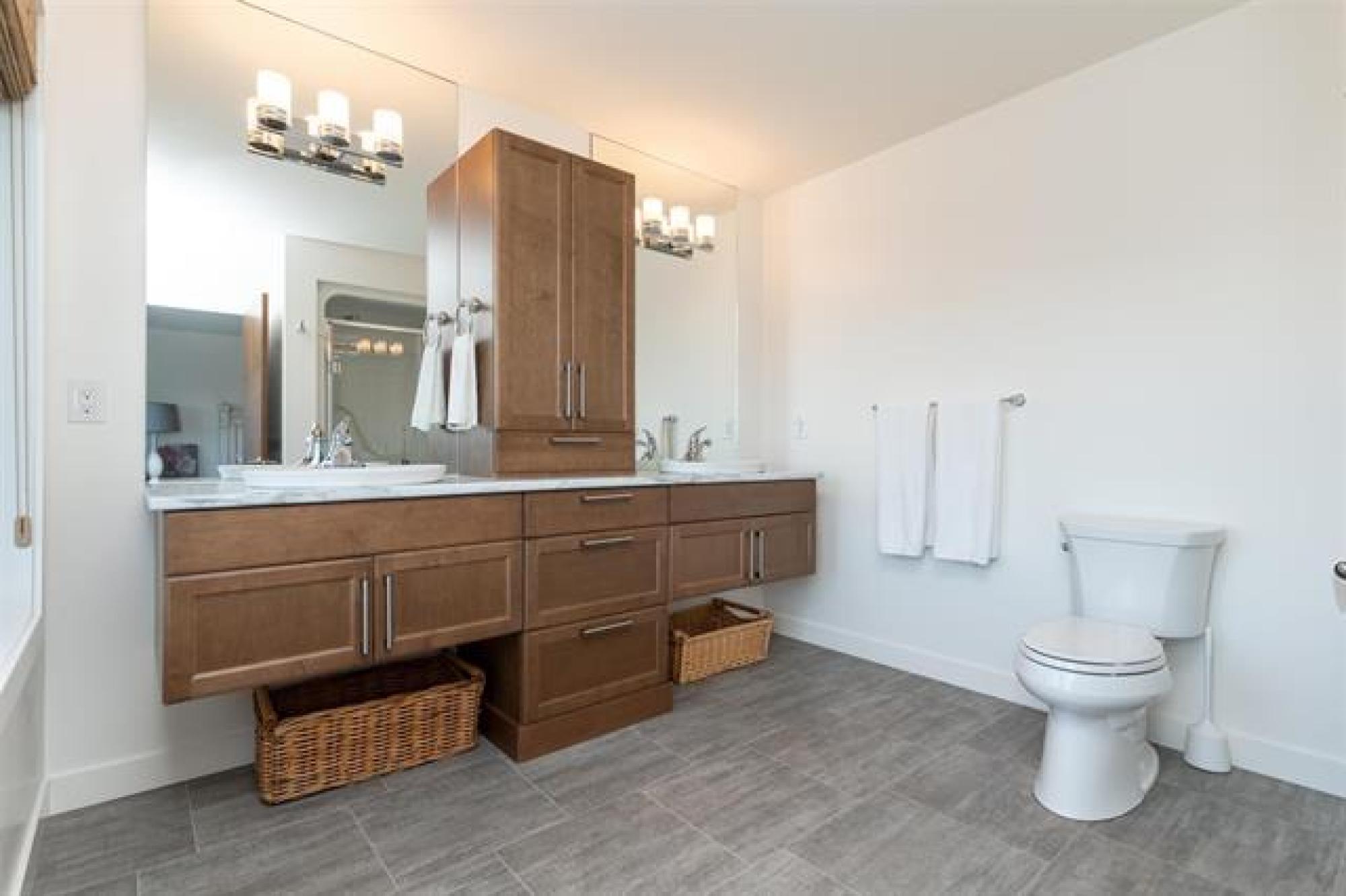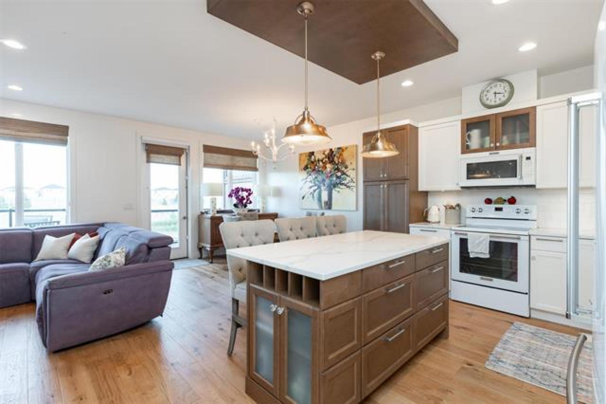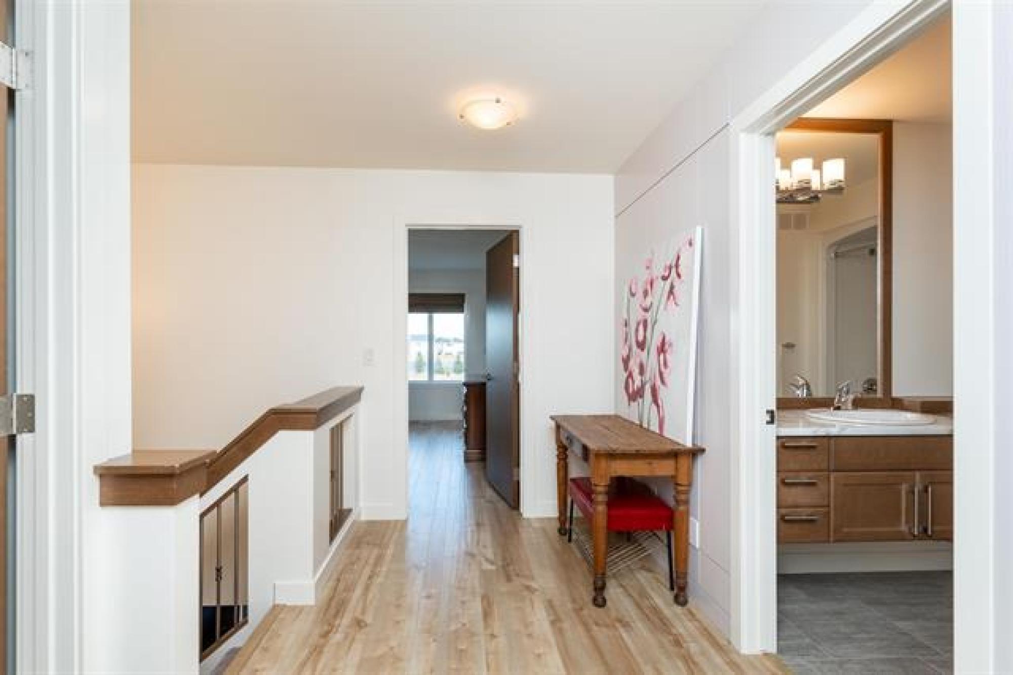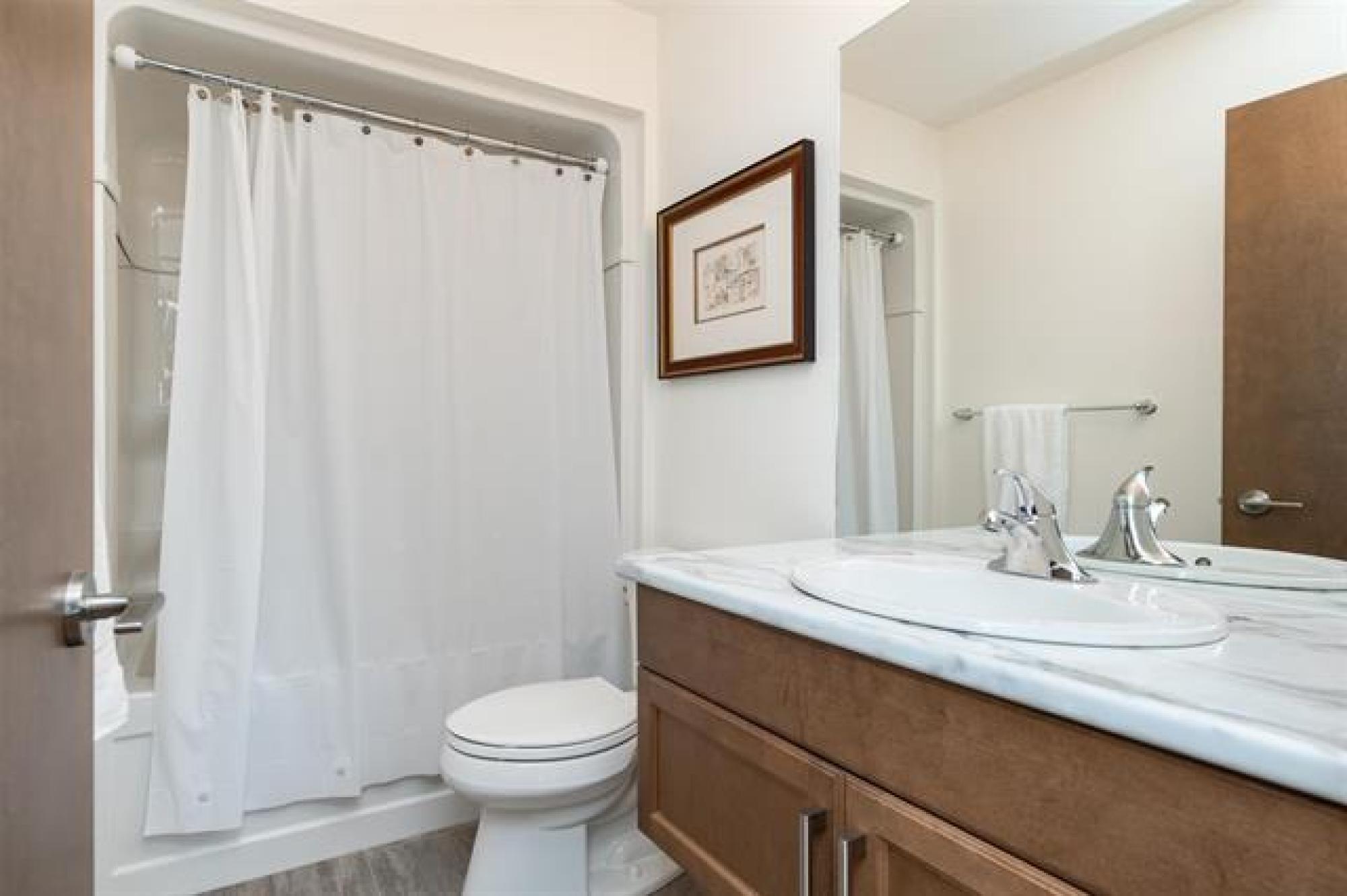 Offers as Received! Prime corner unit featuring a spacious backyard, walkout basement, double attached garage, and in mint condition. As you enter through the main entrance, you're greeted by a bright, modern design featuring an open-concept living room, kitchen, and dining area. Large windows invite an abundance of natural light. The eat-in kitchen features a breakfast island, an ideal spot to start your mornings with a cup of coffee. Quartz countertops and a ceramic backsplash add a touch of elegance to the space. The adjacent dining area offers easy access to the oversized balcony, perfect for outdoor entertaining. A two-piece bathroom completes the level. Head upstairs and find the spacious primary suite with its own four-piece private ensuite. Two additional bedrooms share a four-piece bathroom, perfect for family or guests. A convenient upper-level laundry area completes the upper level. Head down to the fully-finished basement, complete with a spacious rec room, bed, bath, and ample storage. From here, step out into the massive, fully fenced backyard, a true highlight of the home. This outdoor space offers endless possibilities with a large patio area and direct access to trails.