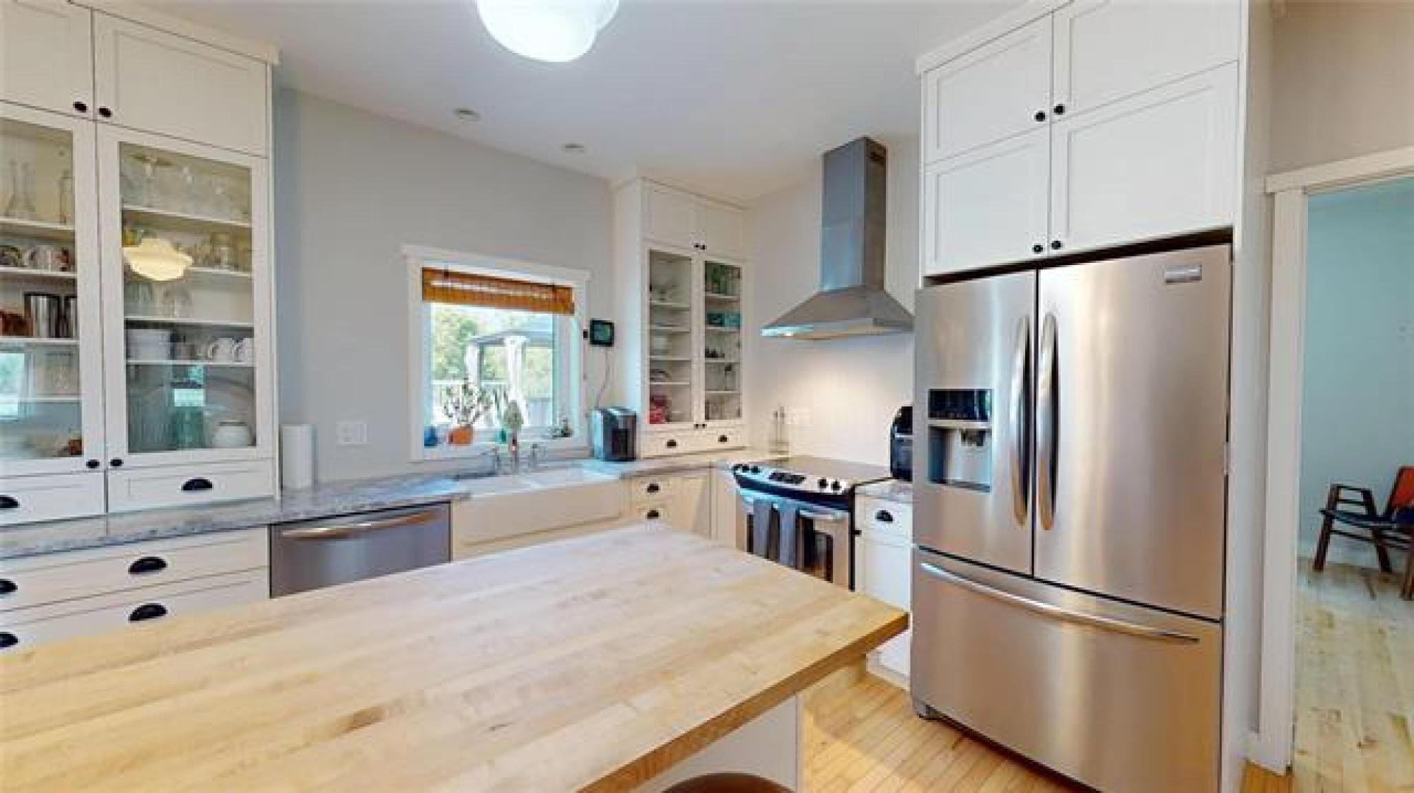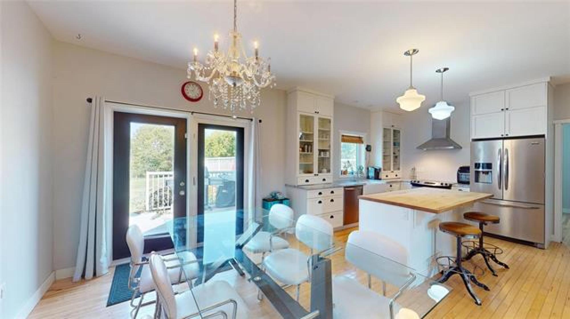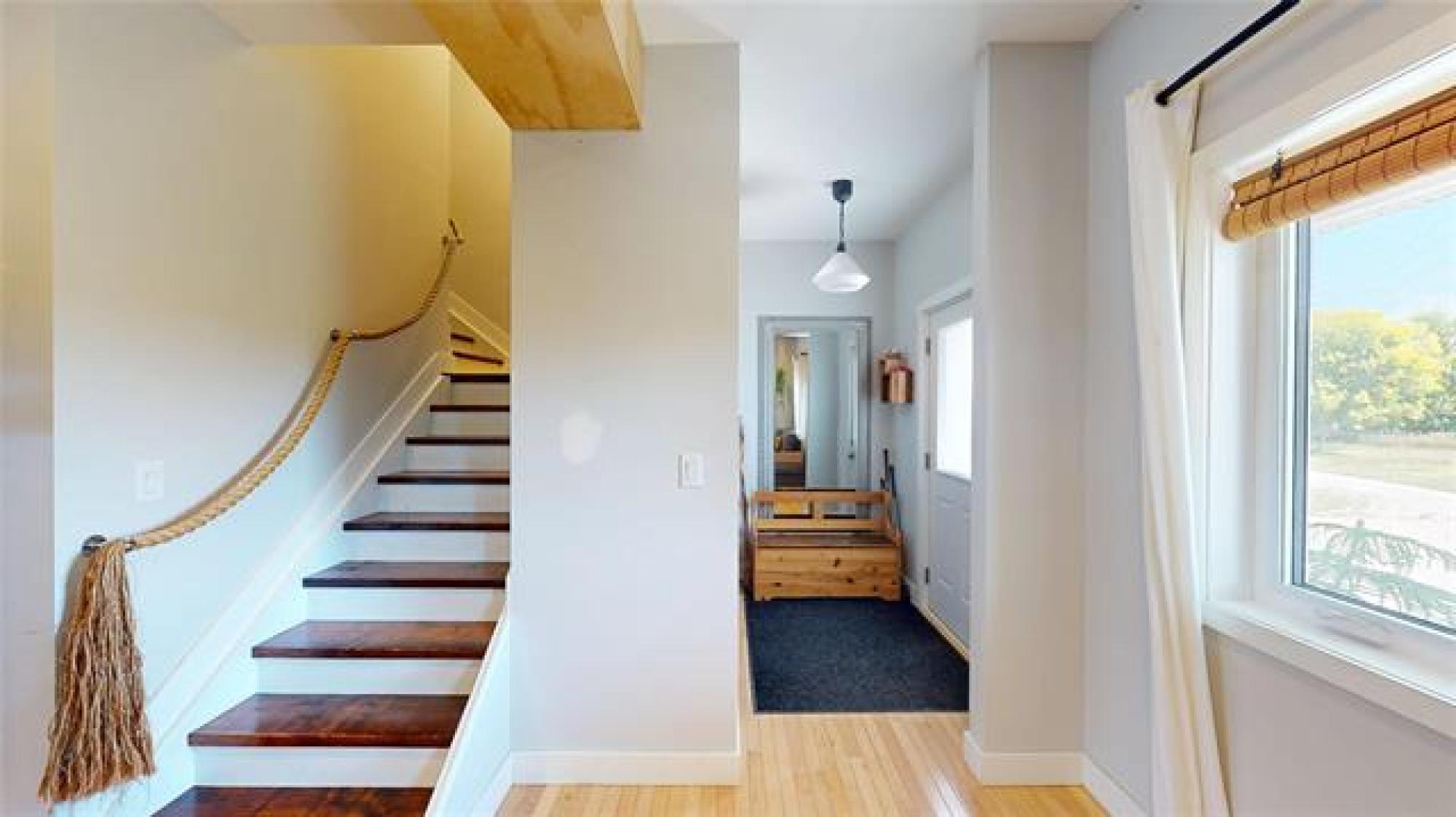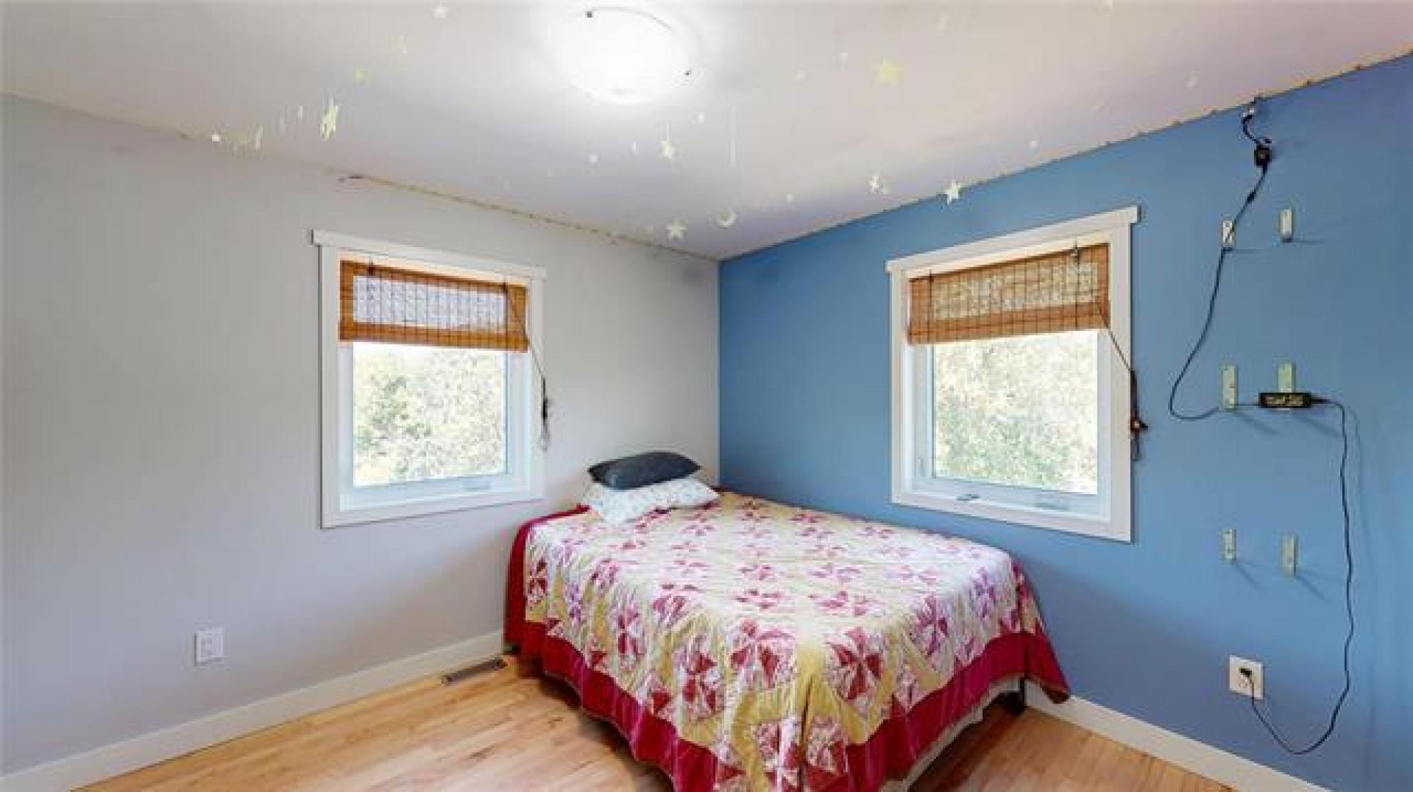 Beautifully treed and private 6.44 acres on the outskirts of Lundar. Quality built and finished, this unique home was completed in 2017. Featuring maple hardwood floors throughout and abundant natural light through many large windows, it is sure to be love at first sight! Check out the virtual tour and aerial video for a closer look. Front foyer with coat closet leads to living room with open beam ceiling and lovely dining room with garden doors to deck with pool. The island kitchen offers lots of cabinets and counter space, farmhouse sink, built in dishwasher, hood fan and large pantry in hall. Main floor office or bedroom with two piece ensuite bath. Upper level offers three bedrooms, main bath and laundry area. Primary bedroom has walk in closet and three piece ensuite bath. Forced air electric heat and central air conditioning, includes all appliances. Built on piles, sump pump. Insulated attached garage with automatic opener and in floor heat. Circular driveway and lots of parking. Quonset with concrete floor new in 2018. Gorgeous yard featuring fabulous deck with above ground pool. Country living within walking distance to town! This fantastic property is clean, well maintained and move in ready