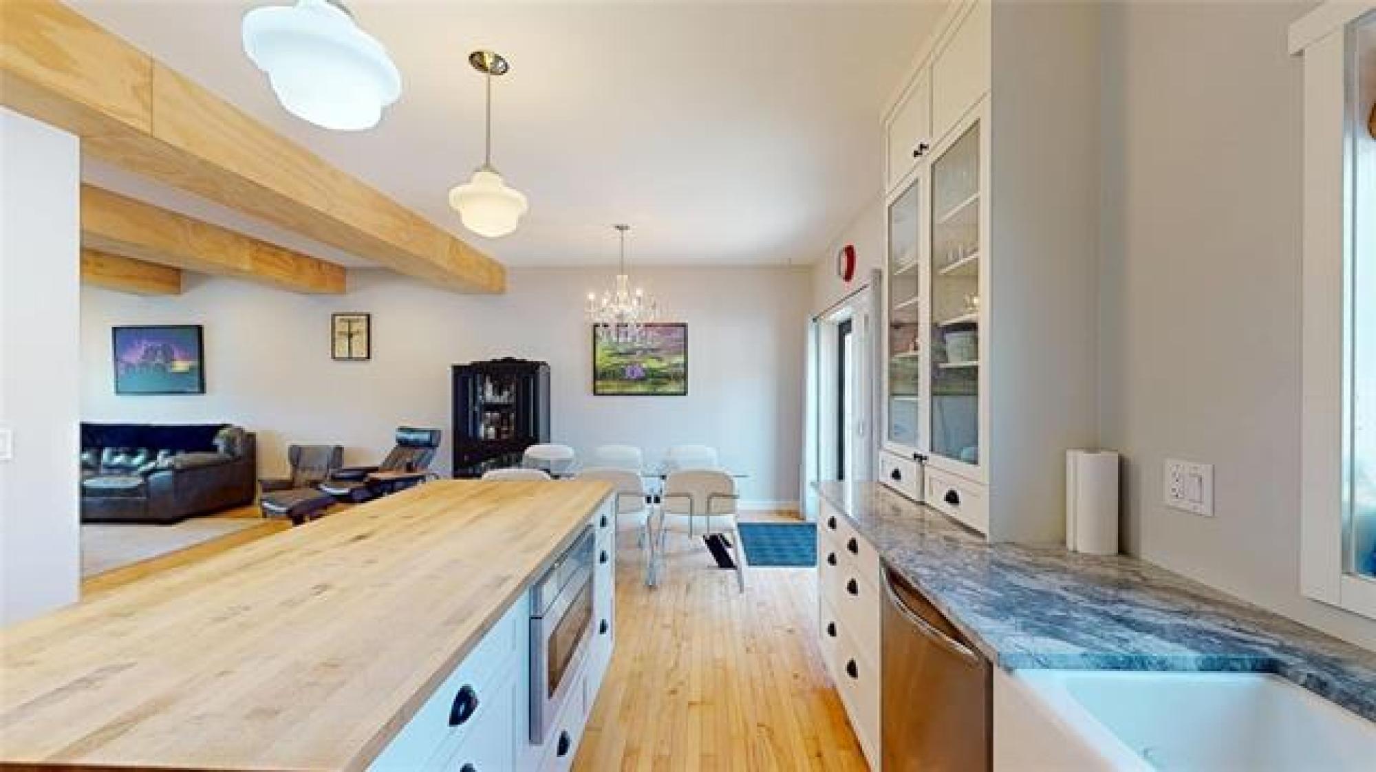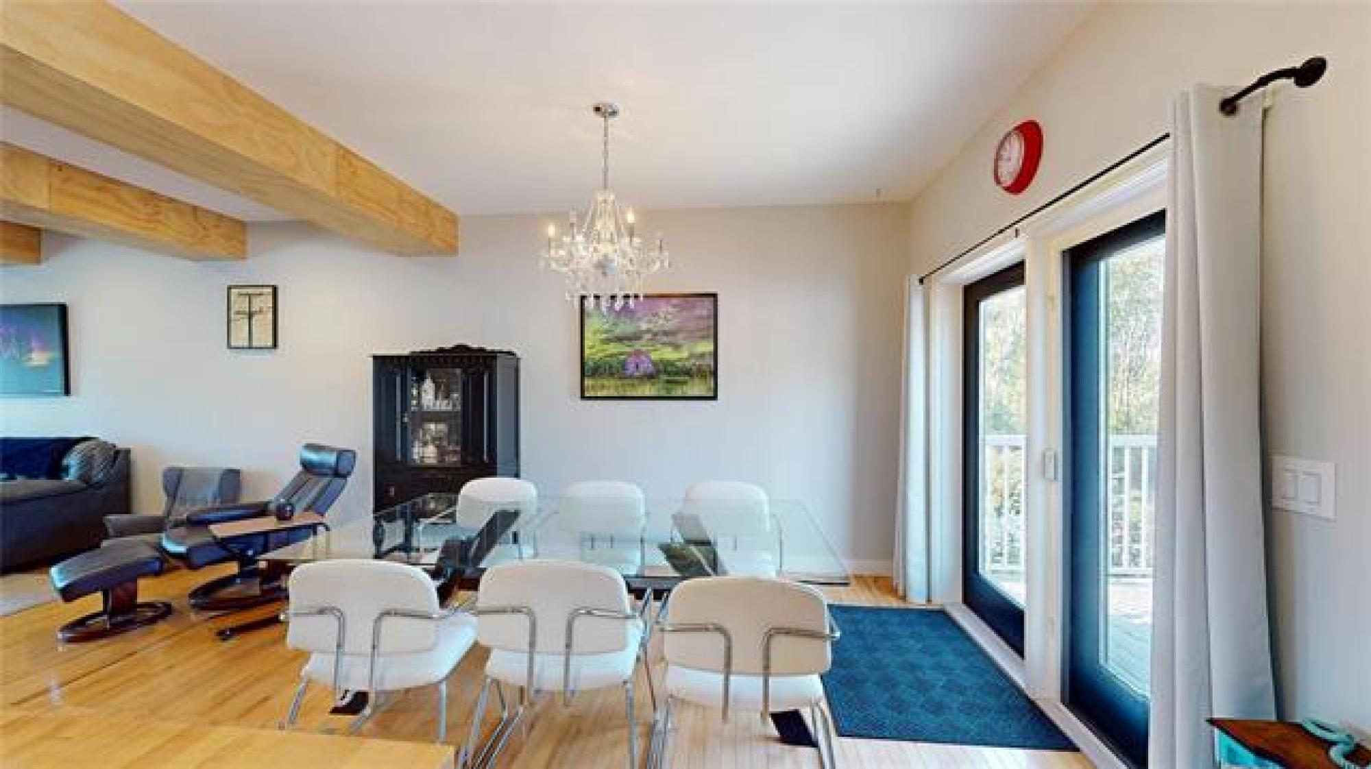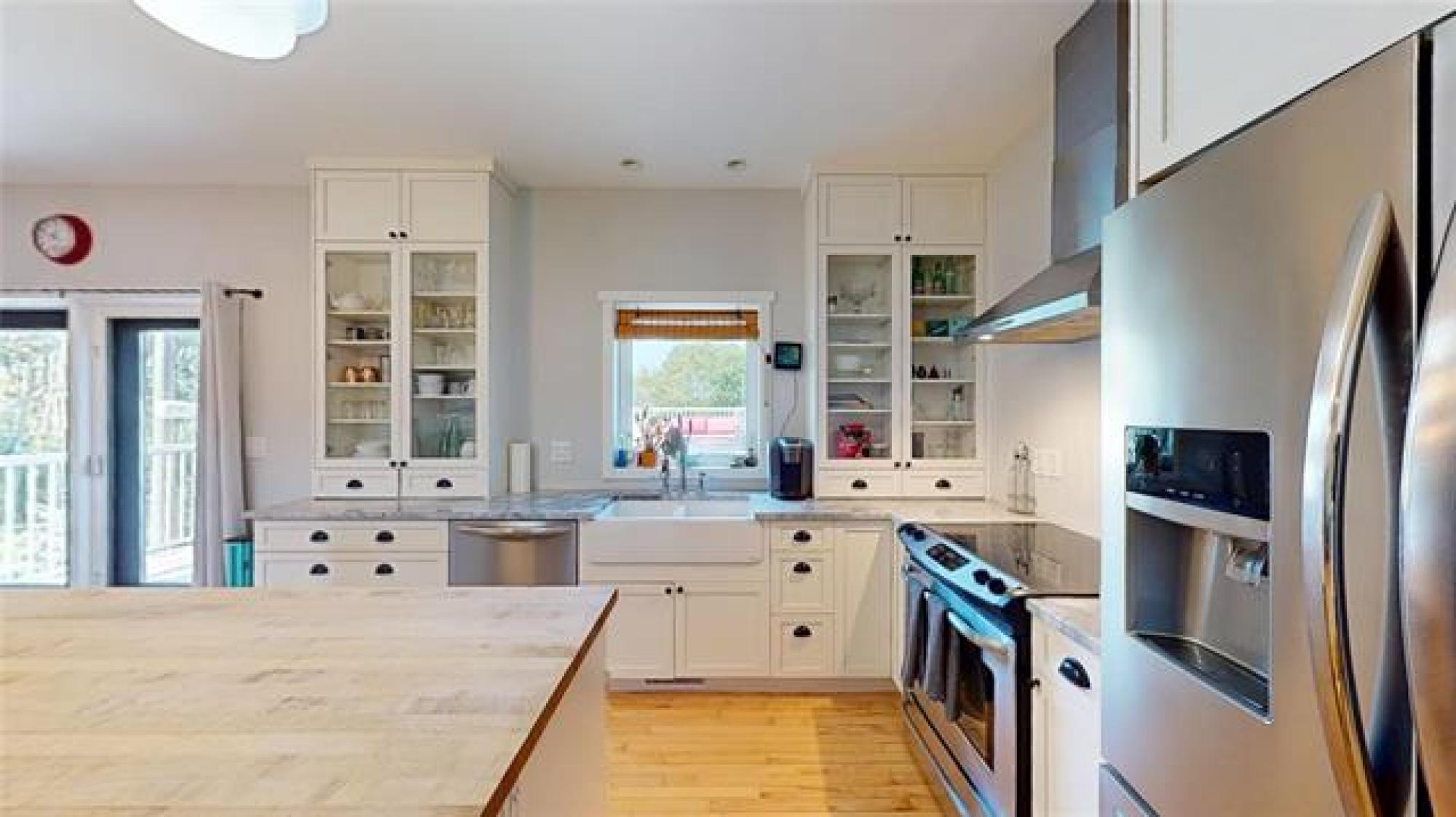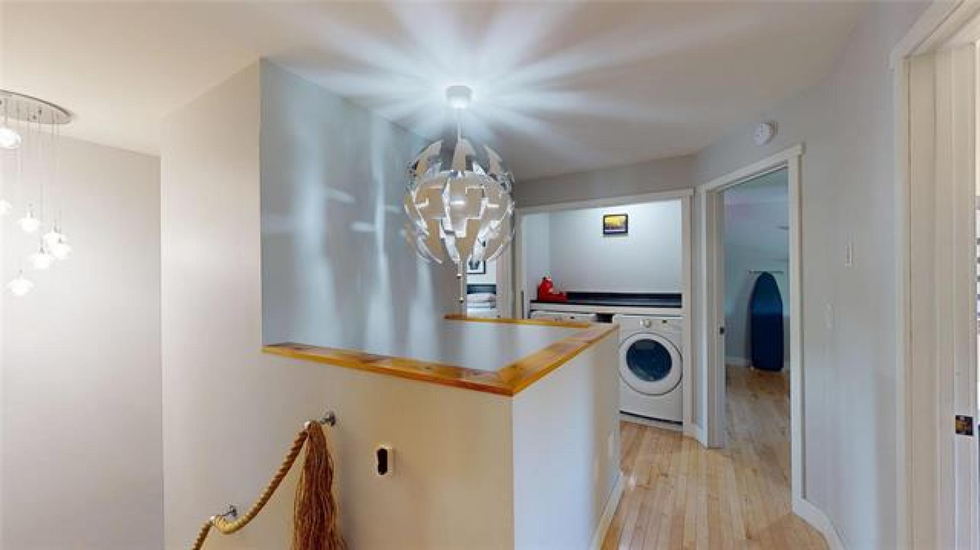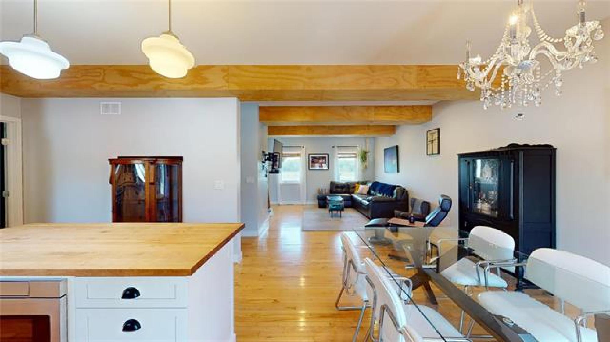 Beautifully treed and private 6.44 acres on the outskirts of Lundar. Quality built and finished, this unique home was completed in 2017. Featuring maple hardwood floors throughout and abundant natural light through many large windows, it is sure to be love at first sight! Check out the virtual tour and aerial video for a closer look. Front foyer with coat closet leads to living room with open beam ceiling and lovely dining room with garden doors to deck with pool. The island kitchen offers lots of cabinets and counter space, farmhouse sink, built in dishwasher, hood fan and large pantry in hall. Main floor office or bedroom with two piece ensuite bath. Upper level offers three bedrooms, main bath and laundry area. Primary bedroom has walk in closet and three piece ensuite bath. Forced air electric heat and central air conditioning, includes all appliances. Built on piles, sump pump. Insulated attached garage with automatic opener and in floor heat. Circular driveway and lots of parking. Quonset with concrete floor new in 2018. Gorgeous yard featuring fabulous deck with above ground pool. Country living within walking distance to town! This fantastic property is clean, well maintained and move in ready