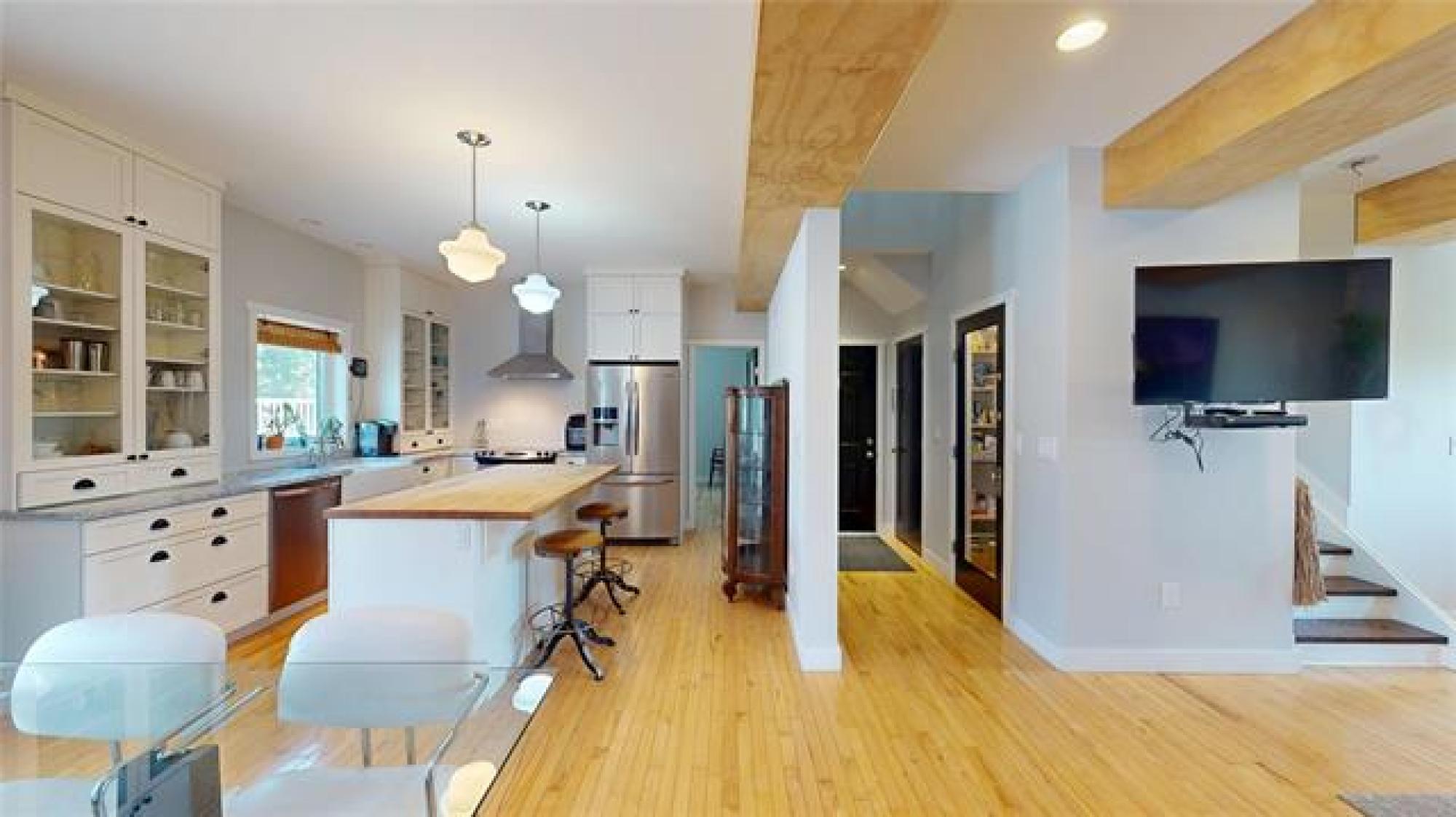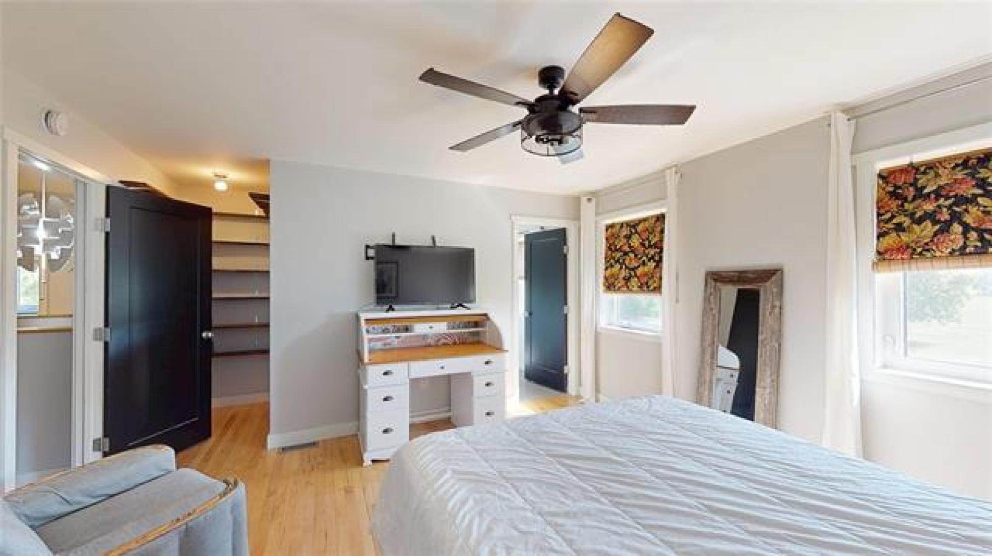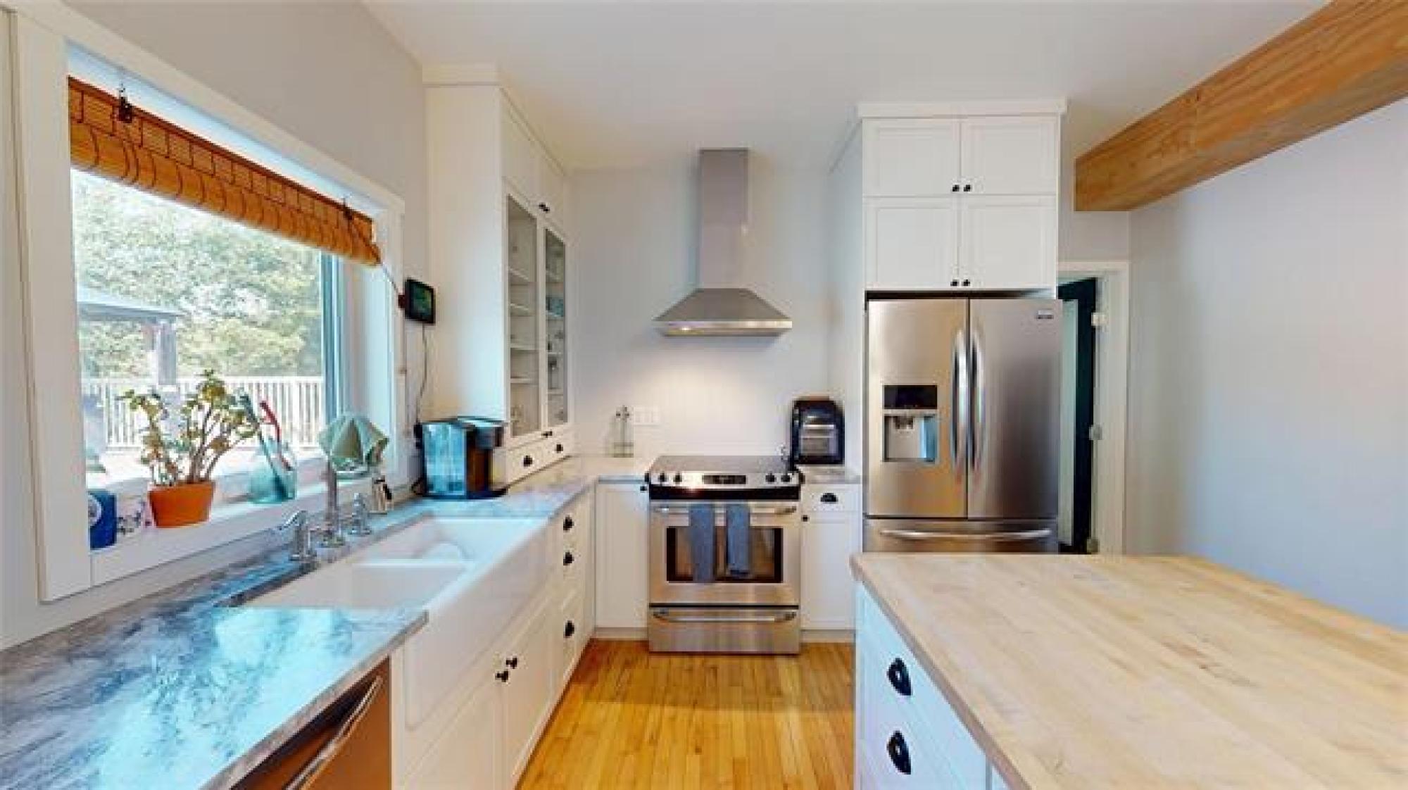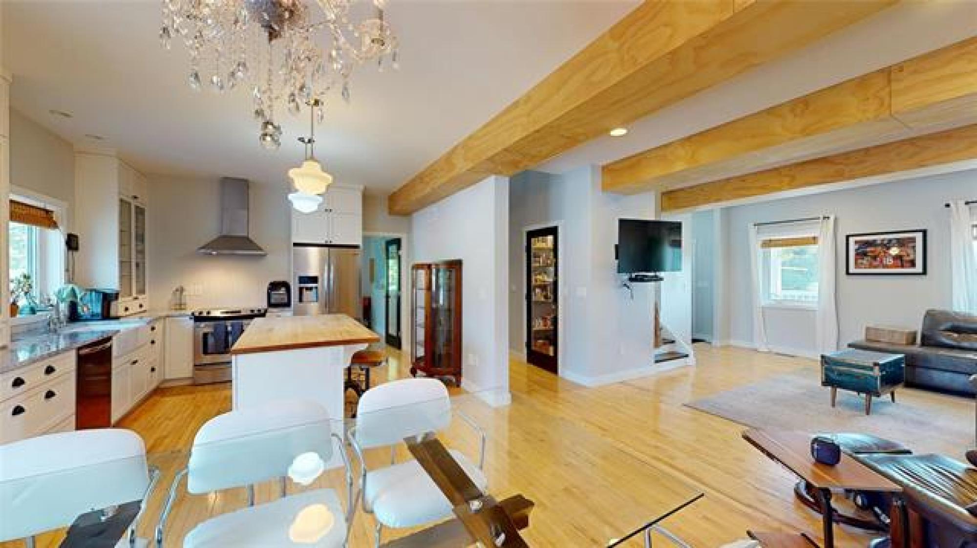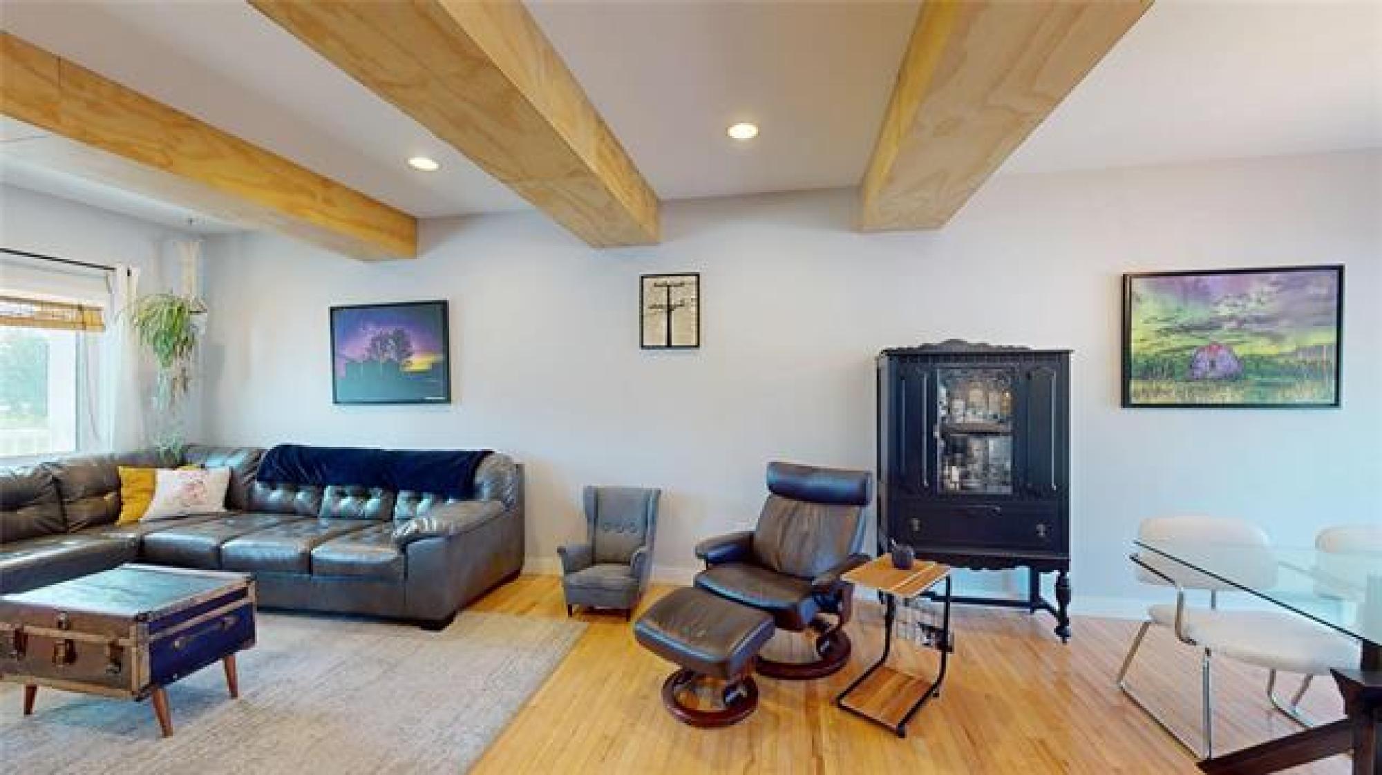 Beautifully treed and private 6.44 acres on the outskirts of Lundar. Quality built and finished, this unique home was completed in 2017. Featuring maple hardwood floors throughout and abundant natural light through many large windows, it is sure to be love at first sight! Check out the virtual tour and aerial video for a closer look. Front foyer with coat closet leads to living room with open beam ceiling and lovely dining room with garden doors to deck with pool. The island kitchen offers lots of cabinets and counter space, farmhouse sink, built in dishwasher, hood fan and large pantry in hall. Main floor office or bedroom with two piece ensuite bath. Upper level offers three bedrooms, main bath and laundry area. Primary bedroom has walk in closet and three piece ensuite bath. Forced air electric heat and central air conditioning, includes all appliances. Built on piles, sump pump. Insulated attached garage with automatic opener and in floor heat. Circular driveway and lots of parking. Quonset with concrete floor new in 2018. Gorgeous yard featuring fabulous deck with above ground pool. Country living within walking distance to town! This fantastic property is clean, well maintained and move in ready