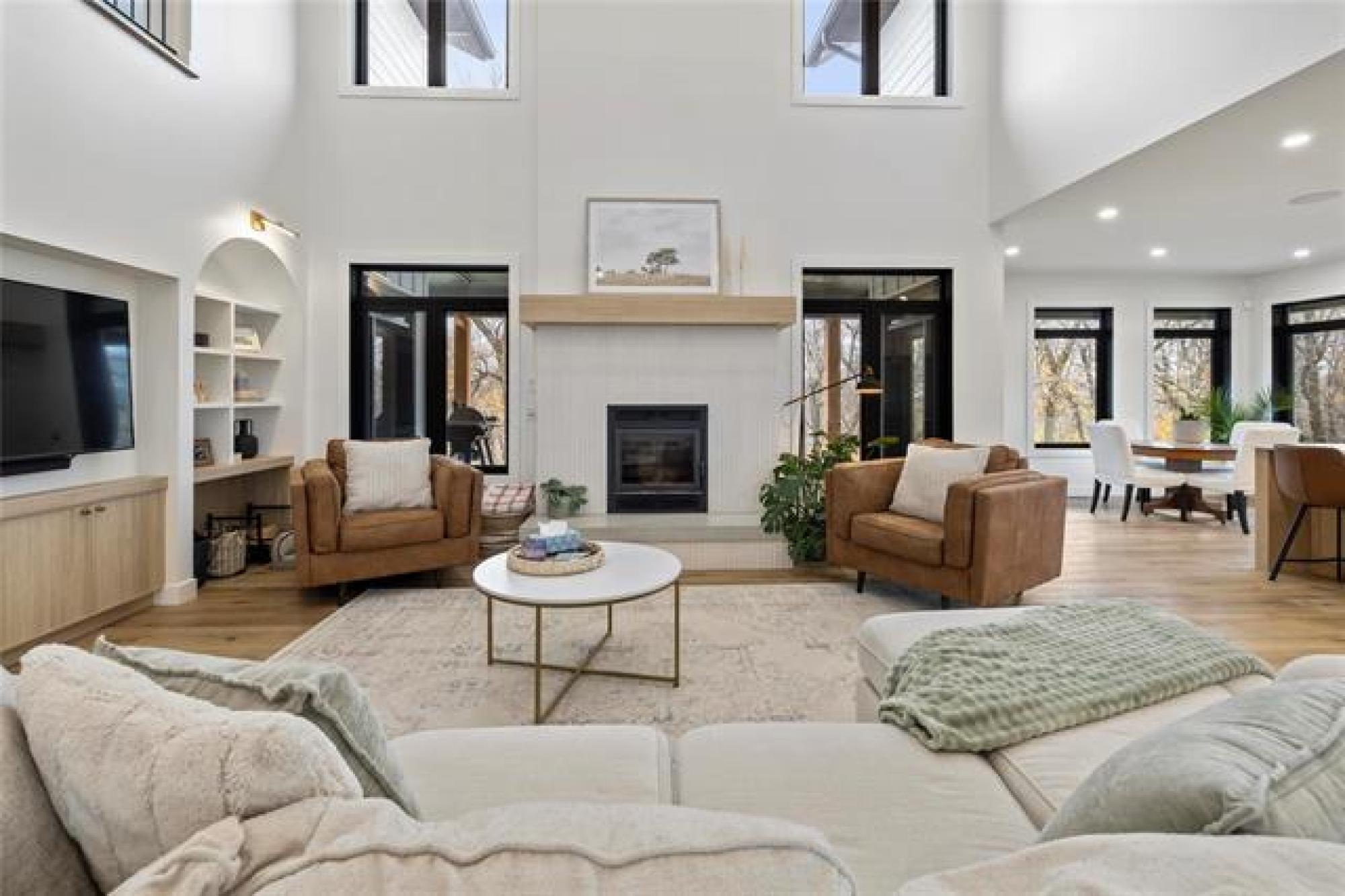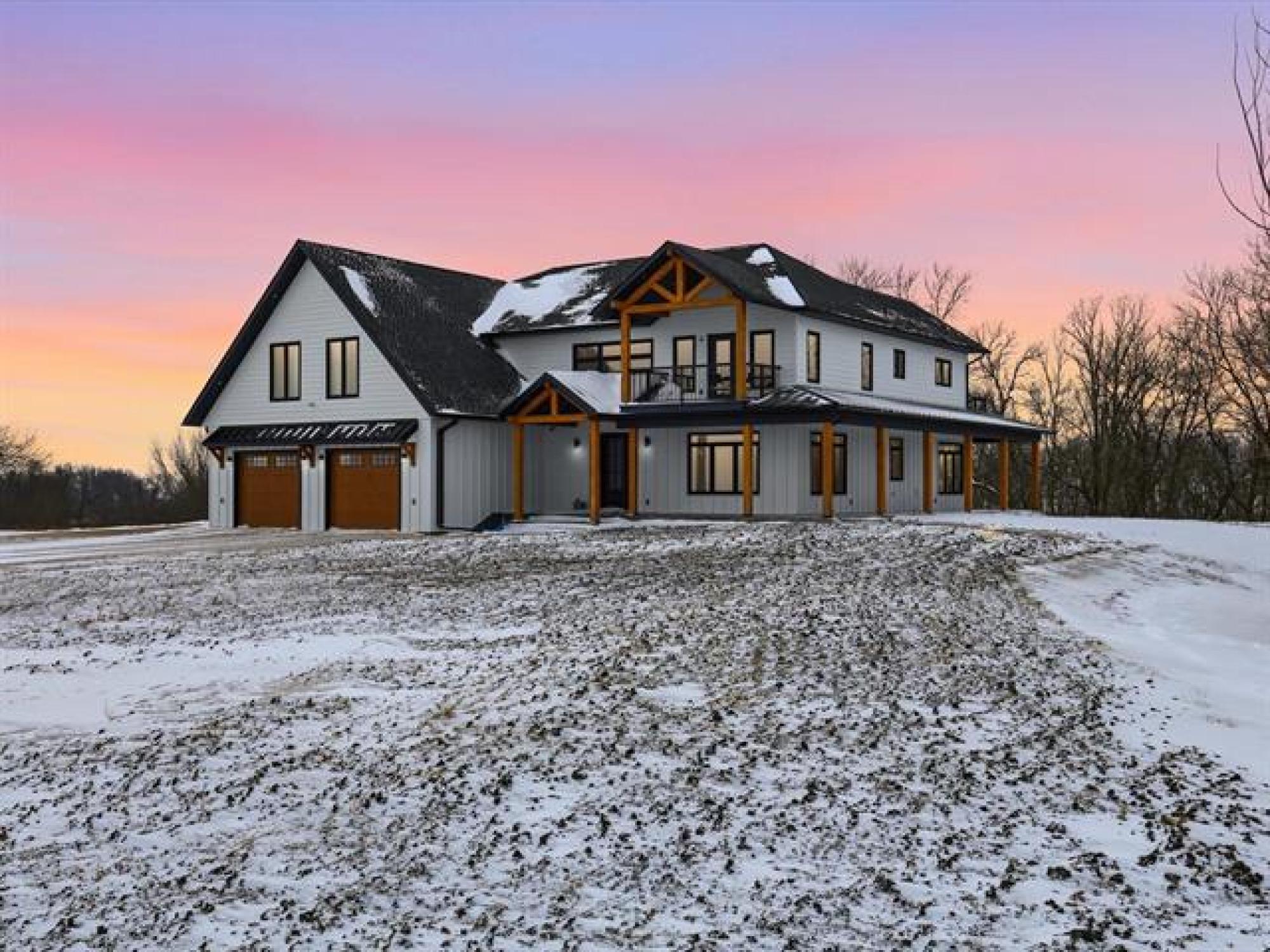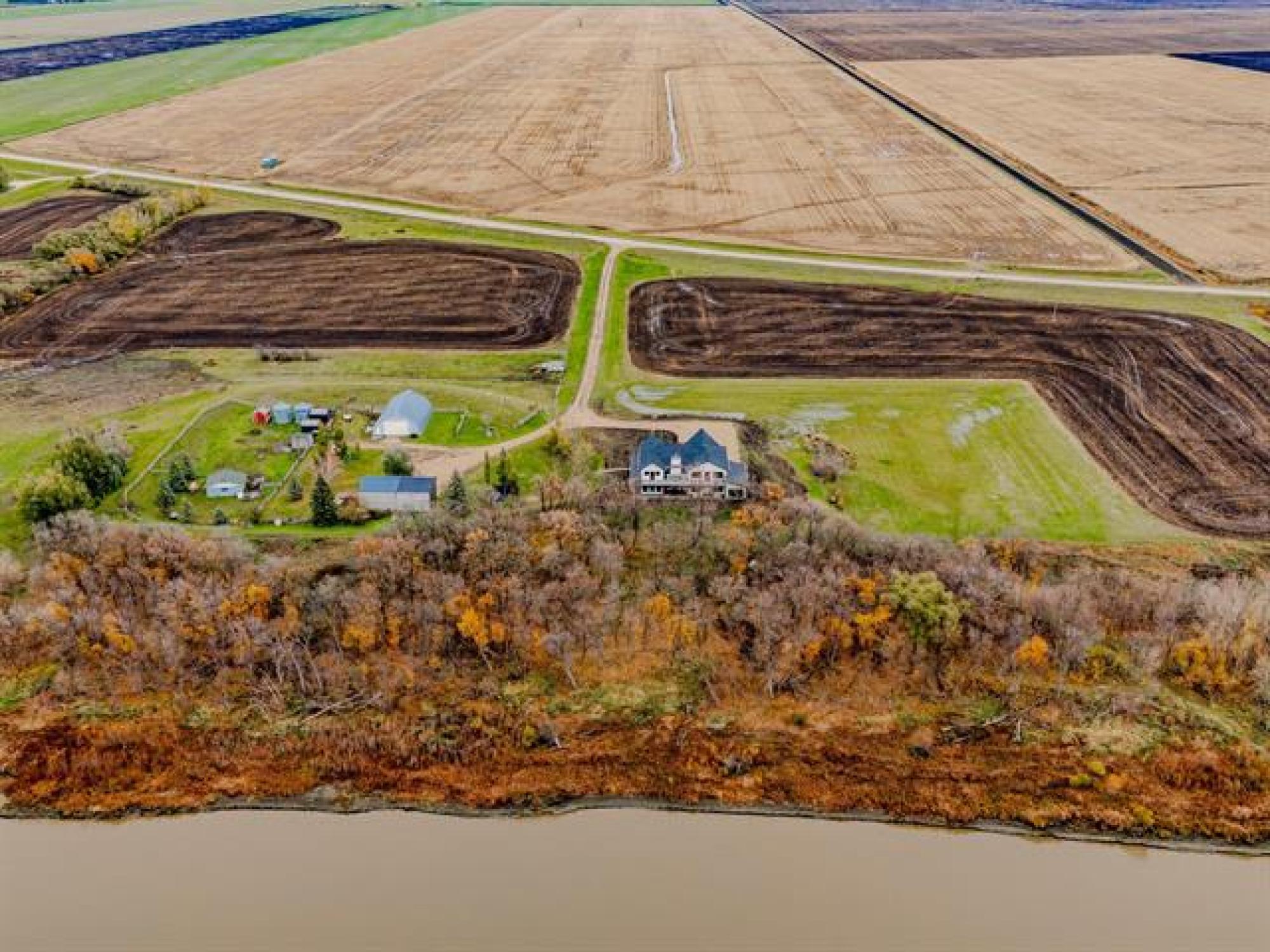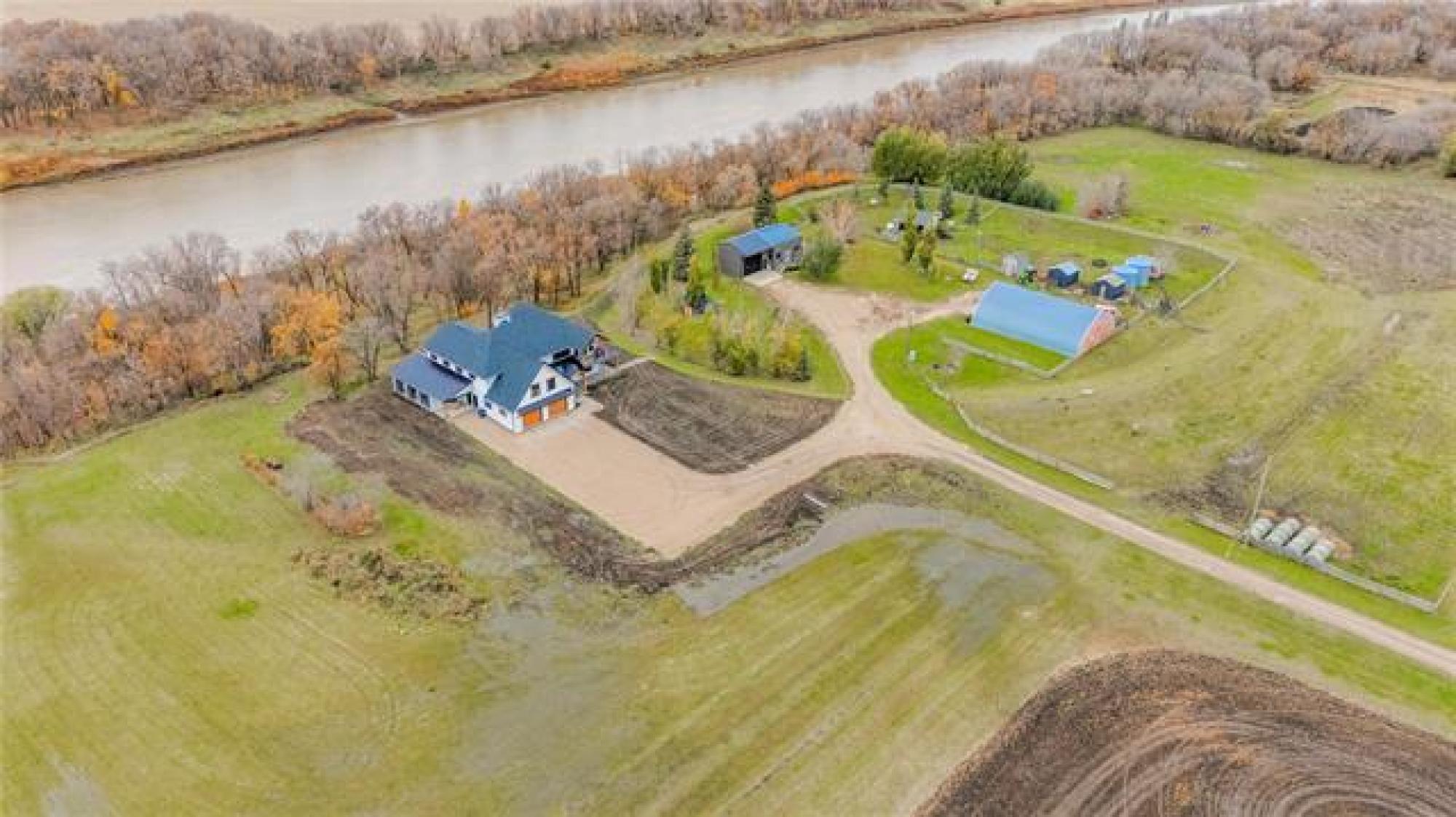 Magnificent home on 36+acres exemplifies craftsmanship & timeless design. Every detail is meticulously curated w/quality finishes & designed layout to suit its spectacular setting. Soaring ceilings, open stairs designed w/custom railings, windows framing views w/ample natural light. The great room showcases elegance w/built-ins & FP flanked w/stone. Chef’s kitchen features-quartz-pot filler-DW fridge/freezer-WIP-a coffee/bar station leading to formal dining. A media room w/wet bar seamlessly transitions to the sunroom with walls flanked w/glass doors for unobstructed views +IFH for added comfort. Added feature: Smart Home technology throughout. The 2nd level features an exquisite primary w/4-pc ensuite, a 200+sqft WIC & access to 2 balconies overlooking the river or views of the acreage. Another 3 beds, 5pc main bath & 2nd-level laundry for convenience. A potential 5th bed accessible to adjoining balcony. The basement is plumbed for a 4th bath. The garage features IFH for year-round comfort. The exterior: stamped patio, serviced shop/den w/potential for in-law suite. Fenced pasture w/barns (1 w/water line) ideal for horse enthusiasts! An exceptional property! A must-see for discerning buyers!