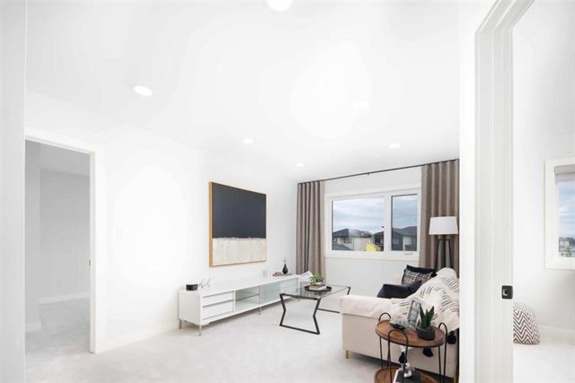 AWARD WINNING SHOW HOME NOW AVAILABLE! Welcome to 34 Clover Terrace, Located on a premium park lot, backing onto the community’s future K to 8 dual track school! This home is loaded with upgrades in-an-out, top-to-bottom! Professionally landscaped with an oversized deck, window coverings, security system with video surveillance, and full Control4 smart home automation. Inside, 4 bedrooms plus loft (including a main floor bedroom) and 3 full baths create the perfect layout for family living. The dream kitchen boasts an expansive L shape design with gas cooktop, built in appliances, quartz counters, and a separate spice kitchen. A bright living room flows into the heart of the home, while soaring 18 foot ceilings with floor to ceiling windows flood the great room in natural light, anchored by a custom fireplace wall and striking open staircase with matte black spindles. The private side entrance leads to the INCLUDED Basement Suite Upgrade Package, ready for a 2 bedroom suite with bath rough in, plus second laundry and kitchenette rough ins. Built to industry leading standards and backed by a full Manitoba New Home Warranty, this one of a kind home is the total package. Book your showing today!