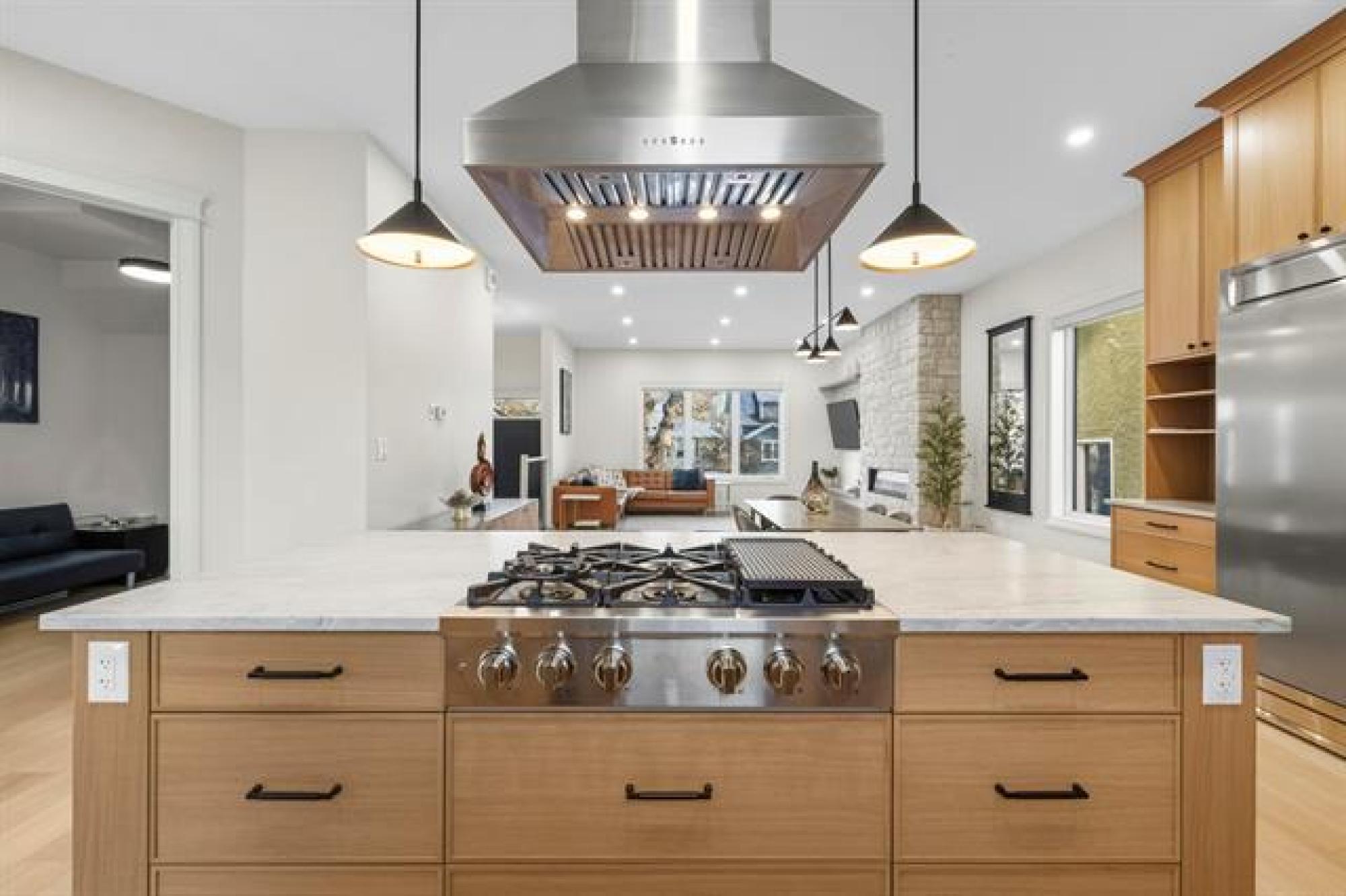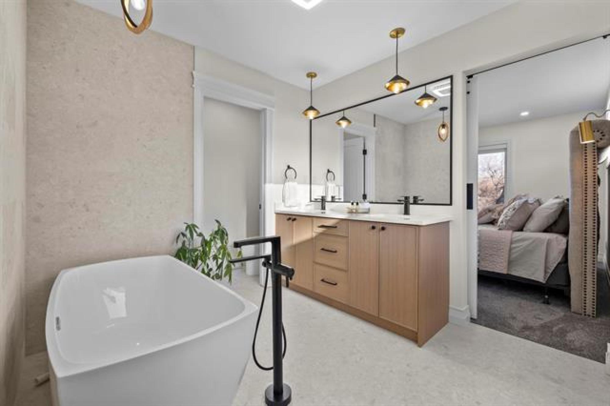 Beautifully crafted 4-bedroom + den, 3.5-bath luxury home offering 2,183 sq ft of sophisticated living between Grosvenor & Kingsway. New construction with timeless appeal, the striking exterior boasts a stone façade, timber accents & snap lock metal roof. 10' ceilings on the main level elevate the space, anchored by engineered hardwood floors & a custom stone fireplace with floating shelves. The kitchen features custom white oak cabinetry & quartzite counters with premium appliances. A bonus den on the main floor makes the perfect home office. The finished basement offers 9' ceilings, a spacious rec room with wet bar for entertaining, 4th bedroom, full bathroom & room for a gym or potential 5th bedroom. Upstairs, the primary suite impresses with dual walk-in closets, large windows & ensuite complete with tiled steam shower, soaker tub, double vanity, water closet, & heated flooring. The second & third bedroom are spacious, with walk-in closets & the second bathroom with dual vanities gives your kids room to grow. The yard features a large deck plus future patio & sodded area (spring 2026) and an oversized double garage. Blanket 1 & 5 year warranty.