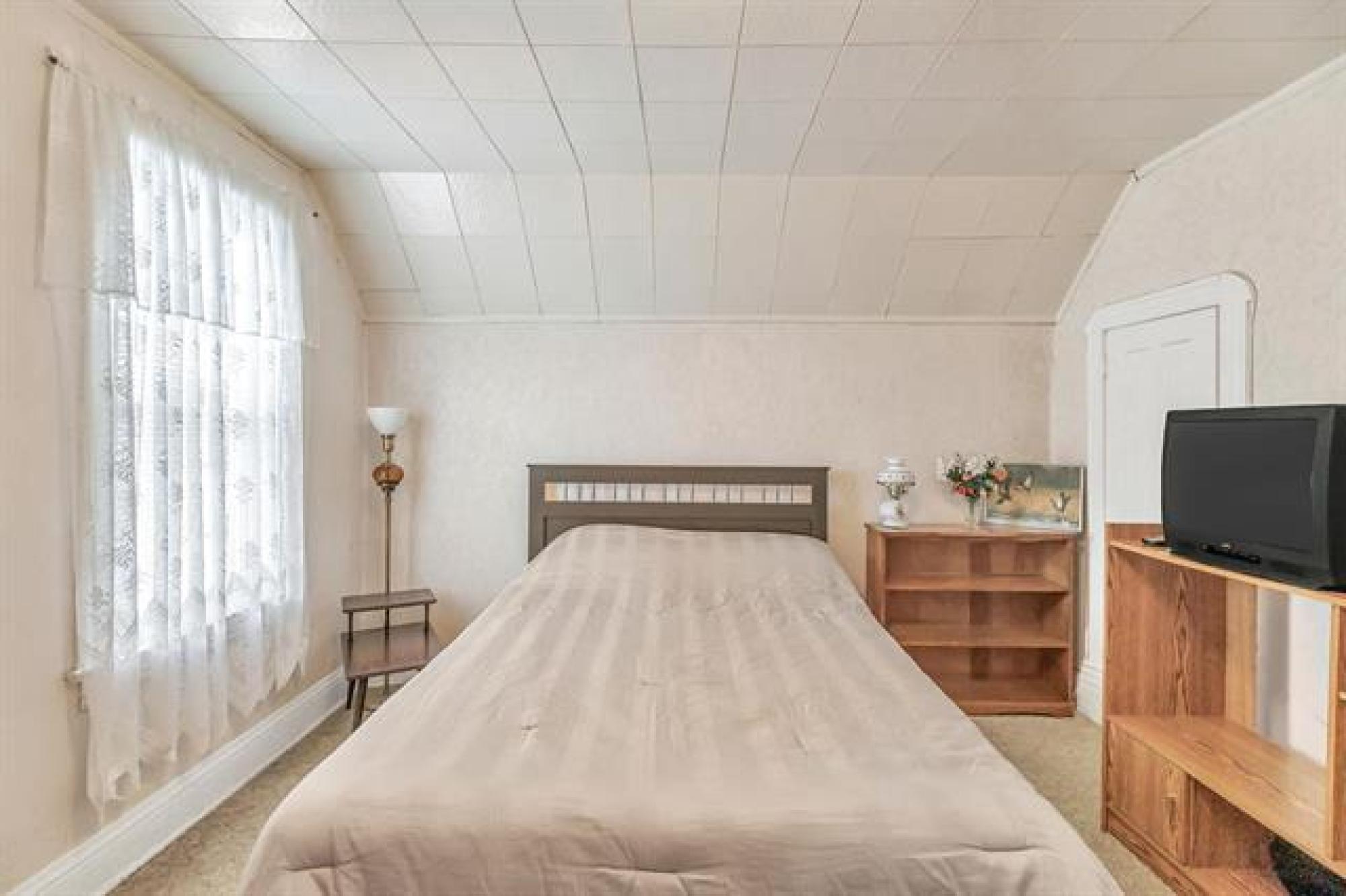Winnipeg's wonderful west end! At 1258sf this 1 3/4 story home has much to offer! The light filled spacious front room is anchored by a big picture window. The adjacent dining room has been turned into a main floor bedroom but could be made back into living space on the main floor. A good sized eat in kitchen flows into the dining room addition. Upstairs rest 3 good sized bedrooms, one complete with a sink making it feel like a suite. The 4pc bathroom upstairs is adorned in beautiful retro tiles. The basement is partially finished offering a closed in room, 3 pc bathroom and cold room compete with old school wine press! Outside the backyard is ready for your veggie garden, offers additional storage and room for your vehicles. Centrally located this could make for a wonderful first home to put your stamp on or maybe your first income property.