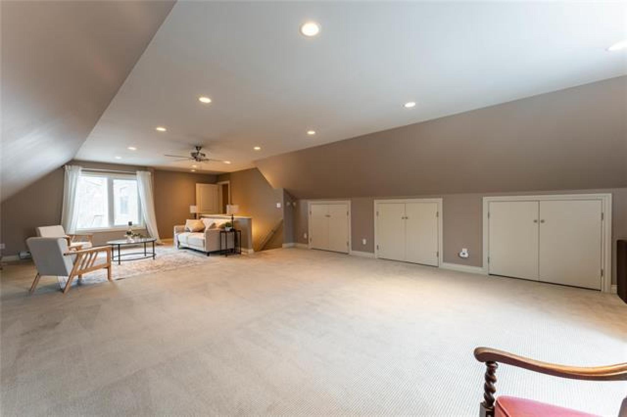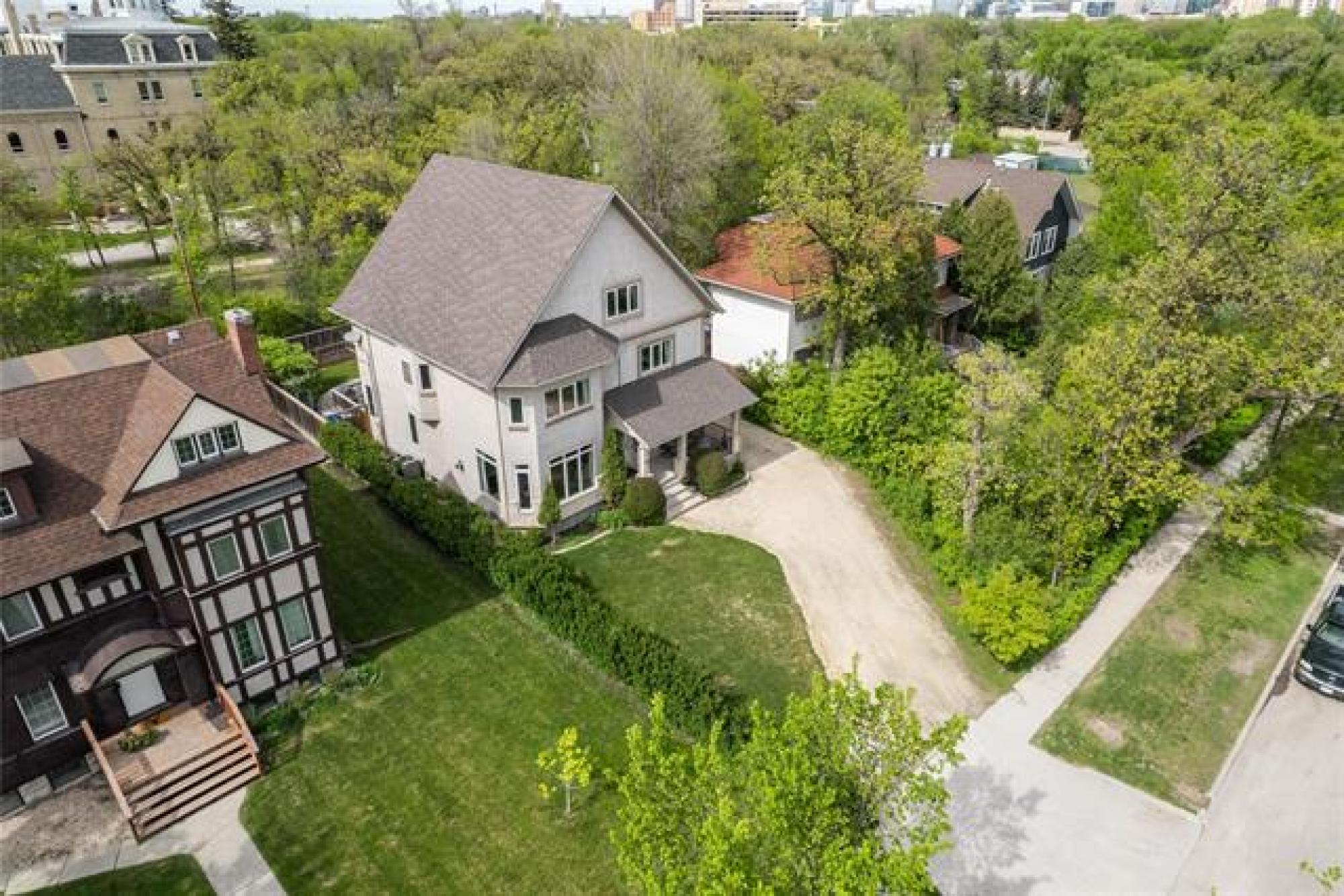 A rare mix of stately design, and contemporary engineering, situated on one of Winnipeg's most prestigious blocks and backing onto the treed green space of St. Mary's Academy, steps from Wellington Crescent, Munson, and Peanut Park - exceptionally well-built in 2005 w/ 4188 sqft of living space designed for functionality + efficiency. An inviting front approach w/ Verandah, front-drive garage access opens to 9' ceilings and gorgeous oak floor, bright great room with beautiful south views, massive dining room and kitchen w/ patio access to the fully fenced backyard. The 2nd floor offers a full 5pc bath and 4 bed including the primary suite w/ walk-in closet, 5pc ensuite, massive 588 sqft games room, and a nearly 1000 sqft loft w/ 3 pc bathroom. Dual-zone HVAC system with 2 HE furnaces for exceedingly inexpensive heating and cooling year-round, structural basement sub floor, triple-car tandem garage. All the benefits and charm of the location combined w/ the reliability and longevity of high-end modern construction. Non-Heritage status means updates to the exterior can freely be done, combine this w/ an exceptional structure, 43 Kingsway, Winnipeg is worth the long-term investment for your family.