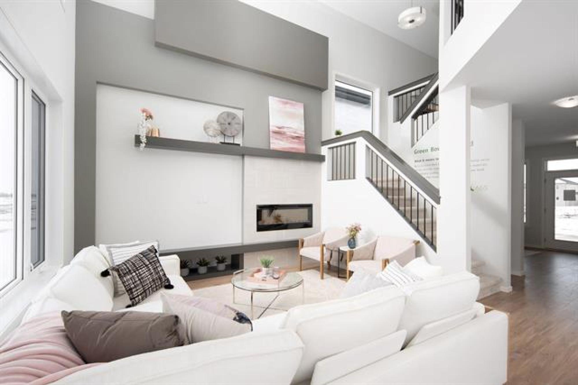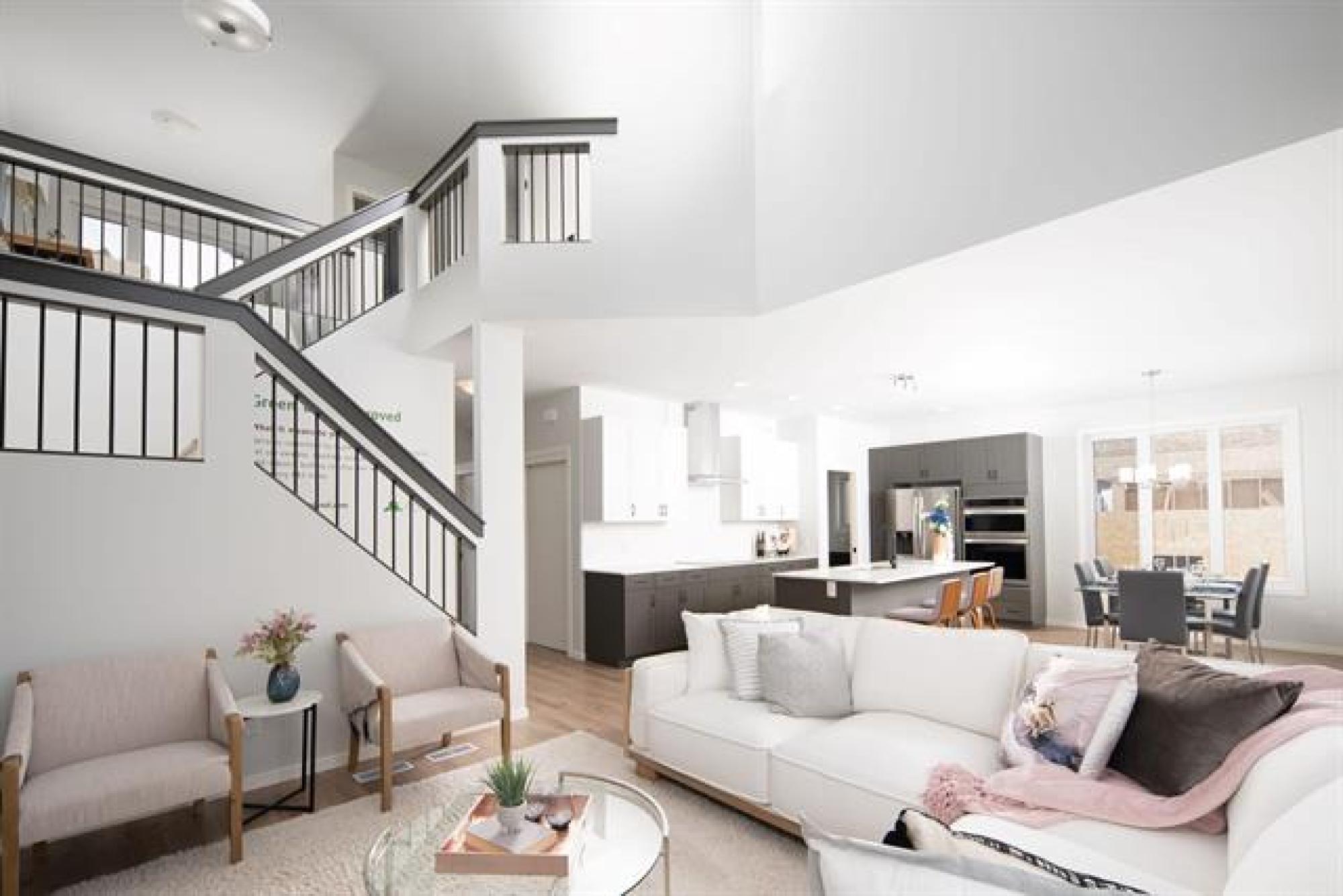 DECEMBER POSSESSION!! THE HAMPTON.. HUGE FALL PARADE OF HOMES DISCOUNT!! This homes has it all. The well planned model is almost 2100sf of living space and has 4 bedrooms, a loft and 3 full baths. The main floor boasts a convenient bedroom with a huge closet space, perfect for guests or in laws. The 9ft ceiling open concept design connects the kitchen & dining to the 18ft open to above great room with huge windows providing the perfect space for entertaining. The flex room in the front can be used for anything. The home is filled with luxurious features, including deluxe kitchen cabinetry, coffee bar, SPICE KITCHEN with millwork pantry, 2 chinmey hood fans, gas line on main kitchen, Pinehurst Showhome fireplace, spindle on stair railings, quartz kitchen and bath, laminate floors on main floor, double door entrance, privacy door to basement. 22x22 garage with 8ft O.H. door, additional rough-in in basement for laundry & bar sink, tiled shower in ensuite, standing shower on main floor bath, and so much more. The convenience of 2nd floor laundry. Built to A&S Homes premium quality standards, with Piled foundation and DELTA MS WRAP waterproof basement, steel reinforced concrete driveway & walkways.