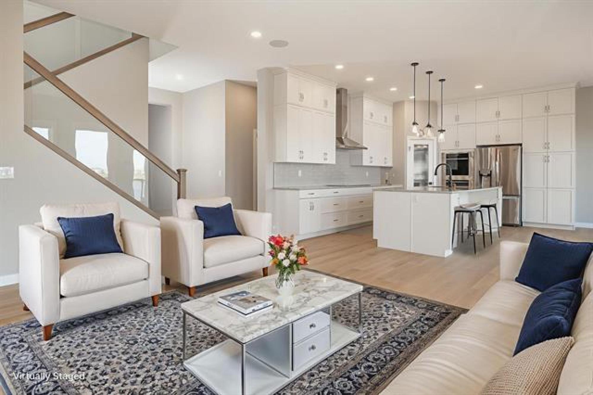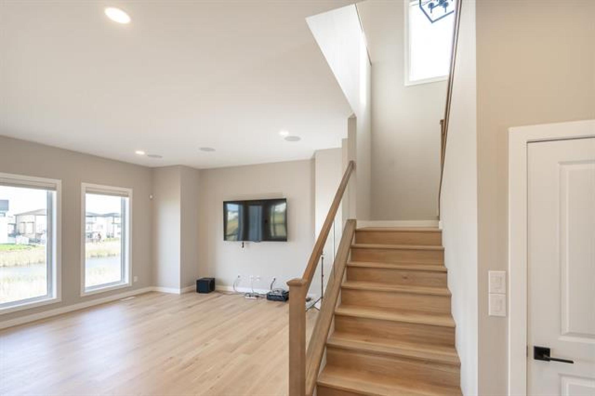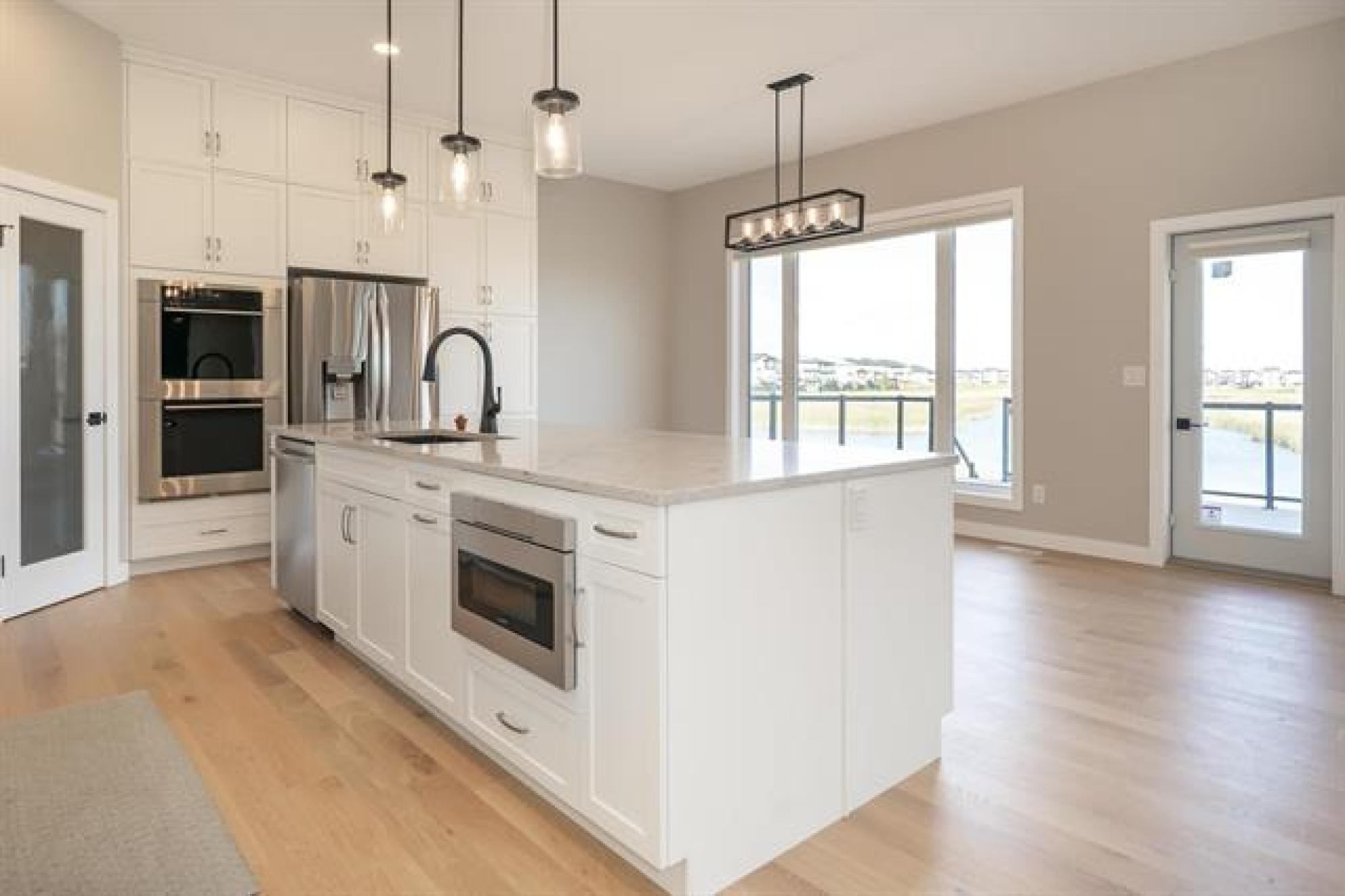 Updated Pricing – Great Value! This spacious 2,781 sq. ft. house offers 4 bedrooms, 2nd floor loft, and 2.5 baths—perfectly blending comfort with luxury. The chef’s kitchen features an oversized granite island, ideal for cooking and entertaining with lake views. High-end appliances include cooktop, double wall oven, microwave drawer with hidden control panel, refrigerator, and dishwasher. A bright dining area surrounded by windows opens onto a 19 x 14 ft balcony with glass railings, extending the lakefront views outdoors. Large windows throughout flood the home with natural light while framing breathtaking vistas. Upstairs, you’ll find three spacious bedrooms and versatile loft. The primary suite boasts serene lake views, a luxurious ensuite, and walk-in closet. Additional features include in-ceiling speakers, 10 ft main floor ceilings, 9 ft basement ceilings,Duradek balcony, hardwood flooring on both main and second levels, central A/C, Hunter Douglas motorized blinds with remotes, 200 AMP service. With its walk-out basement and exceptional design, this home combines elegance and functionality. Contact today to schedule a viewing and begin your next chapter in the Lakefront Living Dream Home.