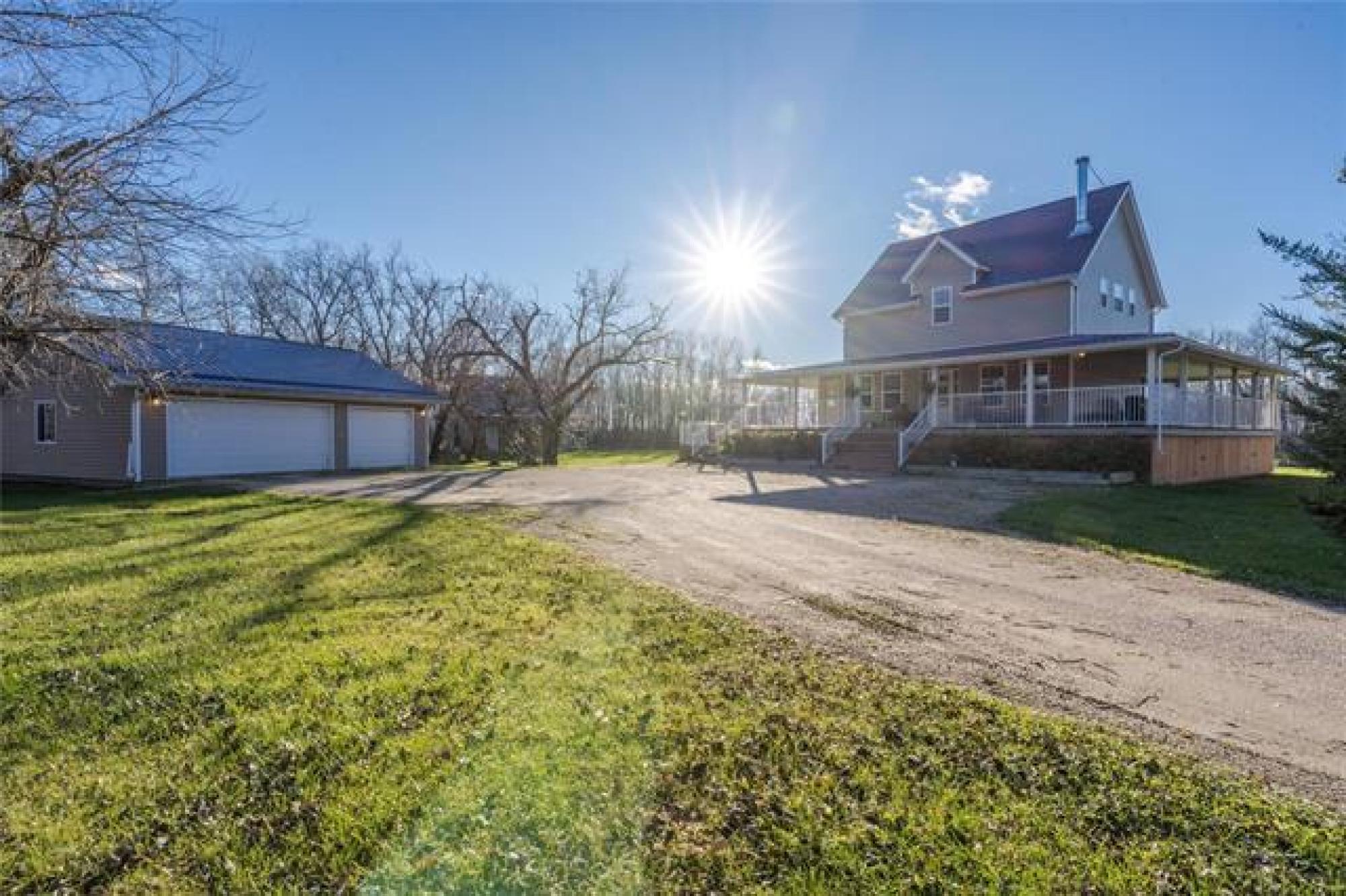 Have it all on this gorgeous 80-acre property featuring a 1775 sq. ft. ranch-style two-story home with a wide wraparound veranda, deck, and a bright four-season sunroom for relaxing and watching the Deer play on the back yard. Enjoy maple hardwood floors, granite countertops, a cherry wood kitchen, and a charming brick fireplace in the dining area. The home offers a spacious primary bedroom with a five-piece ensuite and walk-in closet, plus three additional bedrooms and two more baths. The finished basement adds even more living space. Outside, you’ll find a beautifully landscaped yard, a triple car garage, a newer custom-built barn with horse fencing, and a professionally constructed 50' x 40' heated shop with two 14' overhead doors, one 12' door, a two-piece bath, and a mezzanine, All items in shop including compressor on mezzanine NOT included, it will be bare floor and bare walls.) . A rare opportunity to enjoy privacy, space, and exceptional amenities—all in one stunning property. This home is just over a mile off highway 12.
