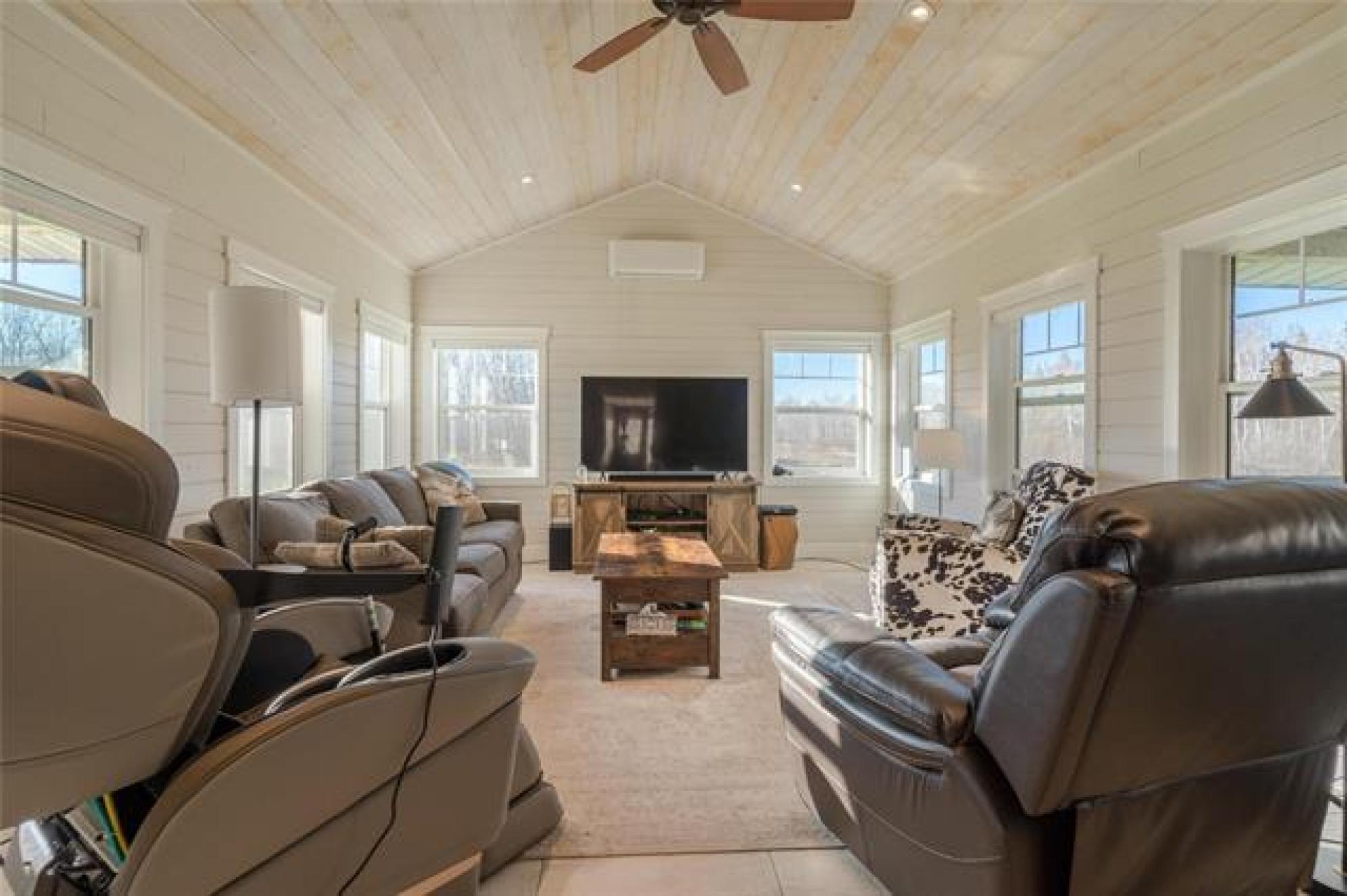 Have it all on this gorgeous 80-acre property featuring a 1775 sq. ft. ranch-style two-story home with a wide wraparound veranda, deck, and a bright four-season sunroom. Enjoy maple hardwood floors, granite countertops, a cherry wood kitchen, and a charming brick fireplace in the dining area. The home offers a spacious primary bedroom with a five-piece ensuite and walk-in closet, plus three additional bedrooms and two more baths. The finished basement adds even more living space. Outside, you’ll find a beautifully landscaped yard, a triple car garage, a newer custom-built barn with horse fencing, and a professionally constructed 50' x 40' heated shop with two 14' overhead doors, one 12' door, a two-piece bath, and a mezzanine. A rare opportunity to enjoy privacy, space, and exceptional amenities—all in one stunning property.