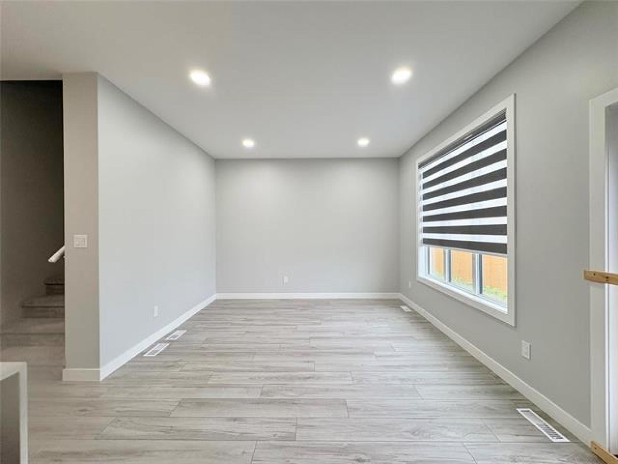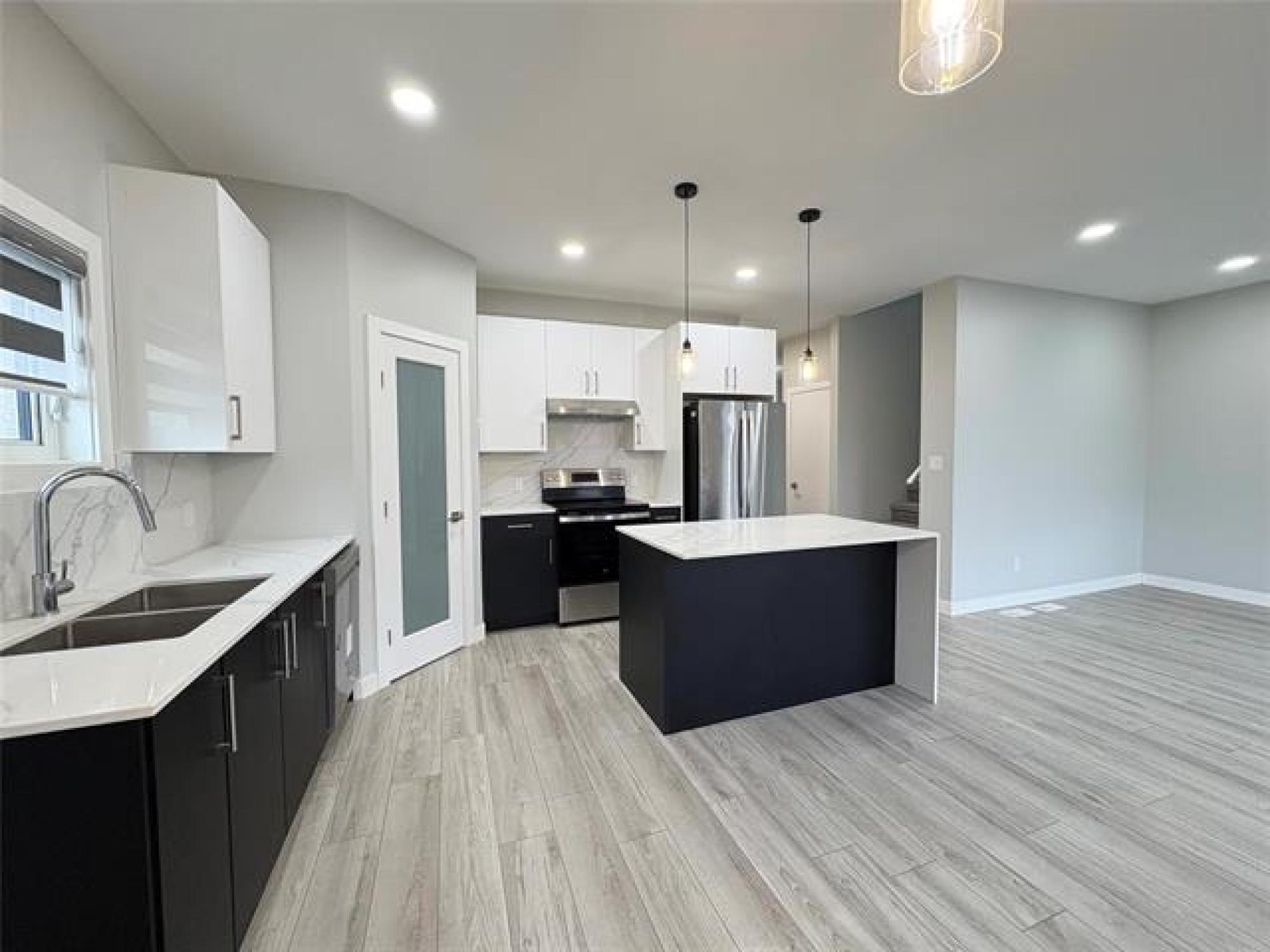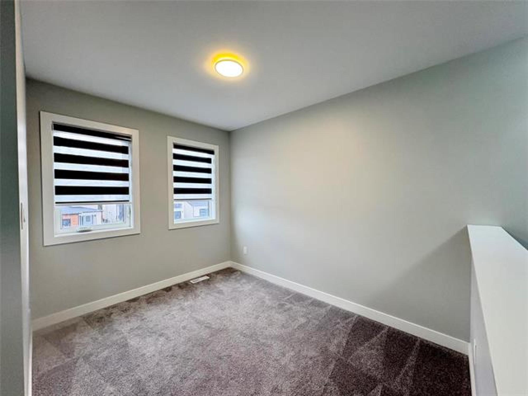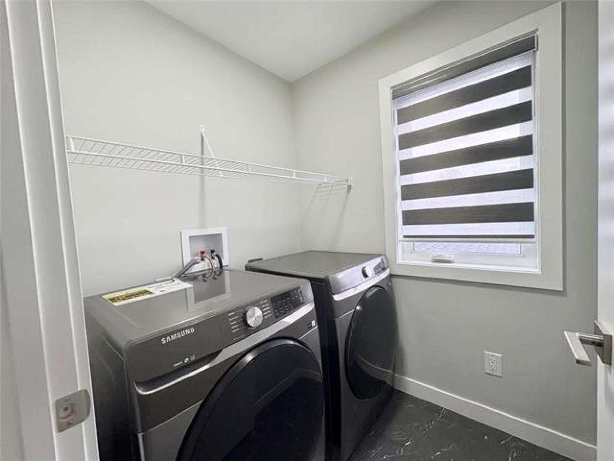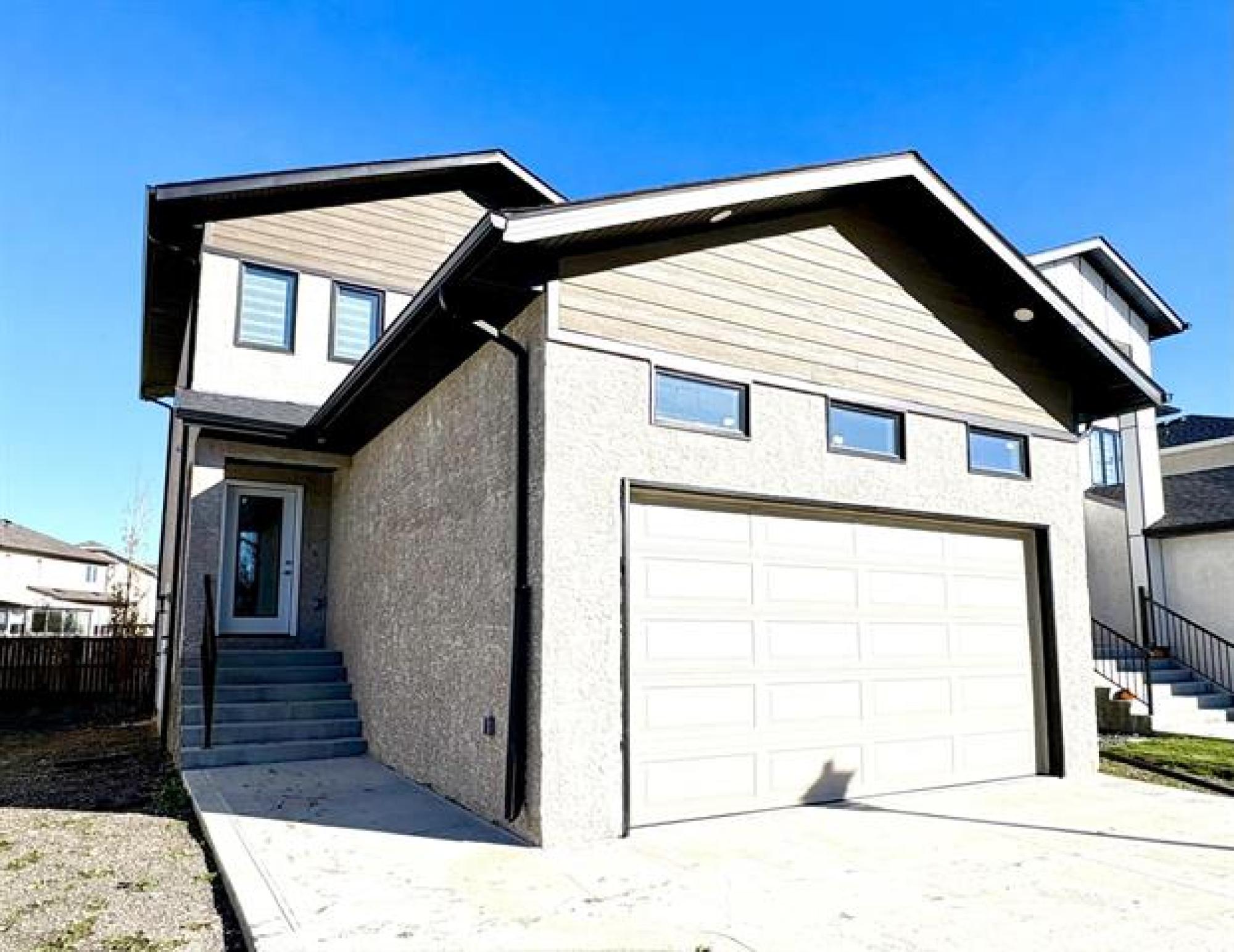 Showings Start now. Offers as received. Beautiful Custom Built 1,645 SF 2 storey with direct entry to double attached garage, separate side door entry, and concrete driveway. Features 4 bedroom, 3 full bathroom. Main Level features bright front foyer, spacious bright living room, and functional kitchen with island, quartz counter tops, 2 tone cabinets, corner pantry and good size dining area. Main floor bedroom and 4 piece bathroom complete the main level. The upper level features spacious primary bedroom with walk in closet, 3 piece en-suite bath, 2 additional good size bedrooms, main 4 piece bathroom, open den area, and laundry room. This bright home is finished with stunning fixtures, luxury vinyl plank flooring on main level, plush carpeting on the upper level, pot lighting and neutral decor thru out. Full insulated lower level awaits your finishing touches! The home is nicely located backing onto lush greenspace and Cindy Klassen Olympic Park.