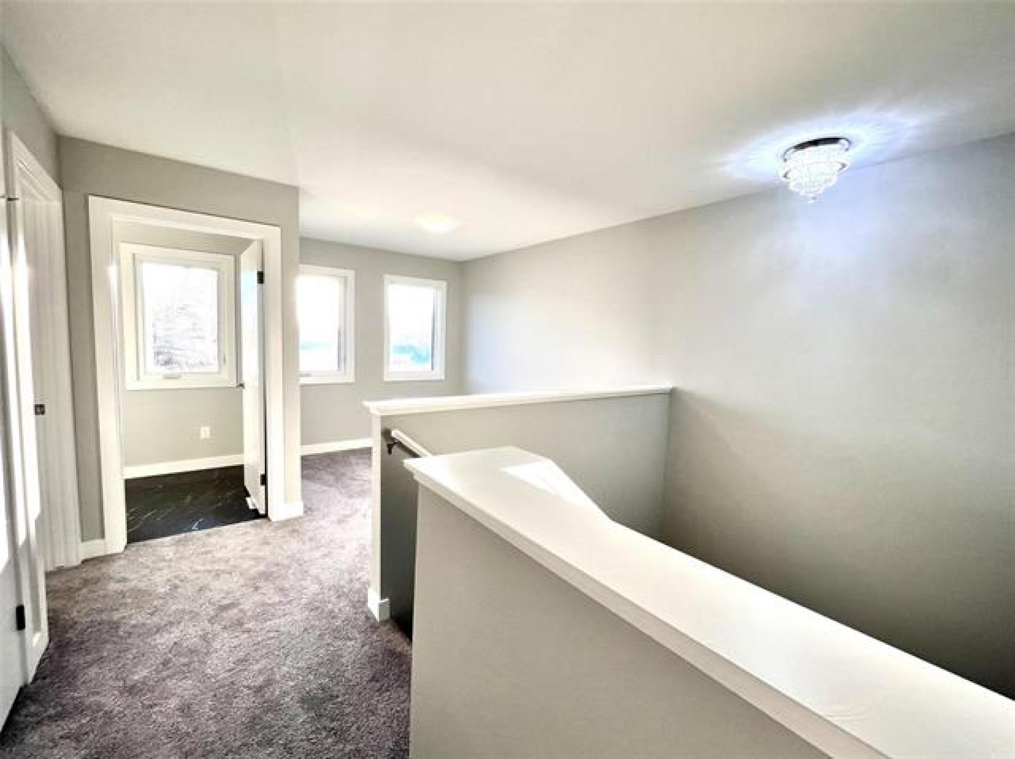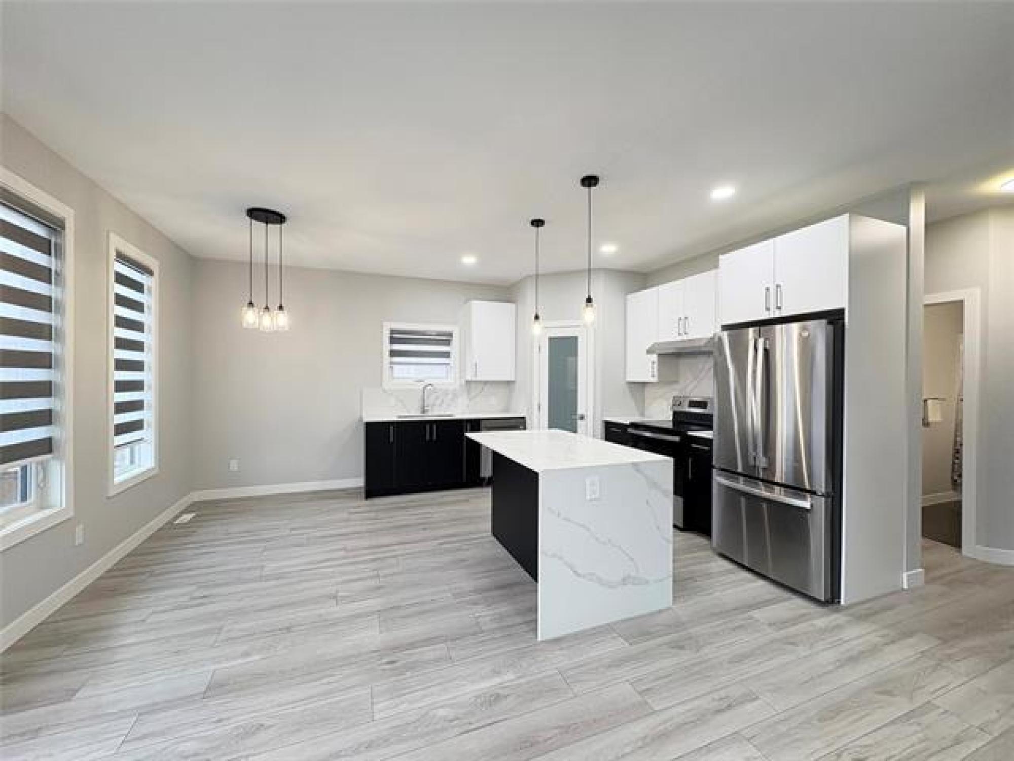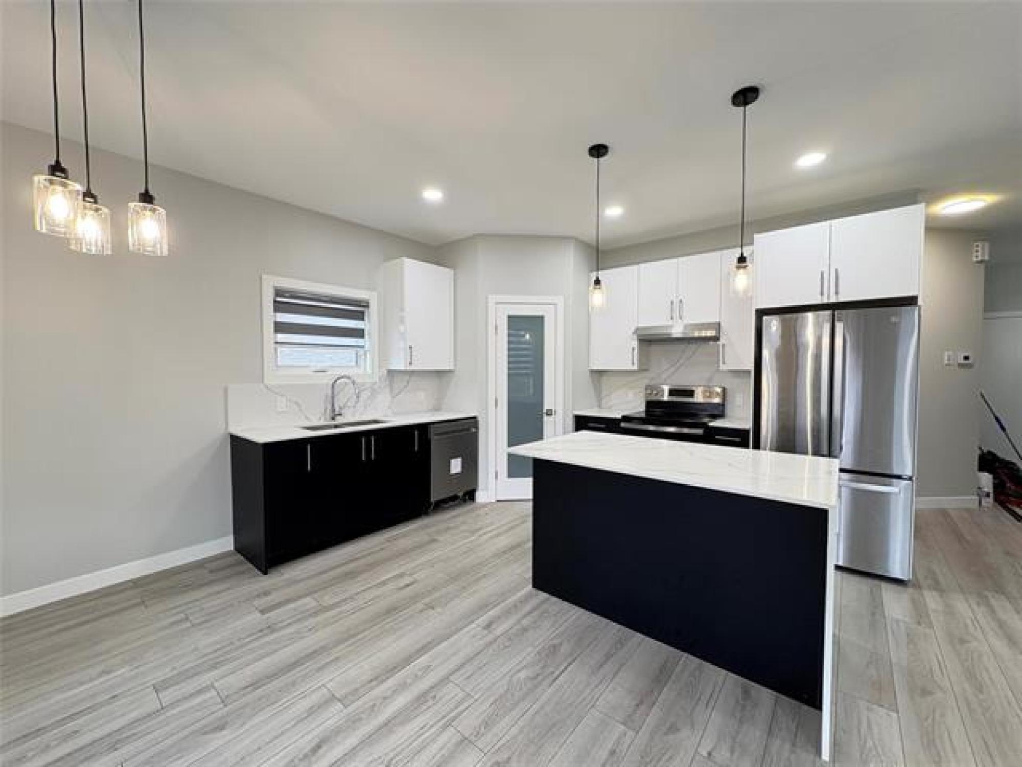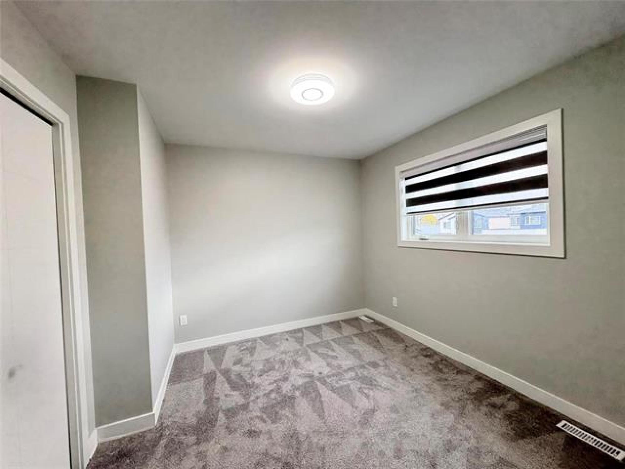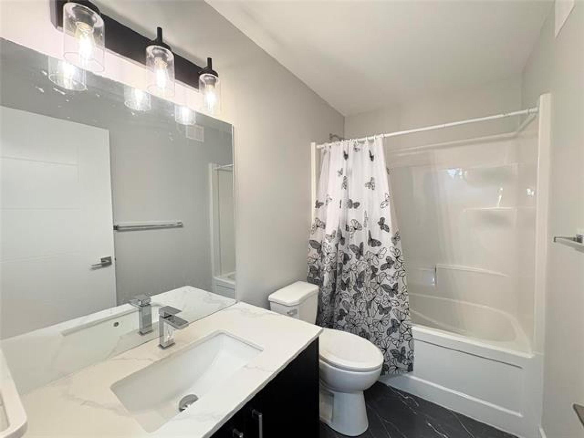 Showings Start now. Offers as received. Beautiful Custom Built 1,645 SF 2 storey with direct entry to double attached garage, separate side door entry, and concrete driveway. Features 4 bedroom, 3 full bathroom. Main Level features bright front foyer, spacious bright living room, and functional kitchen with island, quartz counter tops, 2 tone cabinets, corner pantry and good size dining area. Main floor bedroom and 4 piece bathroom complete the main level. The upper level features spacious primary bedroom with walk in closet, 3 piece en-suite bath, 2 additional good size bedrooms, main 4 piece bathroom, open den area, and laundry room. This bright home is finished with stunning fixtures, luxury vinyl plank flooring on main level, plush carpeting on the upper level, pot lighting and neutral decor thru out. Full insulated lower level awaits your finishing touches! The home is nicely located backing onto lush greenspace and Cindy Klassen Olympic Park.
