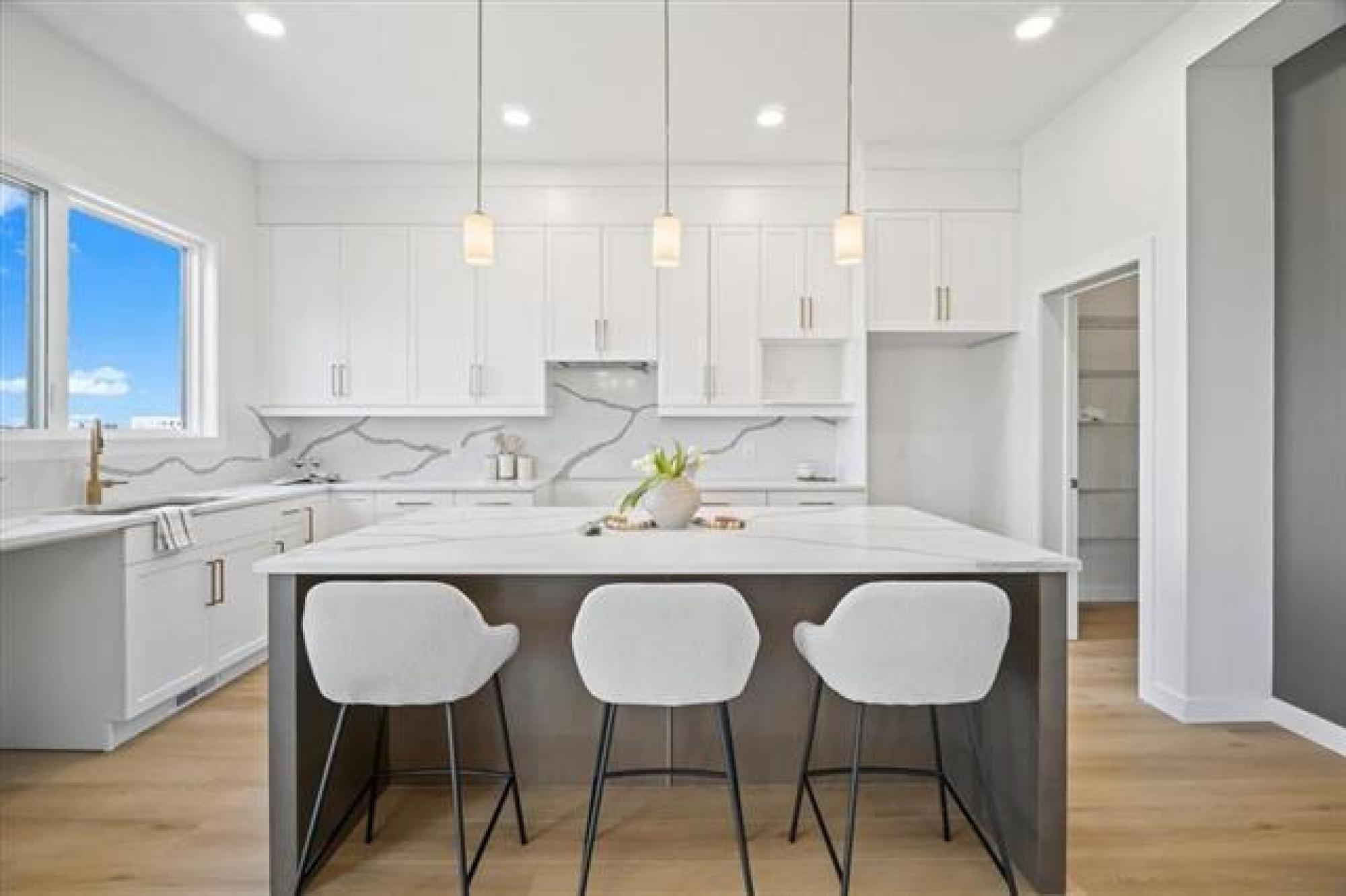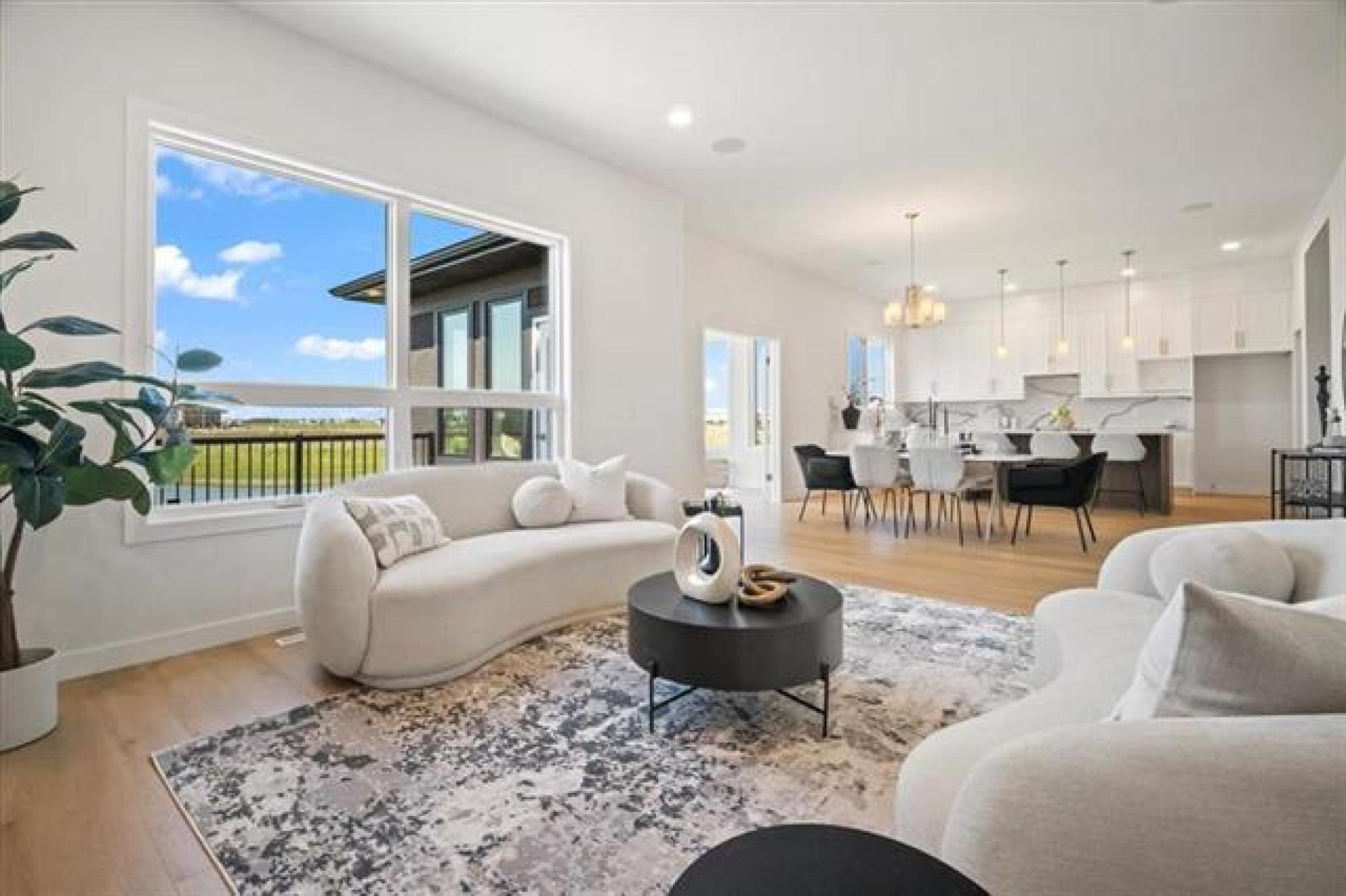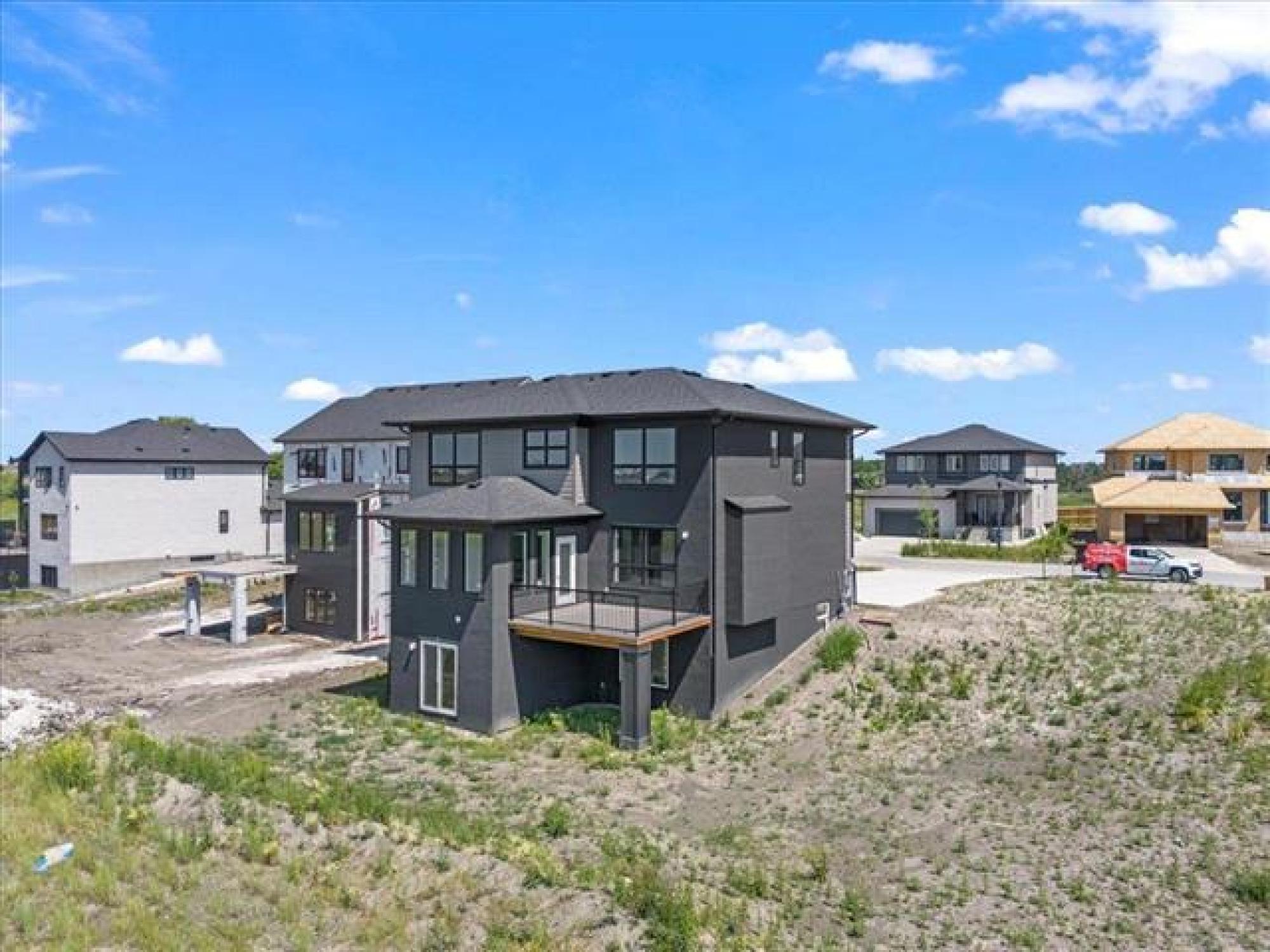 S/S Now. Experience luxury living with over 3500 sf of living space in this brand new 2-Storey walkout with fully finished basement. Conveniently located in Bison Run, offering 4 spacious bedrooms, large loft, a main floor office/den and 4 full bathroom's, second floor laundry, additional features include, maple staircase with glass railing, 10ft ceilings on main floor, fireplace with ent. unit, a gourmet kitchen with quartz countertops backsplash and island, plenty of tall cabinets, large walk through pantry. Enjoy lower energy bills and a more comfortable home with energy efficiency features. Flooded with natural light throughout with the expansive windows, upgraded flooring. The primary suite offers a spa-like ensuite and a large walk-in-closet. Step out onto your finished 15x12 duradeck deck with aluminum railings and take in the beautiful lake views and sunsets. The expansive triple car side entry garage offers generous space for cars, storage and all your lifestyle essentials. Premium exterior finishes includes tyndall stone, hardie siding & acrylic stucco . This one of a kind home is a rare find in Bison Run blends comfort and elegance. Call to book your showing.