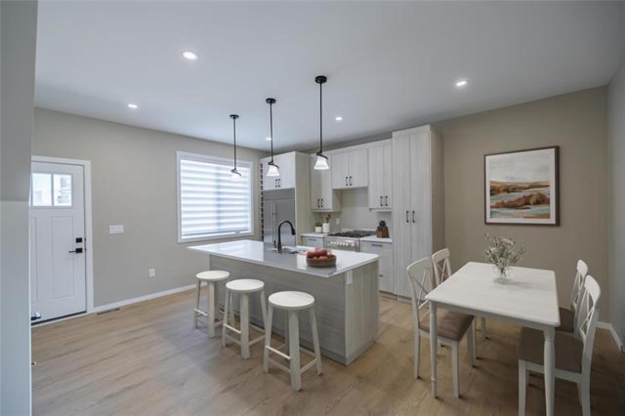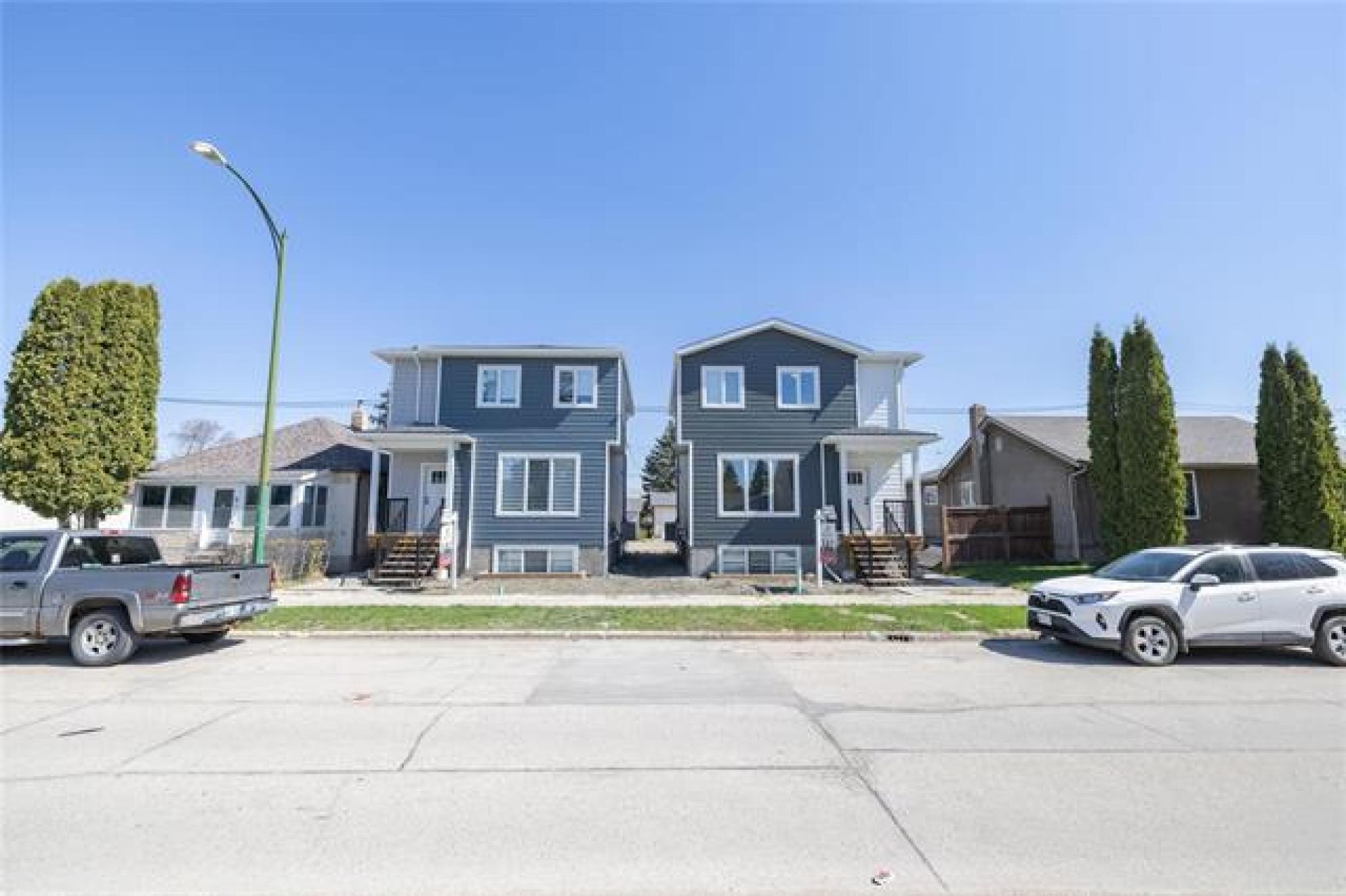 Modern Duplex Investment Opportunity. Incredible opportunity to own these side-by-side new construction duplexes in a desirable location. Offering 2,068 sq ft of total living space, this income-generating property features two self-contained units with high-end finishes throughout. The main floor (upper) unit offers 3 bedrooms and 2.5 bathrooms, including a primary bedroom with walk-in closet and 4-piece ensuite. Open-concept design with 9-ft ceilings, luxury vinyl plank flooring, large windows for natural light, and a spacious kitchen with quartz island, undermount sink, modern lighting, and ample cabinetry. Second-floor laundry and plenty of storage. The lower suite is a beautifully finished 1-bedroom suite with a 4-piece bath, generous living area, full kitchen, and in-suite laundry. Built on a piled foundation with suspended wood floors. Ample rear parking. Close to schools, shopping, public transit, and all amenities. Ideal for owner-occupiers or investors looking for a solid revenue property. Live in one unit and rent the other, or rent both for maximum return. A true turnkey investment!