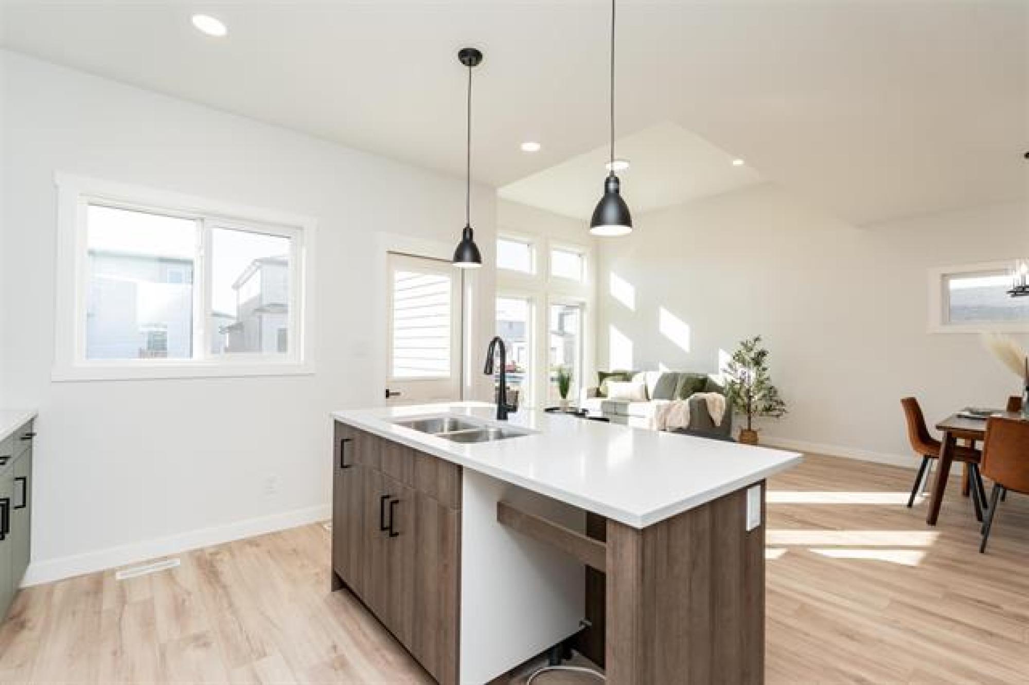 Welcome to Daytona Homes newest design, the Murano. – a stunning 1,882 sq. ft. two-storey home thoughtfully designed for modern living. Enter in to the main space, and be amazed by a 12 ft great room, with stunning windows. Tucked away, a main floor bedroom with full bathroom, offers space for your guests or extended family. Upstairs, enjoy a versatile bonus room, two bedrooms, laundry, and linen closet. The primary bedroom is a private retreat, featuring a walk-in closet, and ensuite with double sinks. Upgrades include quartz throughout, black fixtures and a 22X22 garage for extra space. Side entrance for direct entry to basement. A rare opportunity for a new home, in established Bonavista.