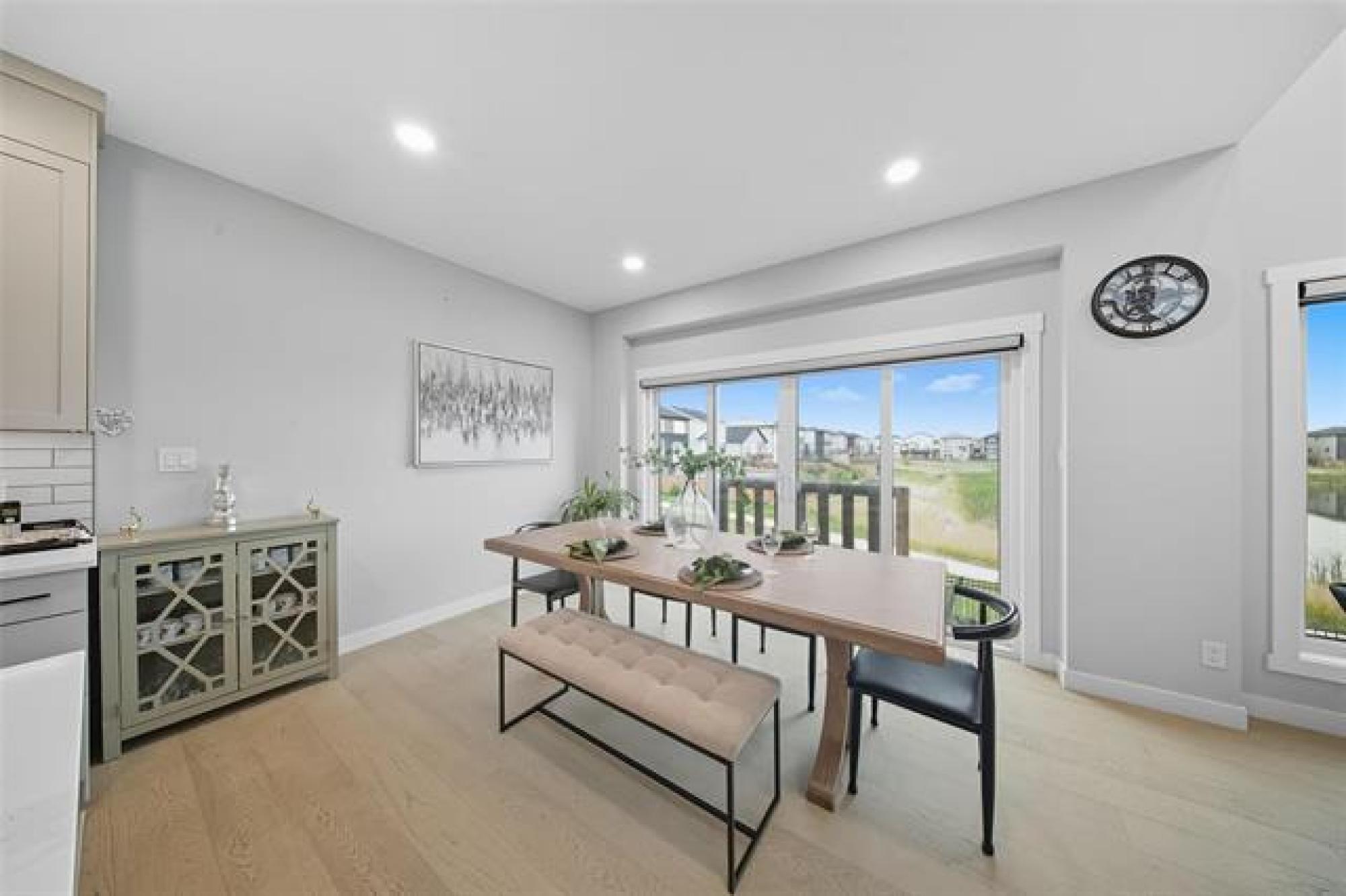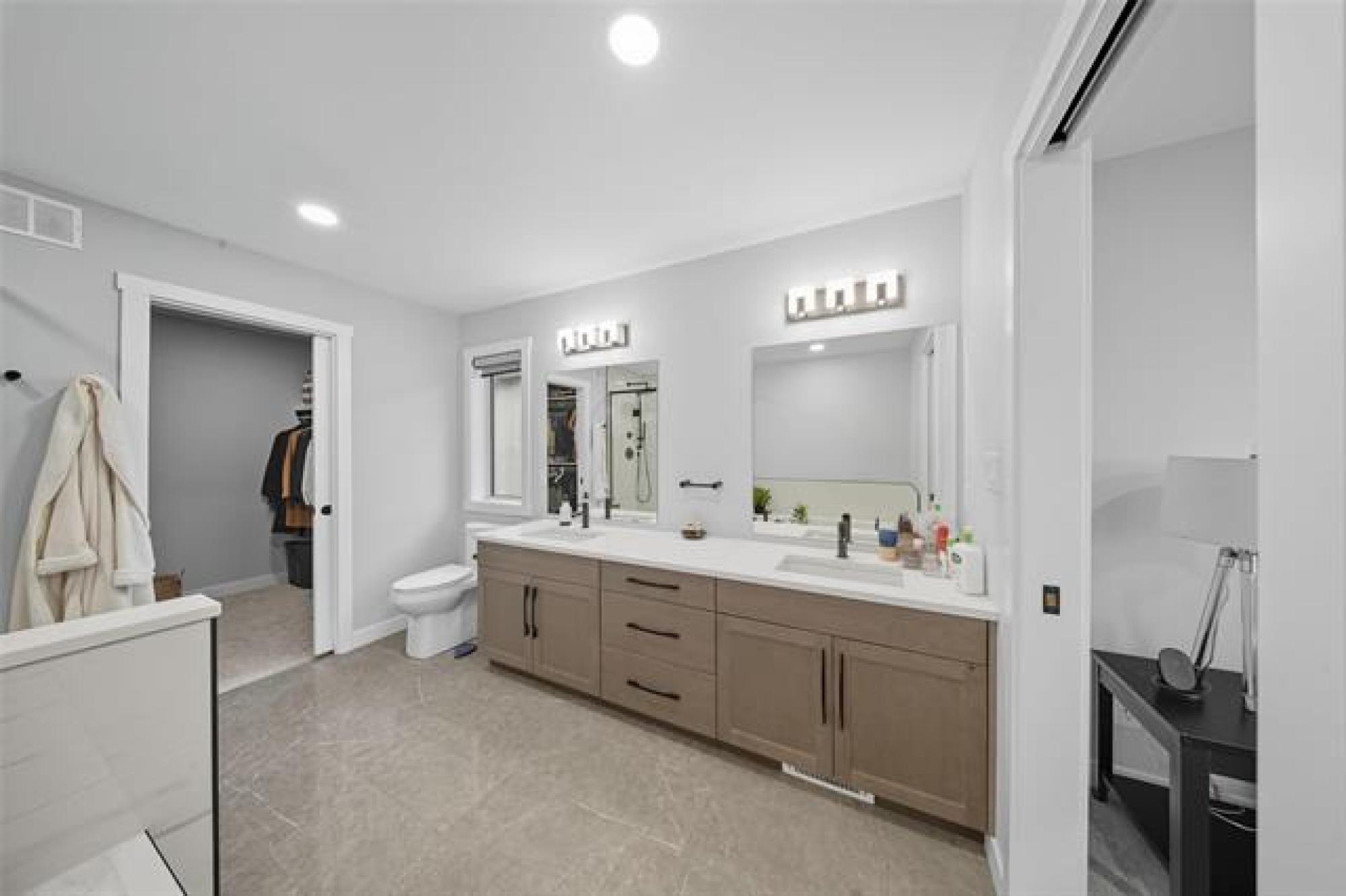 S/S Now. Offers as Received. A stunning 2023 Carriage Homes build that combines modern luxury, timeless design & walkout basement with lake views. With nearly 2,400 sq. ft. of living space, this fully upgraded home offers 4 bedrooms, 3 full baths, 2 Kitchens, 2 living areas plus a spacious loft which is perfect for today’s lifestyle. The modern kitchen with Quartz C/tops, tiled backsplash, S/S appliances, gas stove, built-in Oven/Microwave & an added Spice Kitchen. The open dining area overlooks the lake & living room impresses with a designer Entertainment wall, sleek Electric Fireplace, Huge Windows & an Elegant Lighting. A main floor bedroom and full bath provide convenience for an extended family. Upstairs, the airy loft offers versatile space, while the luxurious primary suite features a deluxe ensuite & walk-in closet. Two additional bedrooms, a Full Bath & laundry room completes the second floor. The walkout basement awaits your personal touch. Landscaped Yard, double attached garage and wide driveway. This move-in ready home truly has all the luxury, functionality, and location. Call today to book your private showing!