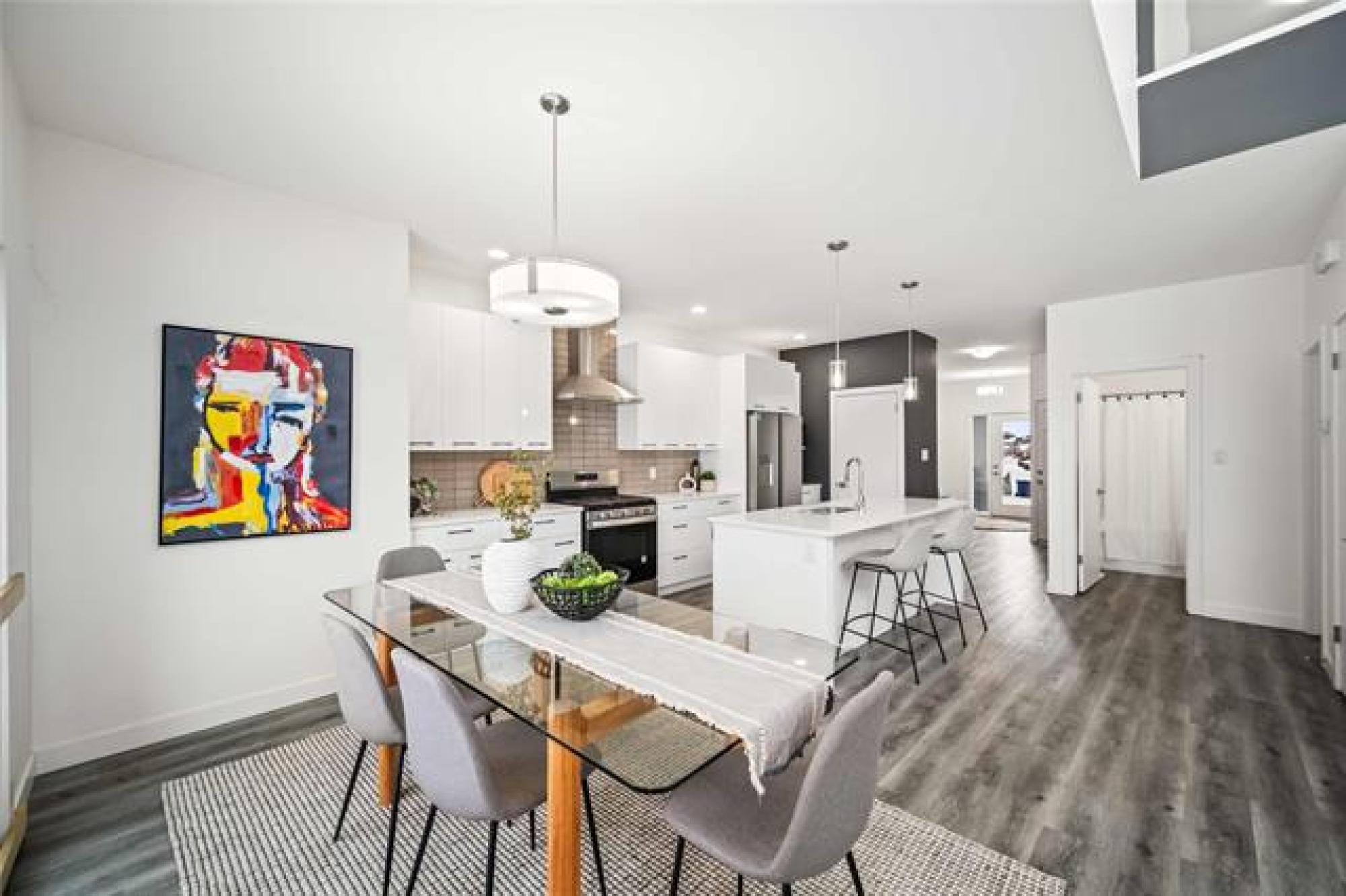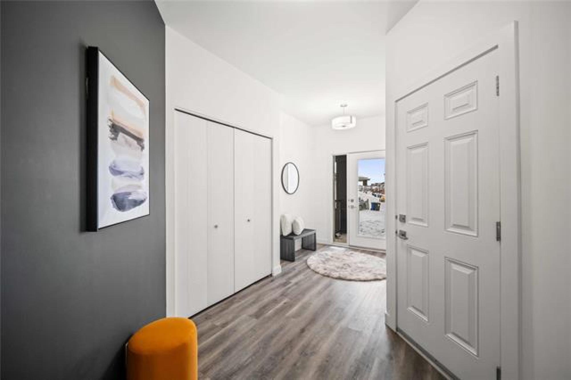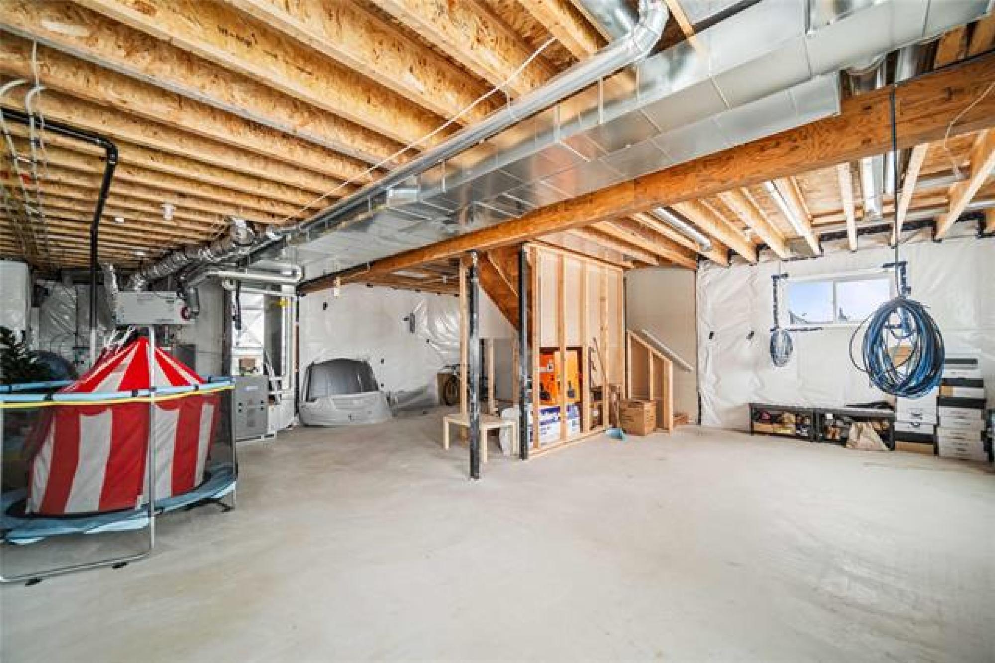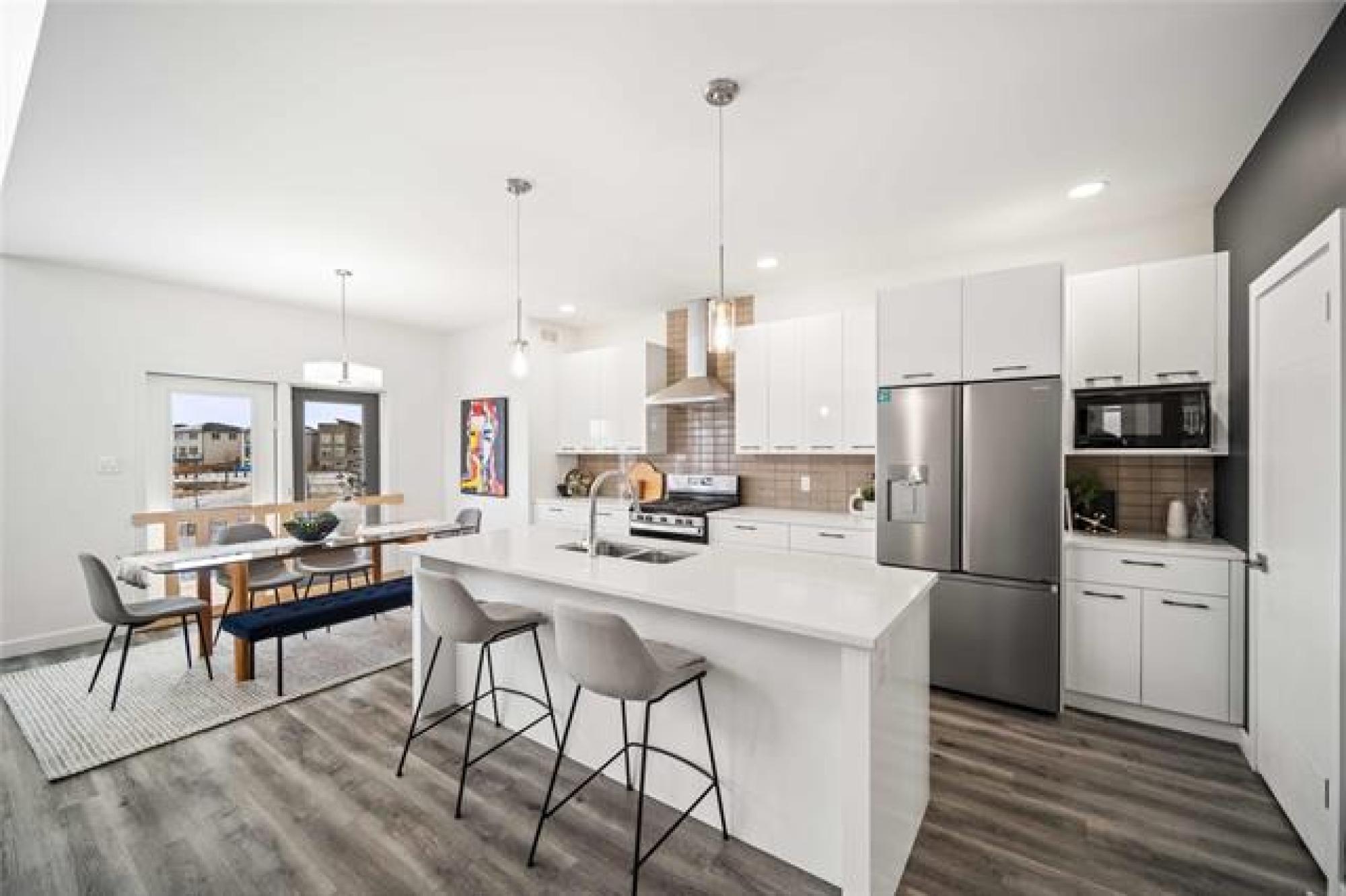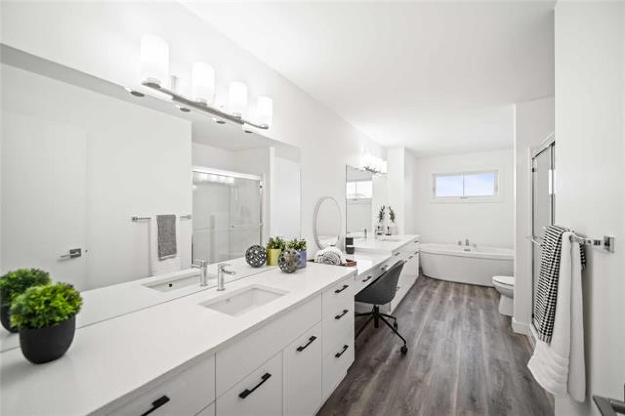 Offers as received. OPEN HOUSE SUNDAY DECEMBER 14 2:00-4:00PM. Incredible value and rarely available 2,018 sf 2-storey backing onto the like and situated on a HUGE pie shaped lot in Prairie Pointe. This home has an open concept great room plan with a large front entrance the leads into the eat-in kitchen that has tons of white cabinetry with a large island, quartz countertops, stainless steel appliances w/gas range, backsplash and pantry. The adjoining family room has 2-storey ceiling height with TONS of windows as well as an electric fireplace. There is a large 4th bedroom on the main floor that is perfect for family or guests and is complete with a full bathroom on the main floor. Upstairs there are 3 large bedrooms with the primary having lake views with a large walk-in closet and dlx ensuite bathroom. Downstairs the basement is fully finished with large look-out windows and lots of space to make this rec-room your own. This home is loaded with upgrades and unbeatable value in the neighborhood.