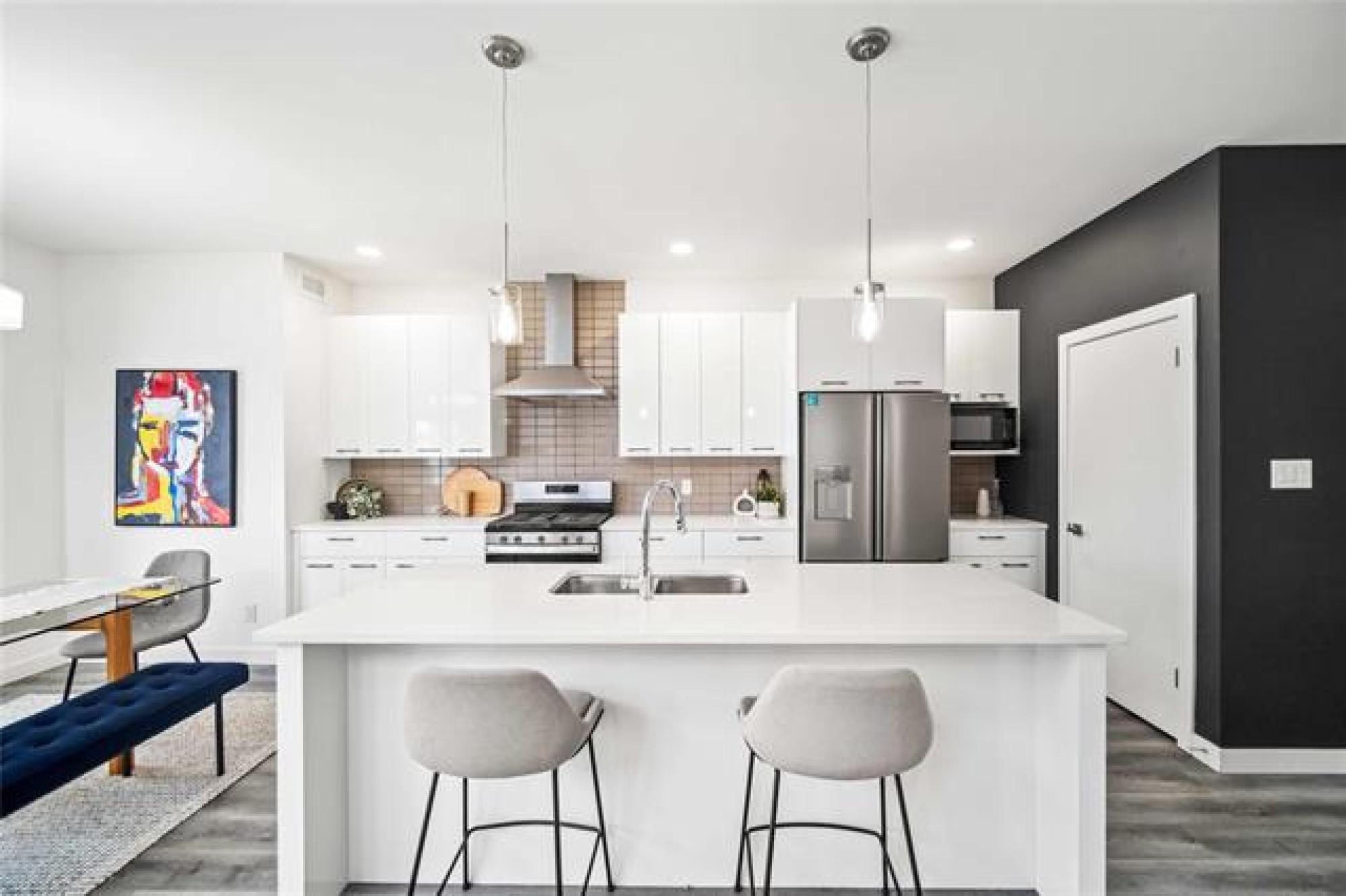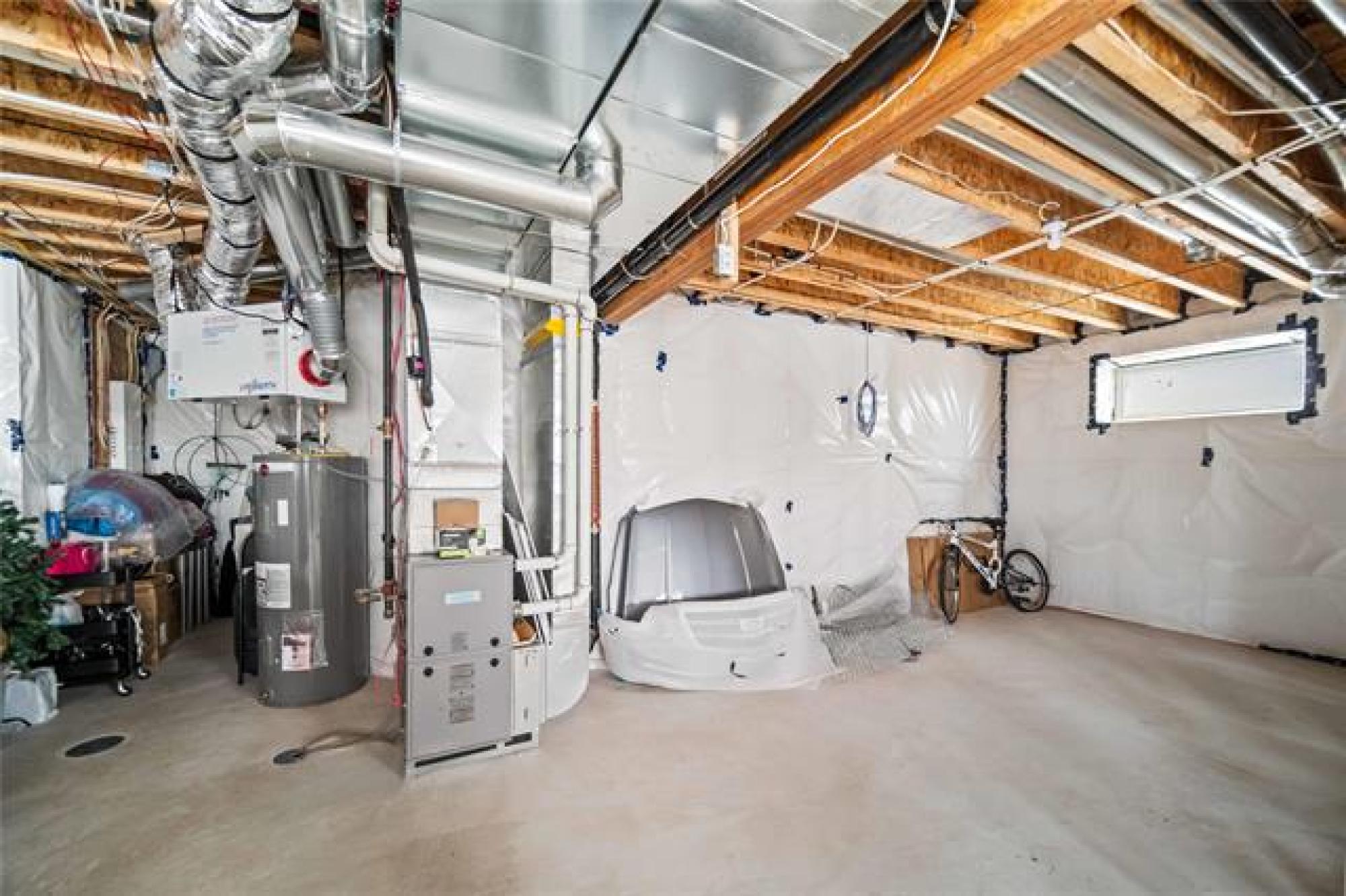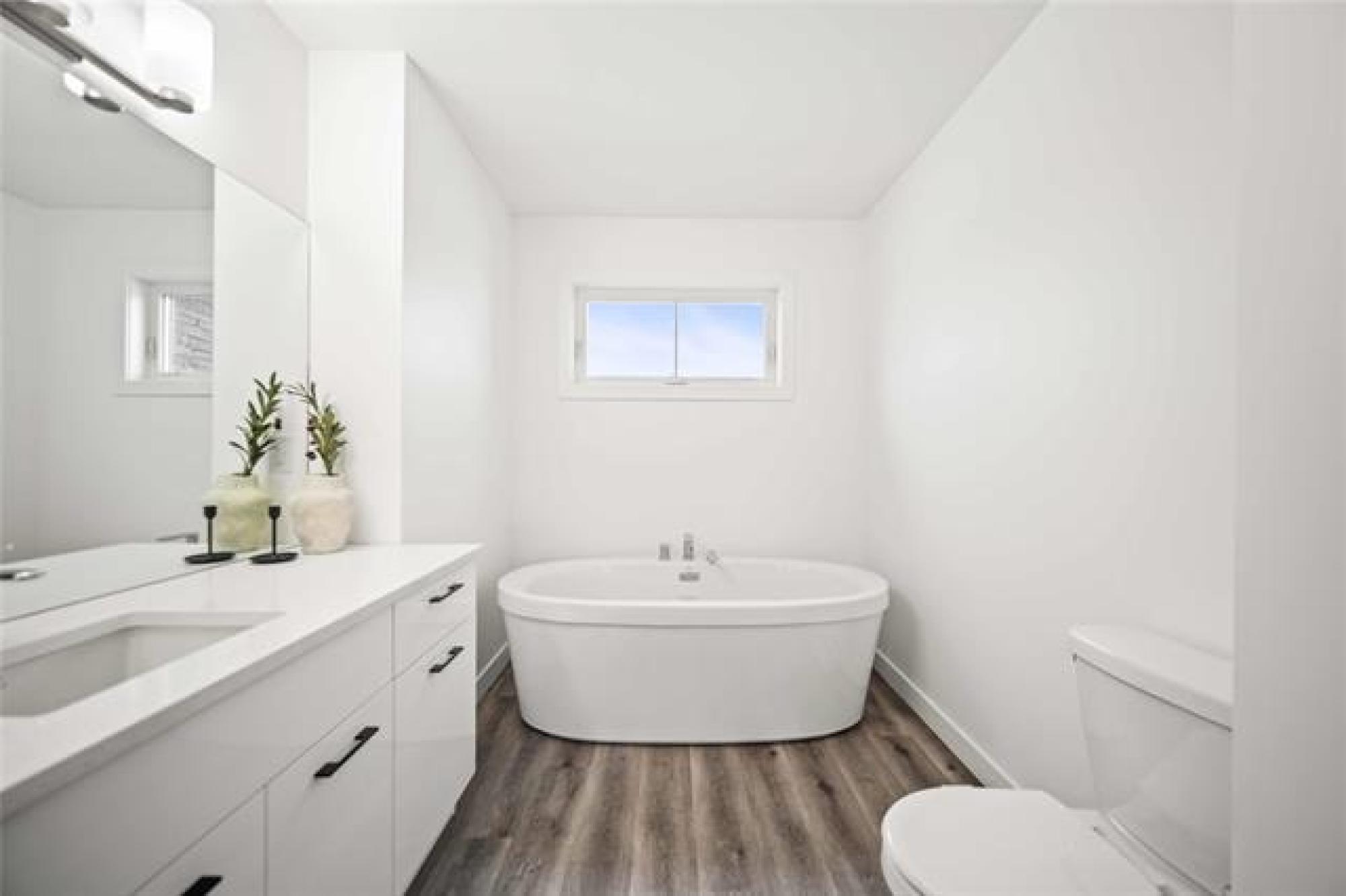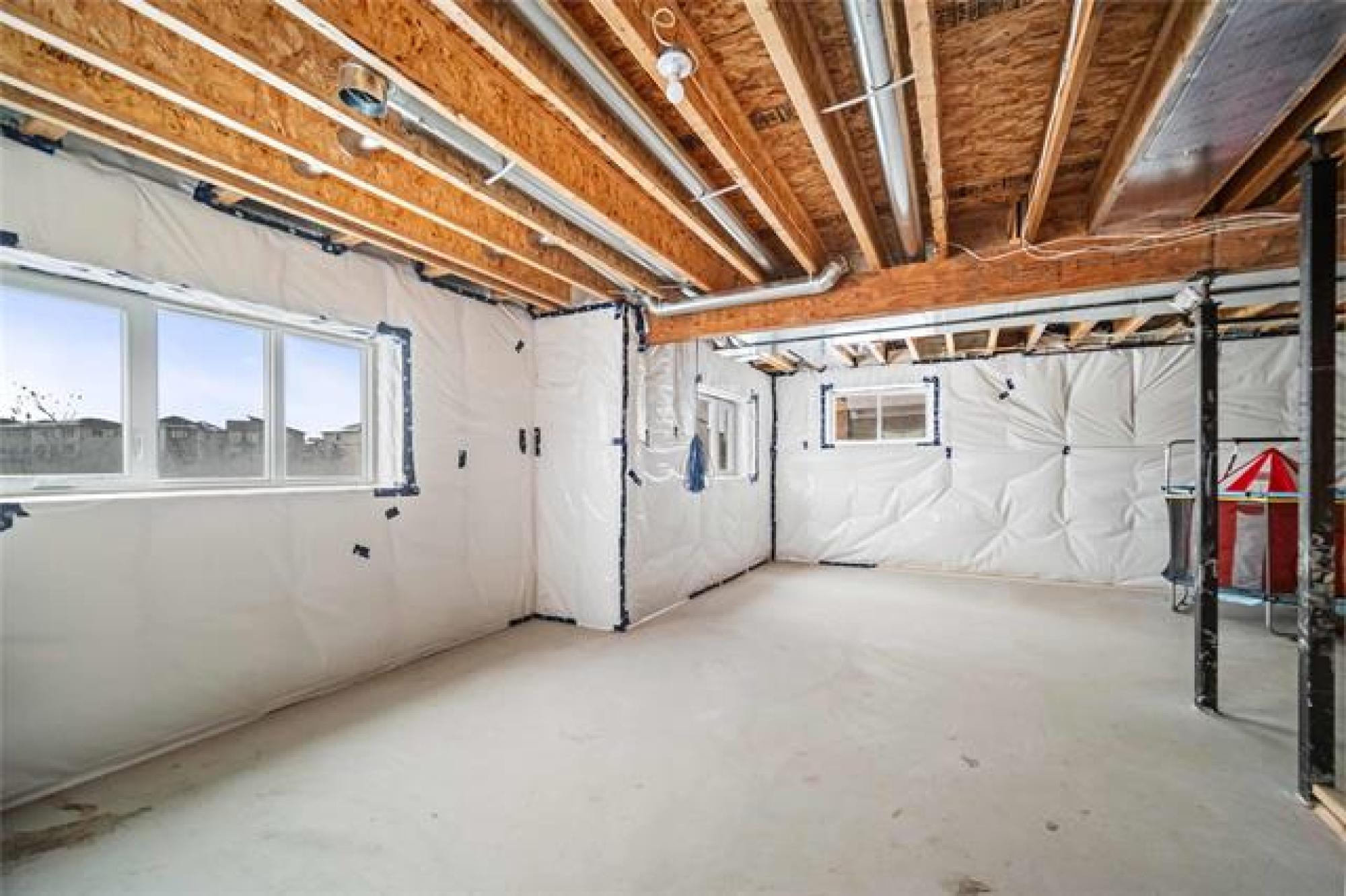 Offers as received. OPEN HOUSE SUNDAY DECEMBER 14 2:00-4:00PM. Incredible value and rarely available 2,018 sf 2-storey backing onto the like and situated on a HUGE pie shaped lot in Prairie Pointe. This home has an open concept great room plan with a large front entrance the leads into the eat-in kitchen that has tons of white cabinetry with a large island, quartz countertops, stainless steel appliances w/gas range, backsplash and pantry. The adjoining family room has 2-storey ceiling height with TONS of windows as well as an electric fireplace. There is a large 4th bedroom on the main floor that is perfect for family or guests and is complete with a full bathroom on the main floor. Upstairs there are 3 large bedrooms with the primary having lake views with a large walk-in closet and dlx ensuite bathroom. Downstairs the basement is fully finished with large look-out windows and lots of space to make this rec-room your own. This home is loaded with upgrades and unbeatable value in the neighborhood.