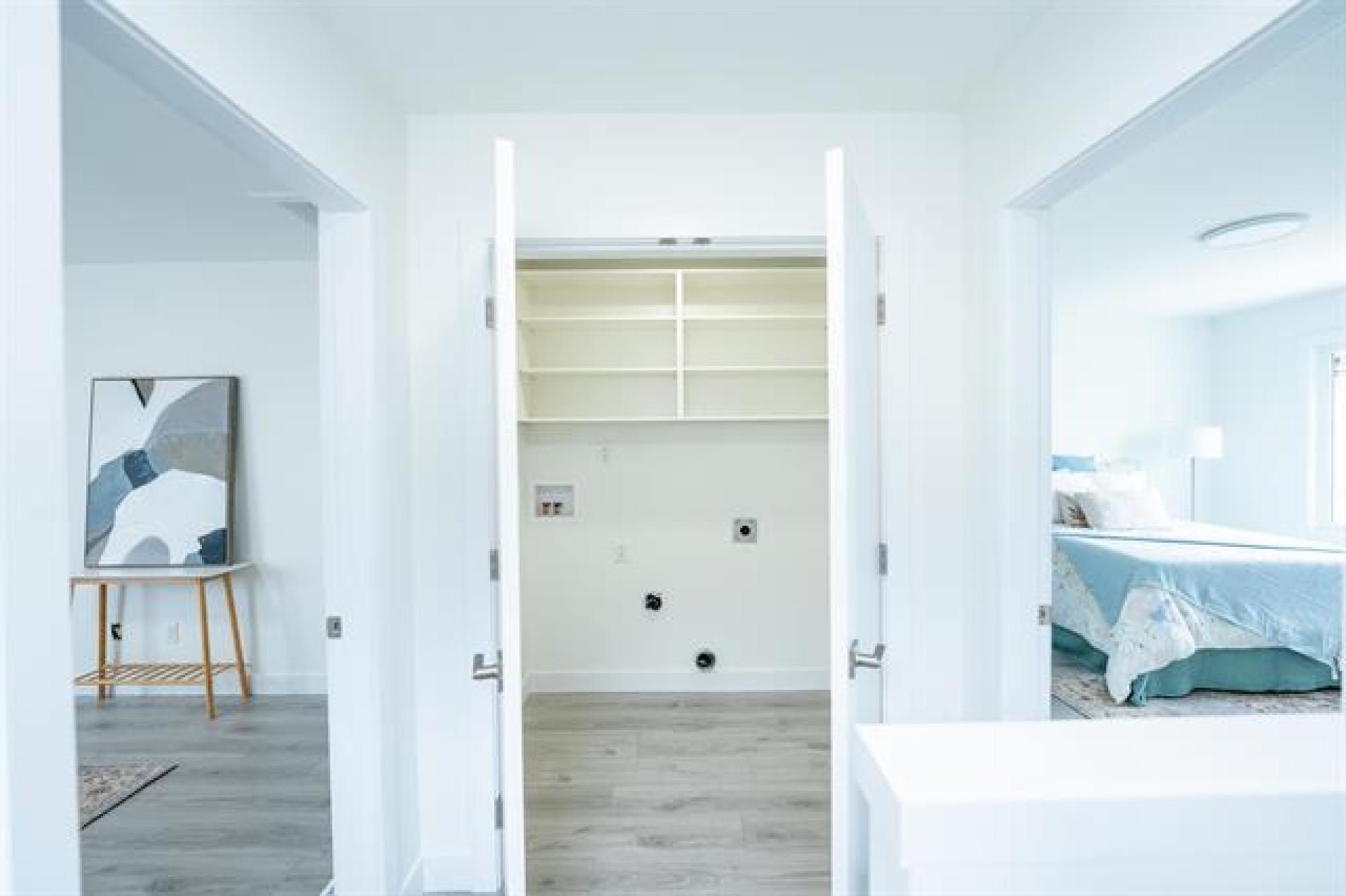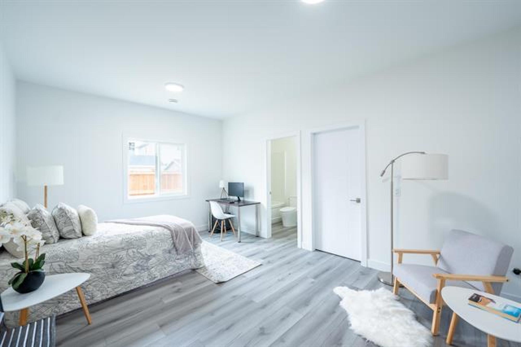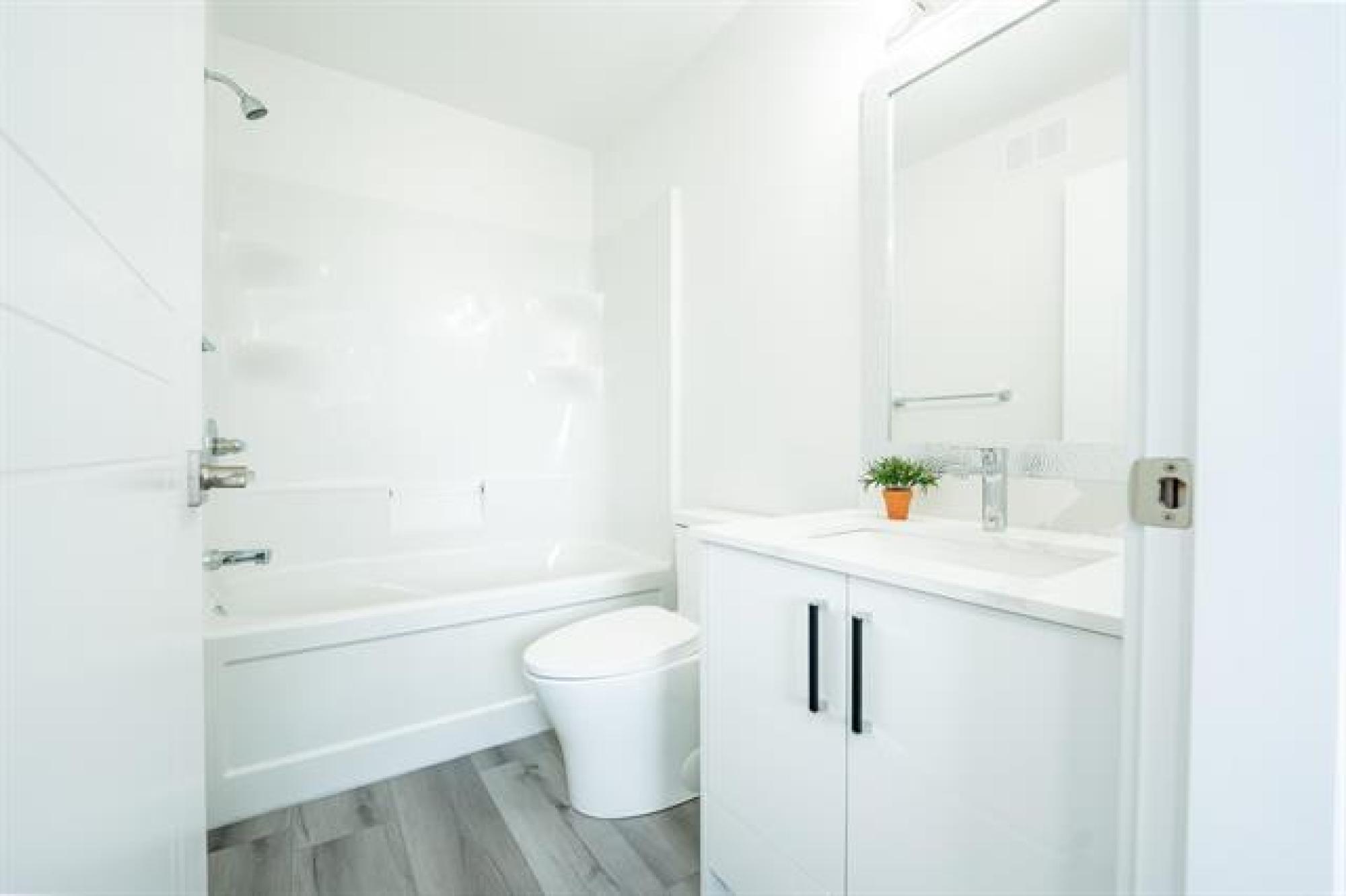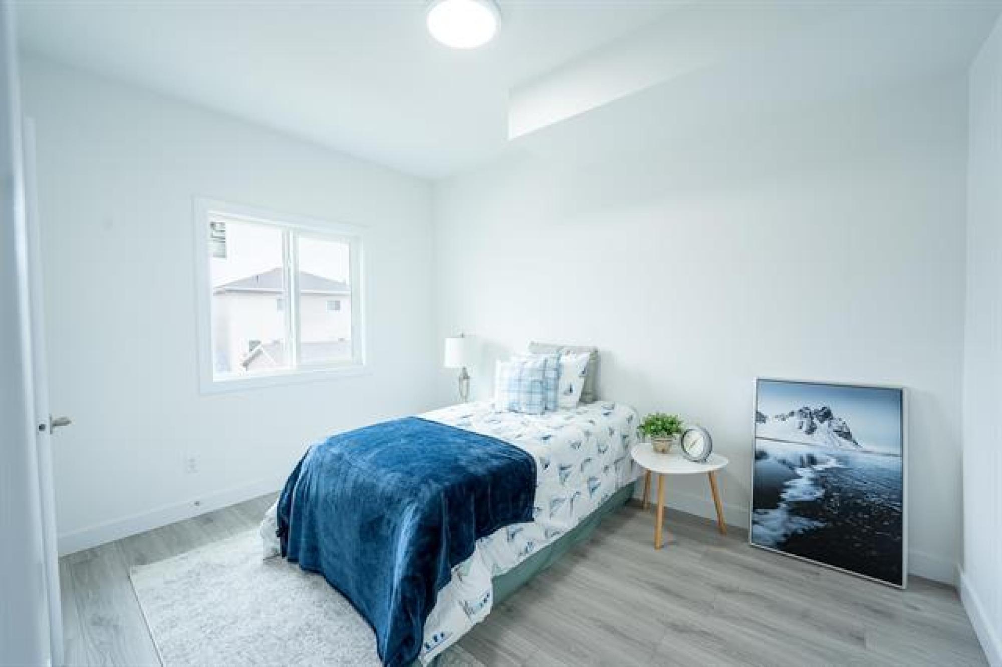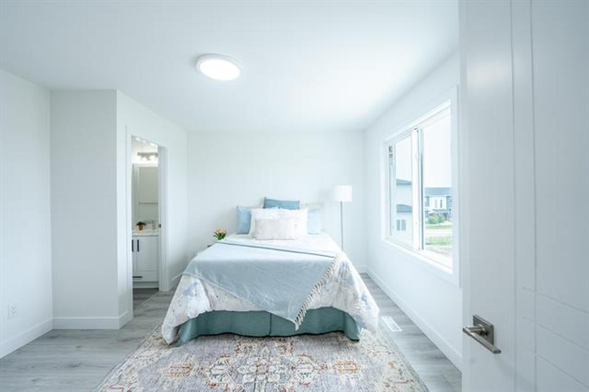 *OPEN HOUSE: Sept 15-18 (5-8pm), Sept 20-21(2-4pm)*, Welcome to the newest development in Waterford Green Subdivision. This exceptional modern townhome offers three fully finished levels of above-ground living space. It features four spacious bedrooms and four full bathrooms, ideal for large families. The attached garage and parking pad accommodate three vehicles, with additional visitor parking available. The main floor includes a bedroom and full bathroom, while the upper level offers three bedrooms, each with private bathrooms and walk-in closets. The gourmet kitchen boasts white gloss cabinets, quartz countertops, a large center island, and ample pot lighting. Large windows flood the interior with natural light, complemented by vinyl plank flooring throughout. Professionally landscaped front and rear yards with mature trees enhance the home's curb appeal. Conveniently located near shopping, schools, parks, and public transportation, this property combines quality craftsmanship with a prime location. Schedule your private viewing today and experience this stunning home firsthand.