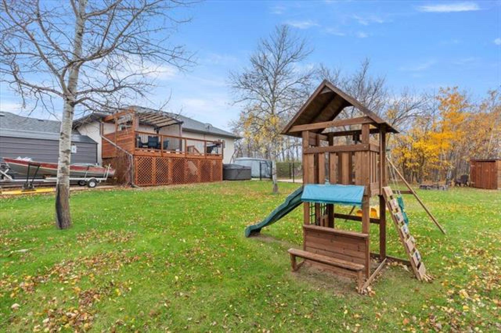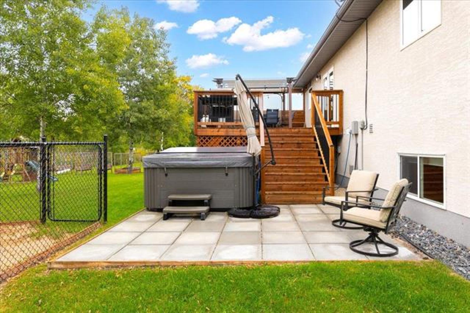 Looking for a well maintained home with upgrades? Look no further! This lovely 4 bedroom home is sure to please! The main floor features luxury hardwood floors and vaulted ceiling throughout. The white kitchen has upgraded quartz countertops and backsplash for a sleek look. There are 2 bedrooms on the main floor, with the ensuite featuring a walk in shower. Moving downstairs, there is a kitchenette, rec room, 2 additional bedrooms, laundry and 3 piece bath with shower. This is a great space to host a movie night, or for elderly parents / adult kids to enjoy. Heated garage. A/C. Acrylic stucco. Moving outside, note the paved drive, beautifully landscaped yard with firepit area, dog run, garden boxes with water taps plumbed in, oversized shed and deck with pergola! This home is on the edge of Grunthal, so enjoy the view of no backyard neighbours! Main upgrades over the last 6 years: hardwood floors, some carpet, countertops in kitchen / baths, kitchen appliances, washer/dryer, Cvac, water softener, most blinds, ensuite shower, downstairs shower, garden boxes, front door, t-bar ceiling and LED lighting in the basement rec room. Call to view!